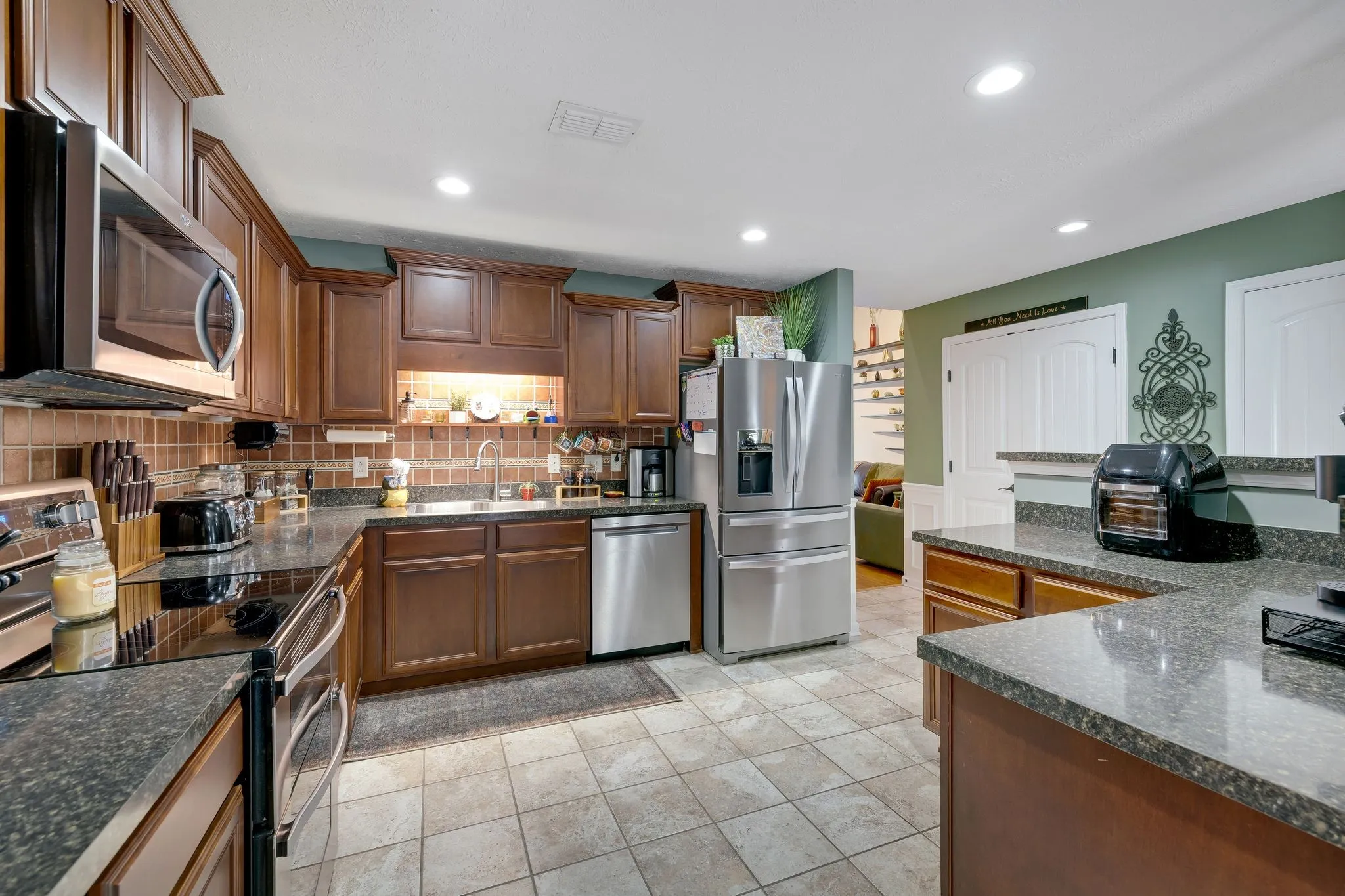 Step inside to a floor plan featuring stylish finishes with a fresh coat of paint in the living room and bedrooms, beautiful wainscoting throughout, spacious living areas, and 3 full bathrooms — perfect for guests or multi-generational living.