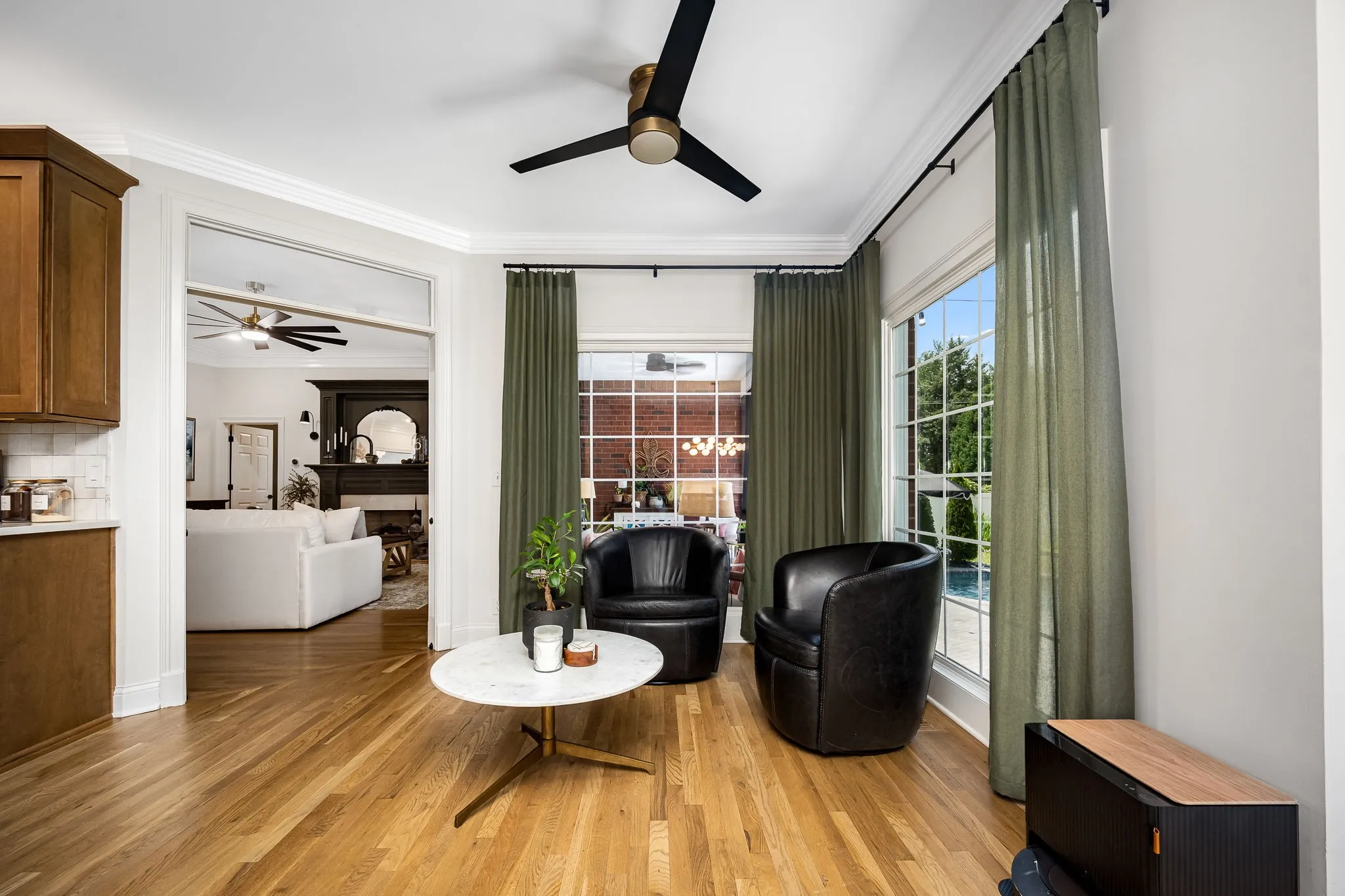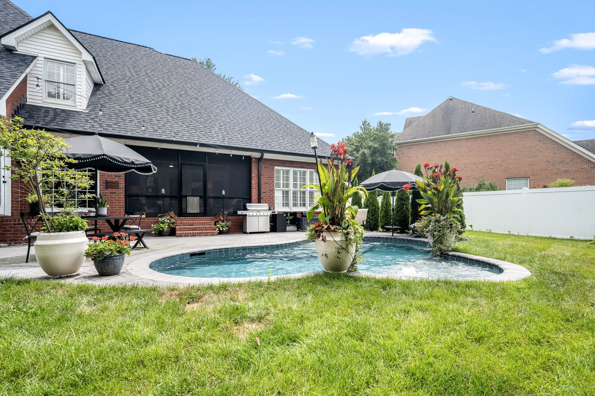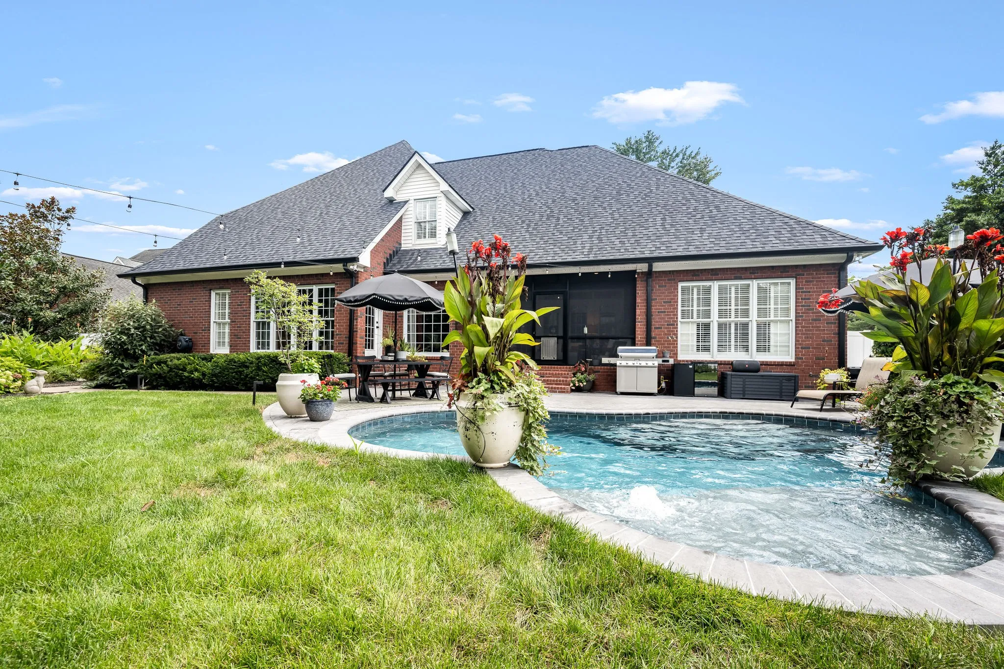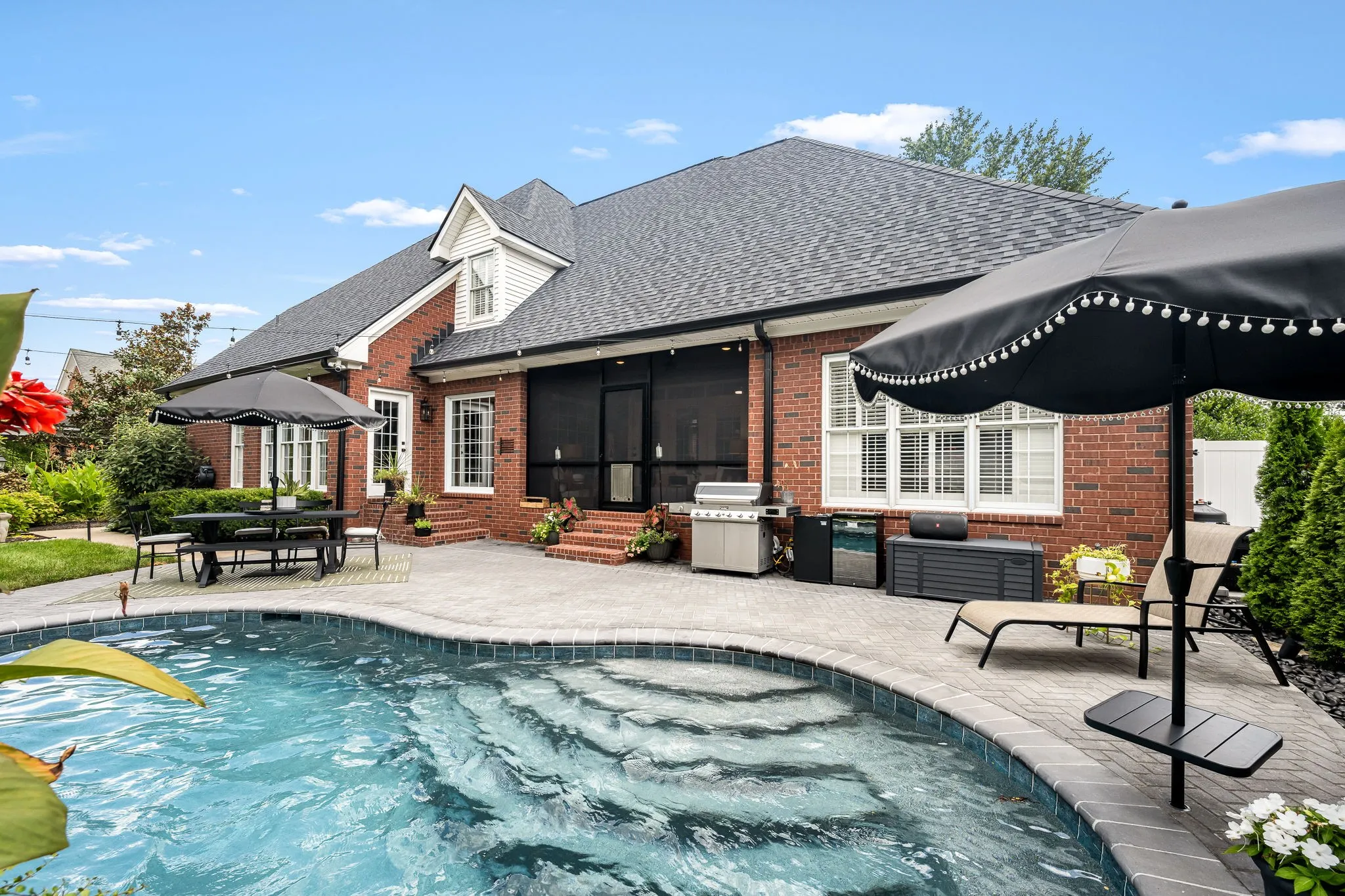 Additional highlights include a formal dining room, dedicated home office that could also be a bedroom, and a screened-in back porch overlooking a gunite in-ground swimming pool. The front and back yards are professionally landscaped and meticulously maintained—truly garden club worthy.