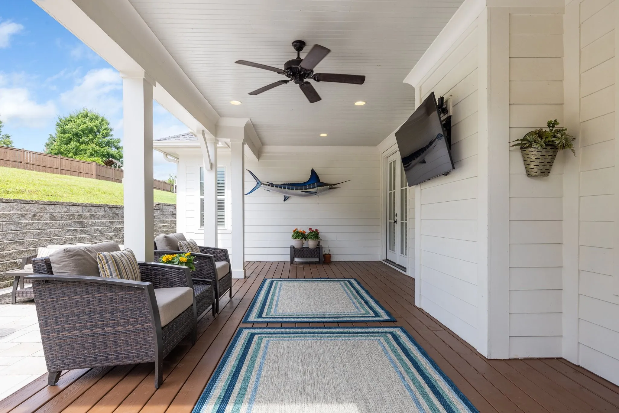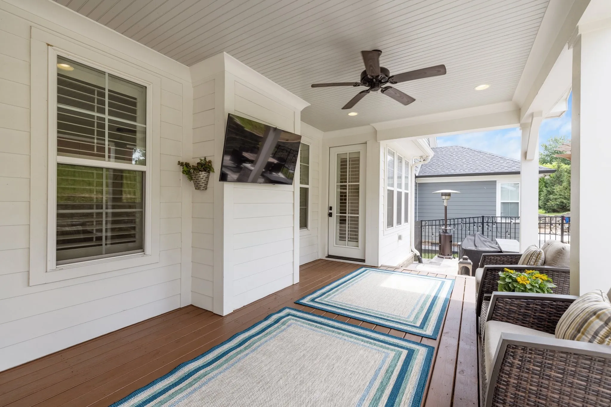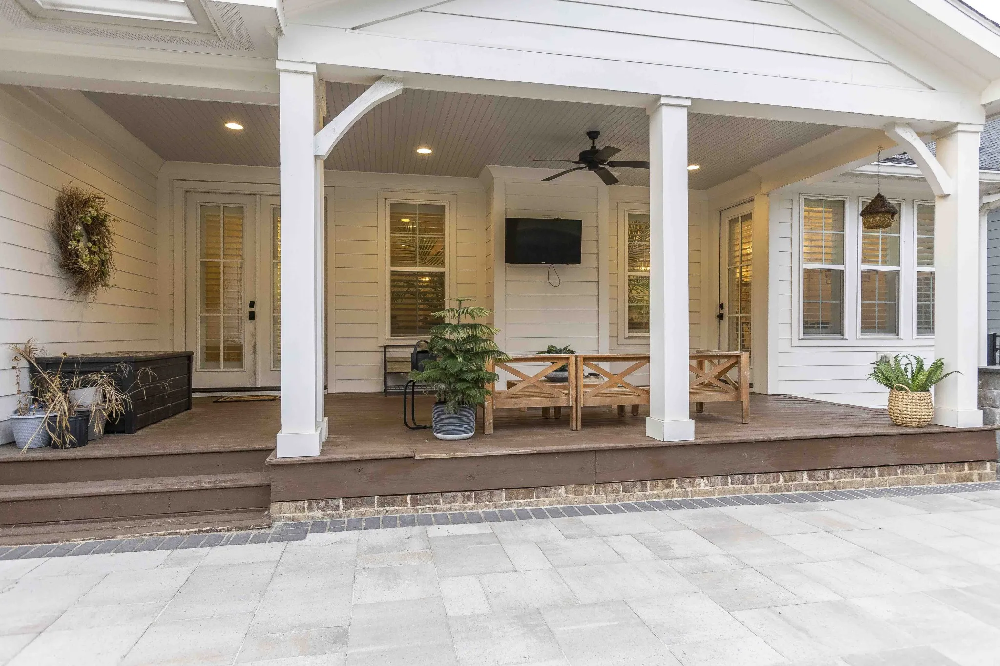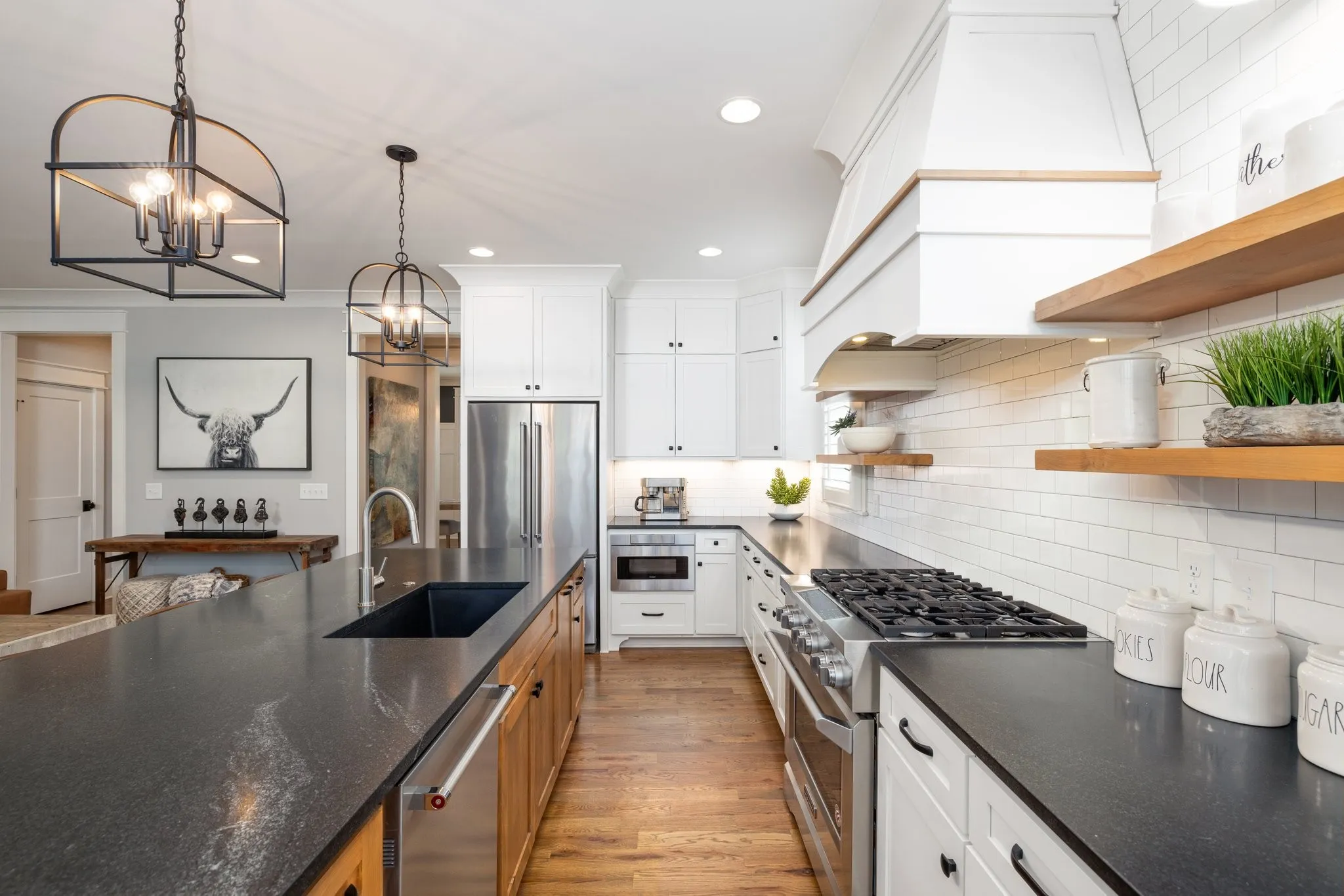 Custom-Built home with Designer Finishes in Coveted Ladd Park. Perfectly positioned on a premium lot facing permanent green space, this full custom home offers timeless charm and elevated comfort from the moment you arrive. The expansive front porch invites slow mornings and sunset views with rocking chairs and Southern hospitality. Step inside to a stunning white kitchen anchored by an oversized natural oak island with quartz countertops, a six-burner gas range, custom vent hood, and a walk-in pantry built for both form and function. The formal dining room is framed with detailed millwork, while the breakfast nook opens to your private backyard retreat. The main-level primary suite offers a spa-like experience with bold black-and-white tile, a glass-enclosed shower, a separate soaking tub, and a custom walk-in closet. Upstairs, a built-in desk nook adds flexibility for homework or remote work, and three generous bedrooms—one en suite—provide comfort and privacy. The oversized bonus room offers endless options for media, play, or entertaining—with ample storage throughout. Outside, enjoy an entertainer’s dream: a covered patio with added pavers, a pergola, a built-in grill station with soapstone countertops, and a cozy firepit—all surrounded by mature landscaping for privacy and beauty. Located in sought-after Ladd Park, residents enjoy community amenities including two pools, a basketball court, walking trails, and access to the Harpeth River.