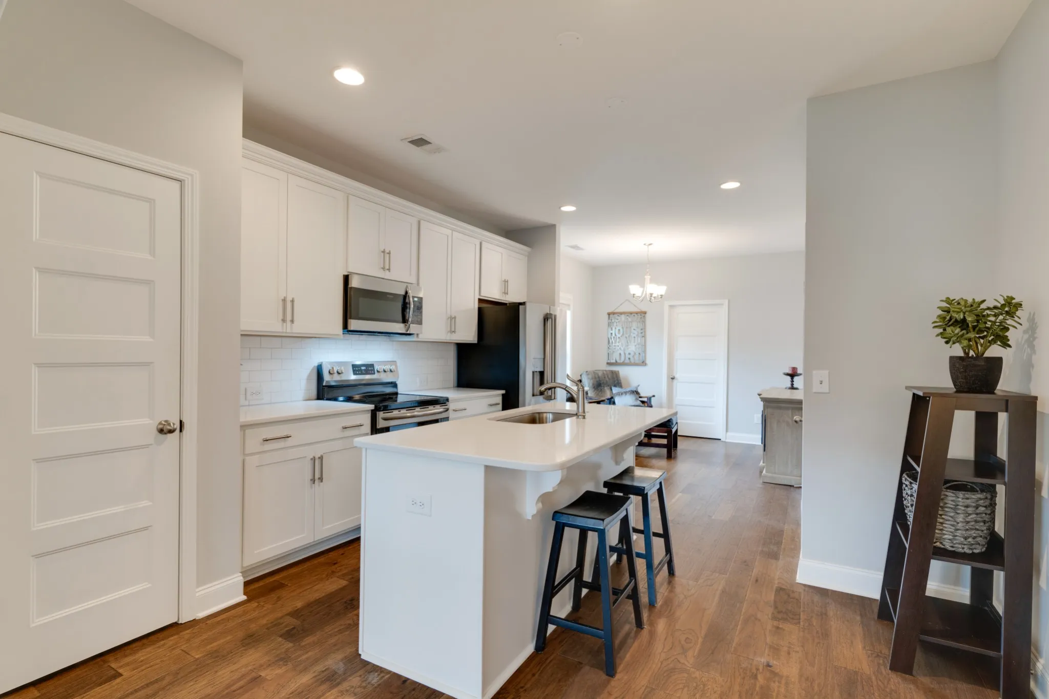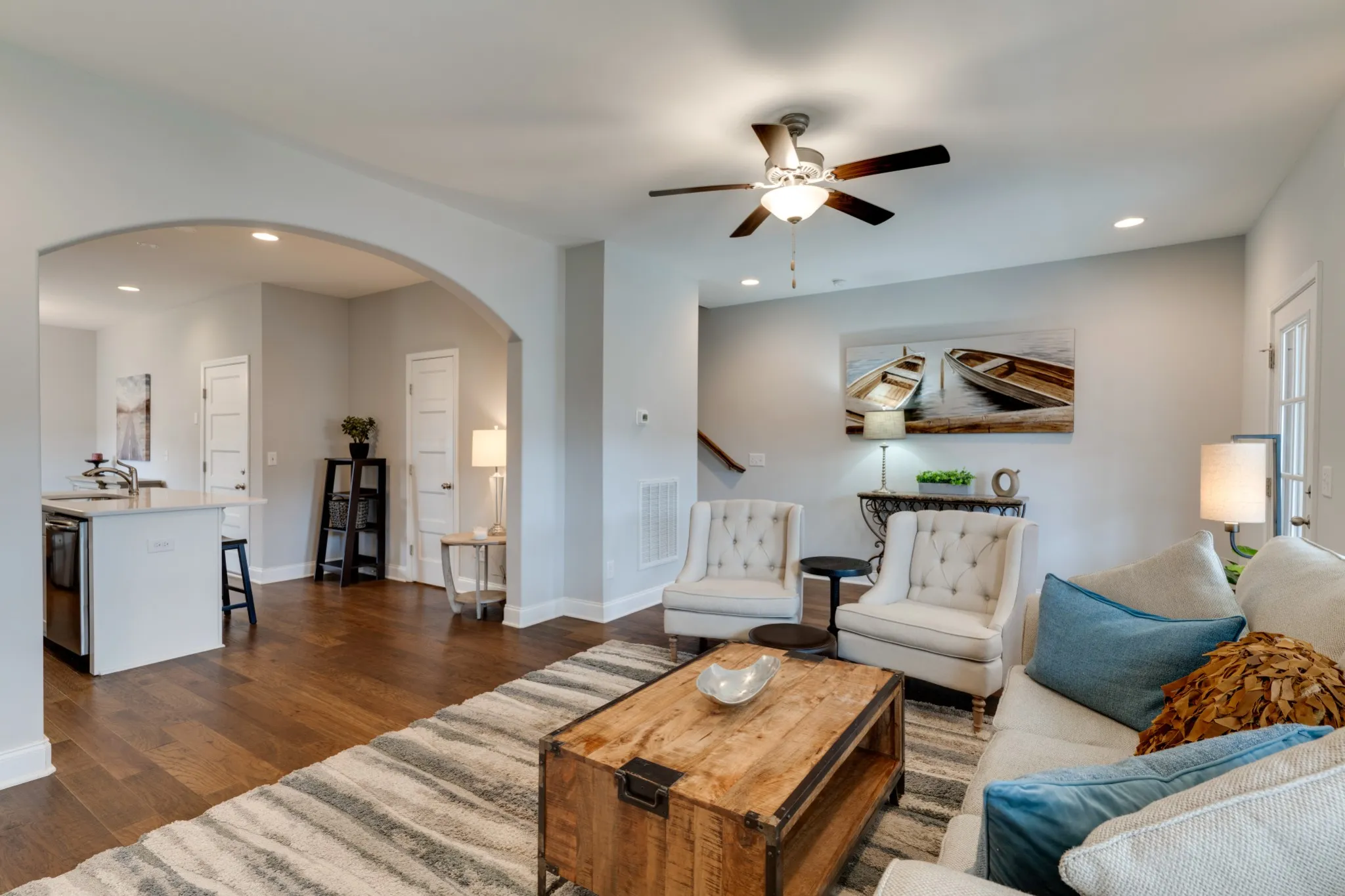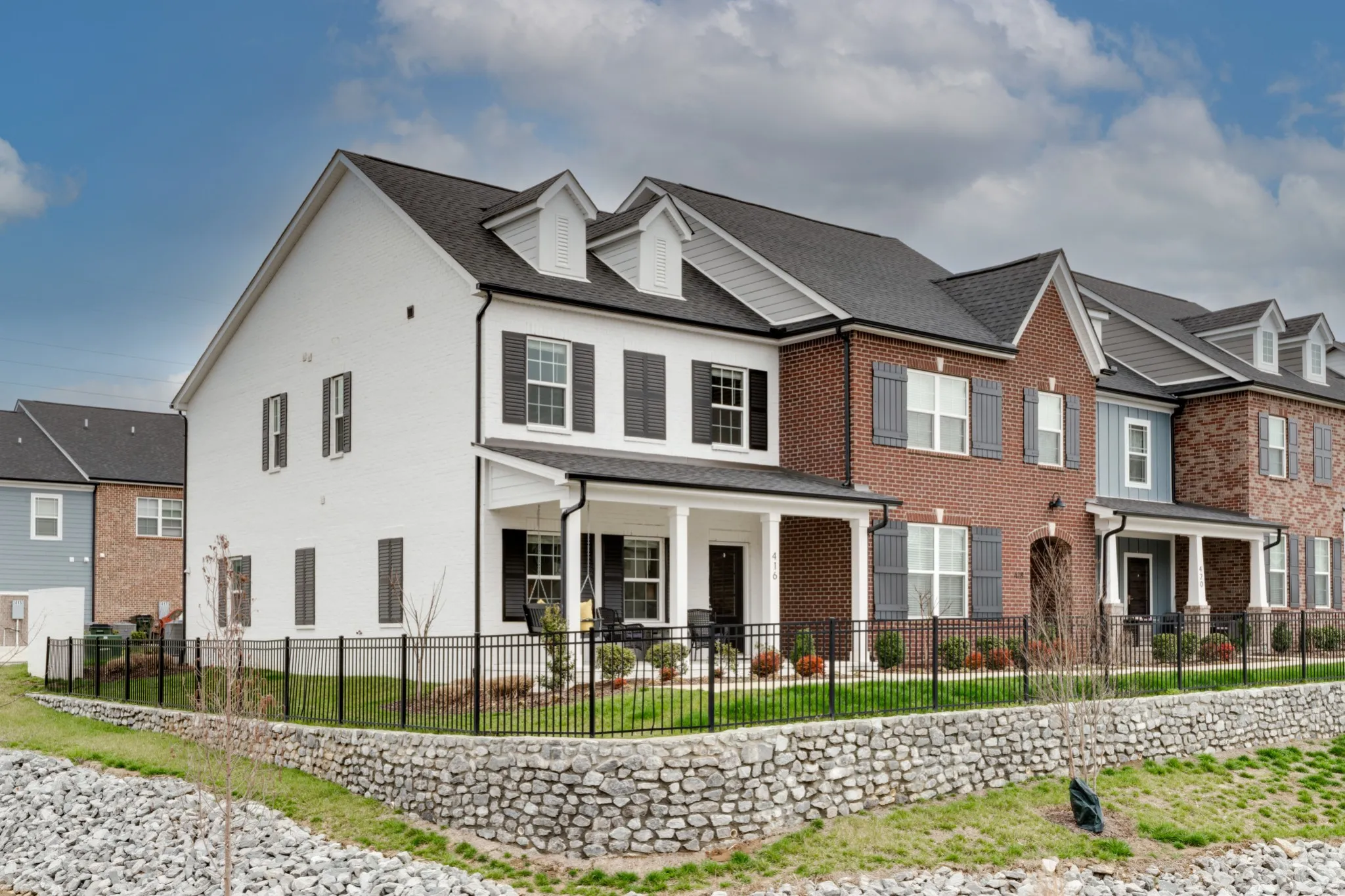 Gorgeous END UNIT townhome in the Knoll! The beautiful front porch leads you inside to an open floor plan with tons of natural light throughout the entire home. Hardwood floors on the main level, quartz and tile backplash in the kitchen. The upstairs has a nook area that is perfect for a desk. The huge master suite with a sitting area has a beautiful tile shower, double vanities, undermount sink, and a large walk in closet. Maintenance free living and conveniently located close to shopping, the movie theater, and restaurants.
