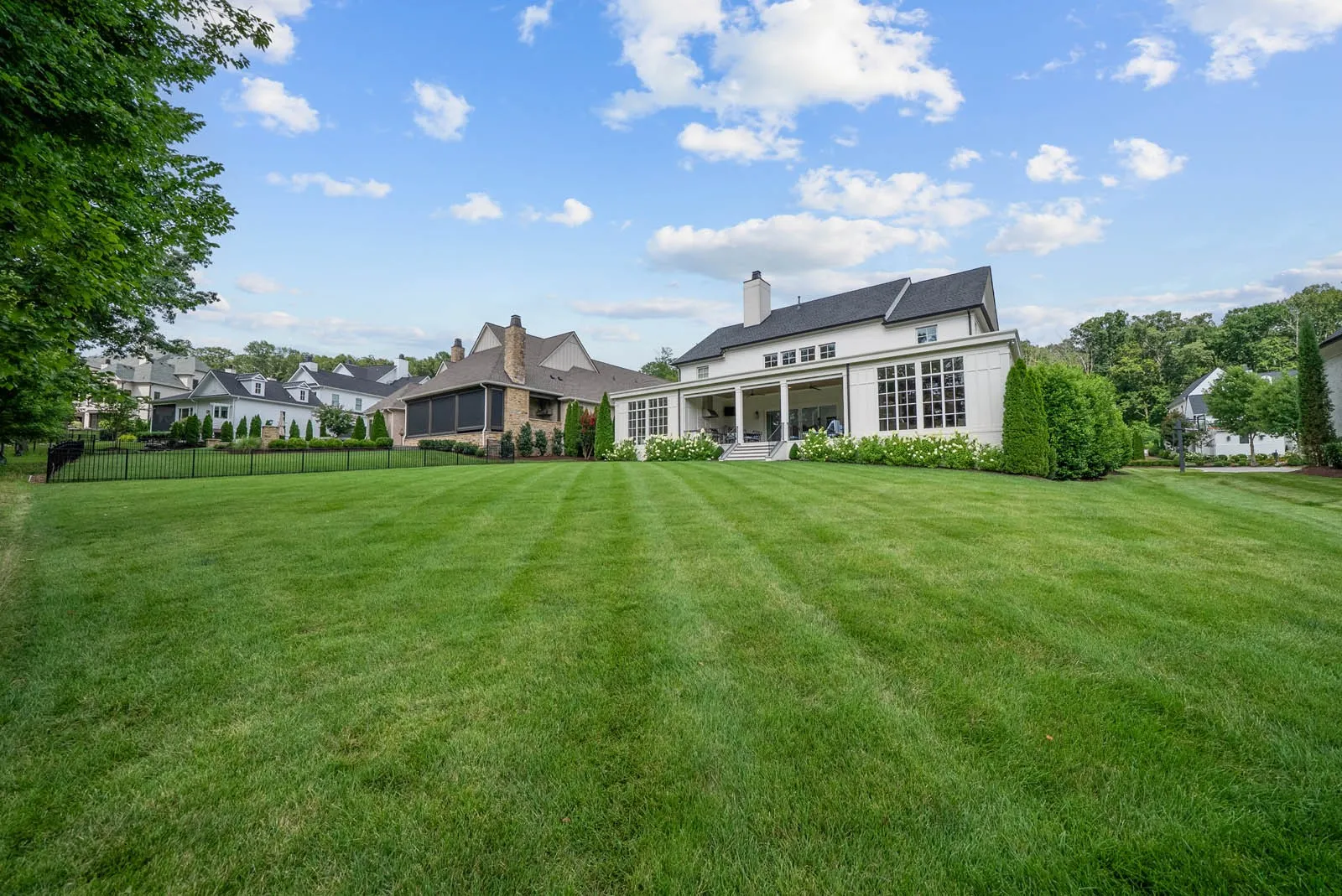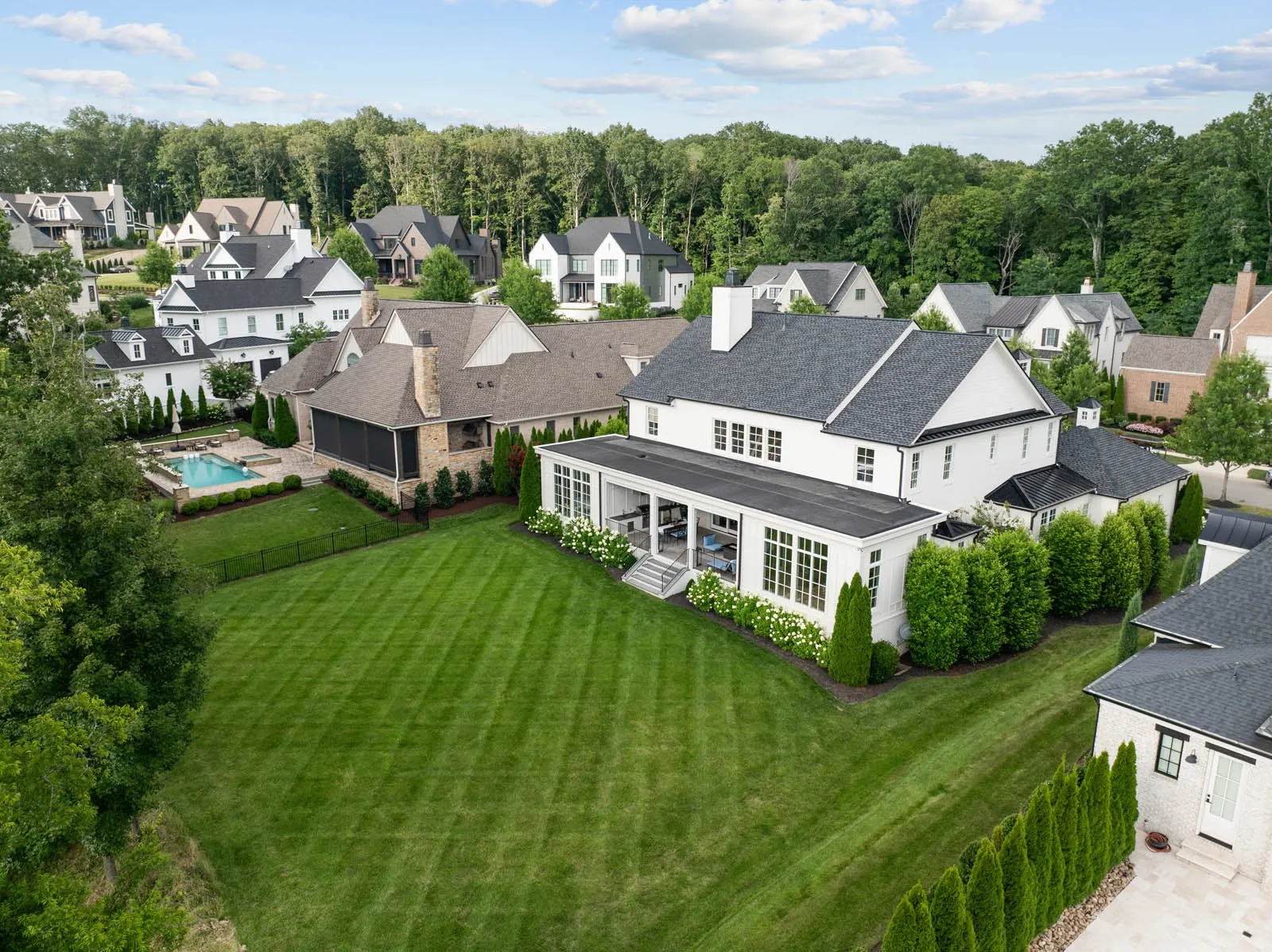This custom residence by Stonegate is perfectly positioned on a premium, nearly half-acre lot that offers exceptional privacy, backing directly to the apple orchard and a tranquil creek within The Grove. This rare homesite provides a peaceful, natural backdrop and an unrivaled sense of seclusion in the heart of one of Middle Tennessee’s most sought-after gated communities.\n