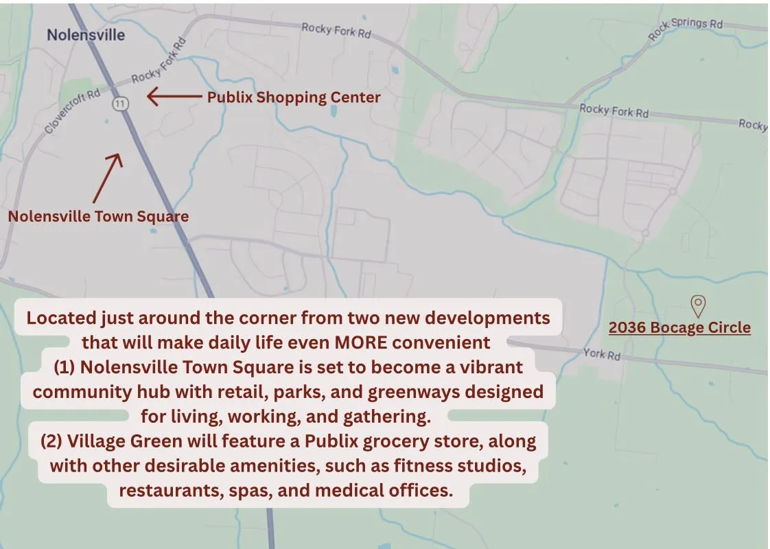 - Directions: From Nashville, I 24 E, exit 62 R onto Burkitt Rd, L onto Battle Rd, L onto McFarlin Rd, R onto Fly Rd, R onto Rock Springs Rd, L onto Rocky Fork Rd, R onto Annecy Pkwy, L onto Charvillon St, R onto Bocage Cir, home on the R