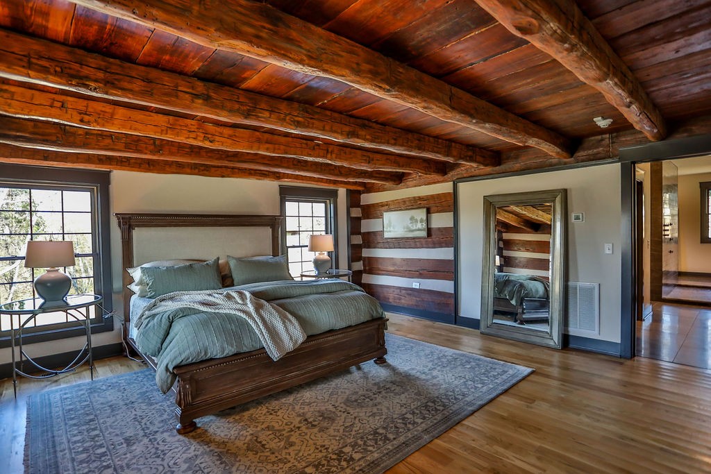 NEW Exquisite Crafted Estate nestled on 9.1 acres w/ breathtaking views. 8 beds, 5 baths, 2-1/2 baths.State-of-the Art Chef’s kitchen,10 ft marble island. Butlers room doors imported from FRANCE,150 y/o chandelier, reclaimed woodwork dates back 200 yrs.Original brick floors,copper tub,8 ft. marble walk through shower & marble bathroom counters Primary suite & laundry on main. Original 3 inch wood floors & stairway. Upstairs balcony. Library w/ exposed log walls & original stone fireplace. 1742 sf additional living quarters w/ 2 bedrooms, kitchenette & full bath. 4 car heated/cooled garage. Perfect for celebrations & extended stays. Basement suite w/ separate entrance. Country Music ICON,Trisha Yearwood, previously owned the 1974 cabin. Preserved cabin meets modern flair! Courtyard has plenty of room for a pool. Garage wired for EVC. Workshop & gym in garage. 2 laundry rooms. Adjacent 3000 sf house & 8+ acres available as well. Awaiting updated Septic Disc. Approx 6000 sf is NEW build.