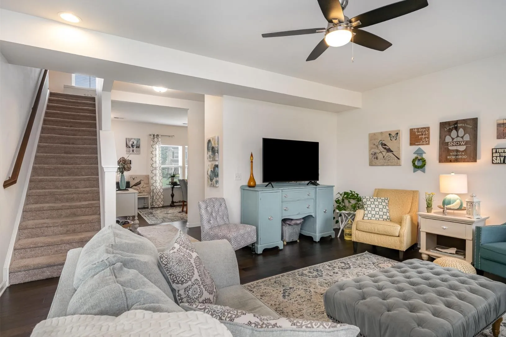 Welcome to your new home! This beautifully maintained 3-bedroom, 2.5-bath gem sits on a desirable corner lot in a small, quiet neighborhood, perfect for those seeking peace and privacy. Bright and spacious layout, Engineered hardwood floors throughout the main level, carpet upstairs for cozy comfort, Modern kitchen with soft-close cabinets—a chef’s dream! Upstairs, you’ll find three generously sized bedrooms, including a serene primary suite with ample closet space and an en-suite bath with a walk in shower. Outside, enjoy your yard with plenty of space for relaxing or entertaining.