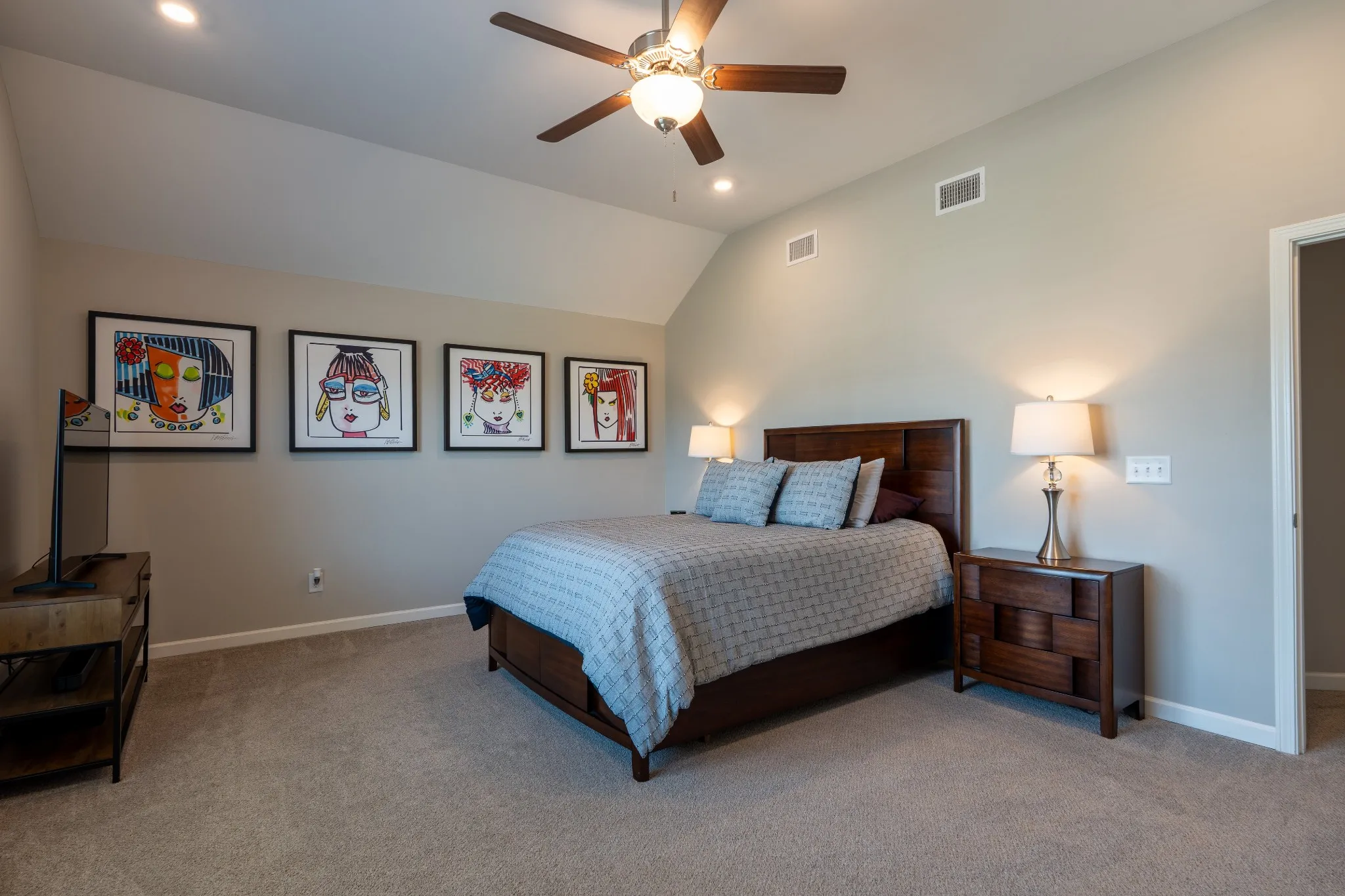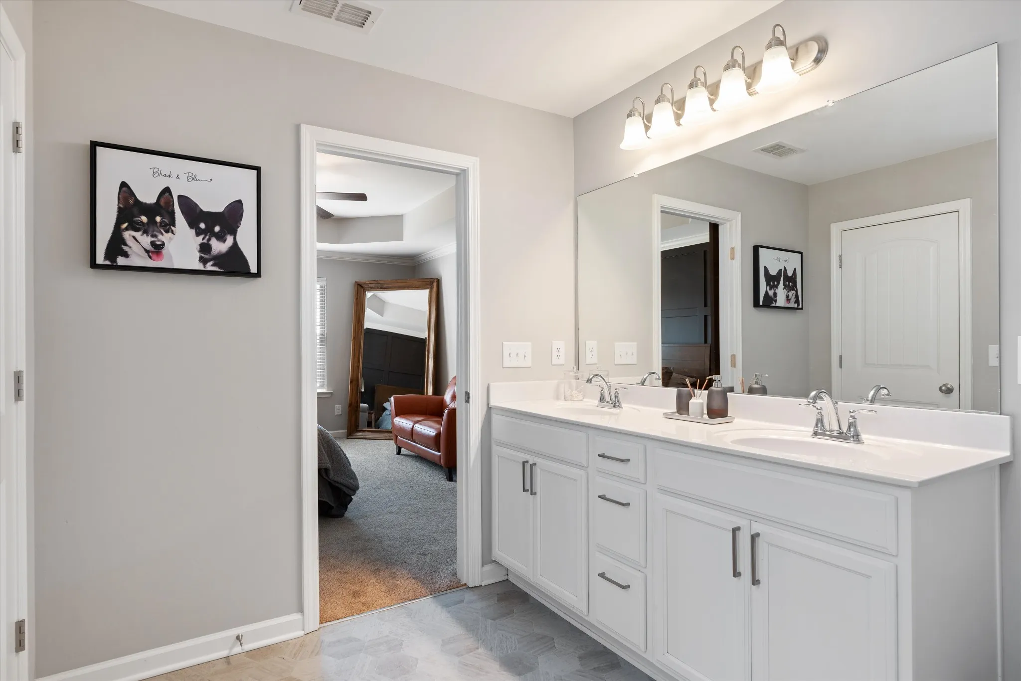 The open concept layout offers both comfort and functionality, with a large kitchen featuring a center island, stainless steel appliances, and ample cabinet space flowing seamlessly into the main living areas. All five bedrooms are generously sized, offering flexibility for growing families, guest rooms, or home office space. The primary suite includes dual vanities, and a walk in closet.