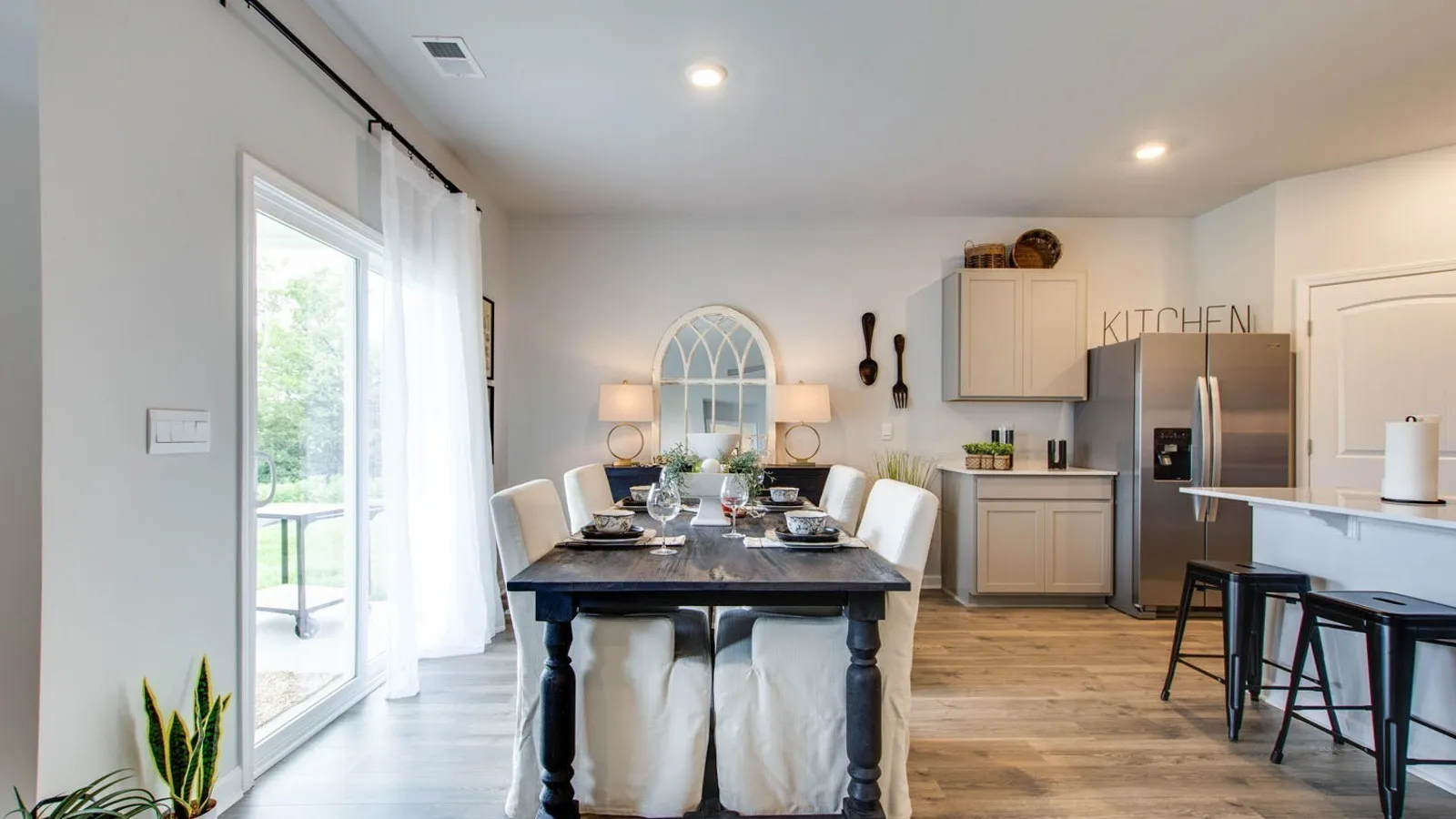 Only 2 left!!! Backs up to tree line – No homes behind you! Upgrade your Expectations at Nexus North!!! The Cali Ranch plan! One Level Living, Open Concept, Farmhouse, Single Bowl kitchen sink and NO stairs. Beautiful windows allow natural light to brighten this home up! Covered patio off the back, perfect for grilling and entertaining. No rear neighbors, backs up to a tree line! Below market interest rates with Preferred Lender. 4 spacious bedrooms, 2 bath. No Pricey upgrades. Quartz countertops, NO Carpet in the Living Rm or Kitchen, and you can monitor your front door, control your thermostat & garage with a phone app included in the SMART Home pkg. Resort Style POOL, & Sidewalks on Both SIDES of the Street!, Playground, Community Clubhouse, & ATT internet included!! Convenient interstate access, within 5 miles of several restaurants, shopping, and 2 hospitals. 30 Miles to NASHVILLE!!!
