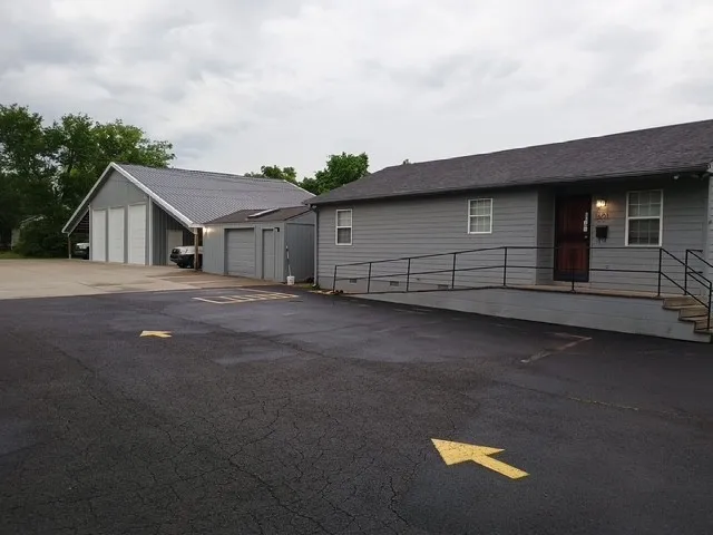 The office has 1000 sq. ft. with 2 half baths. Has 4 or 5 separate offices or rooms. Kitchen with sink. Garage or warehouse has (4)) 10×12 overhead doors, middle door is a drive through door. Also has a 14,000 lb. drive on car lift. Secure storage Shop or warehouse has 3200 covered ft. Office is 1000 sq. ft. Paved parking in front on 1.2 acres. Amble Parking. Central heat and air, large bldg. has gas heat. Only minutes from town. Can be leased together or separately. House could be used as a home and buildings for business.