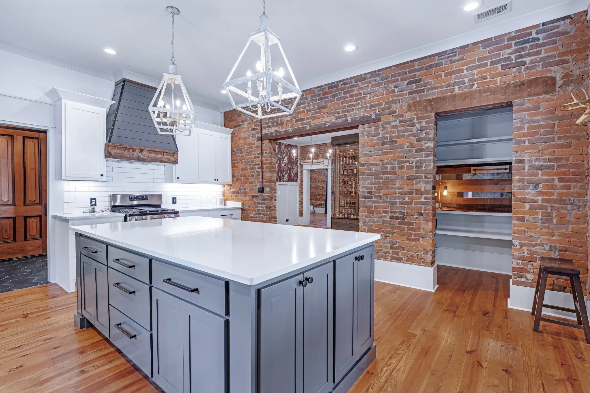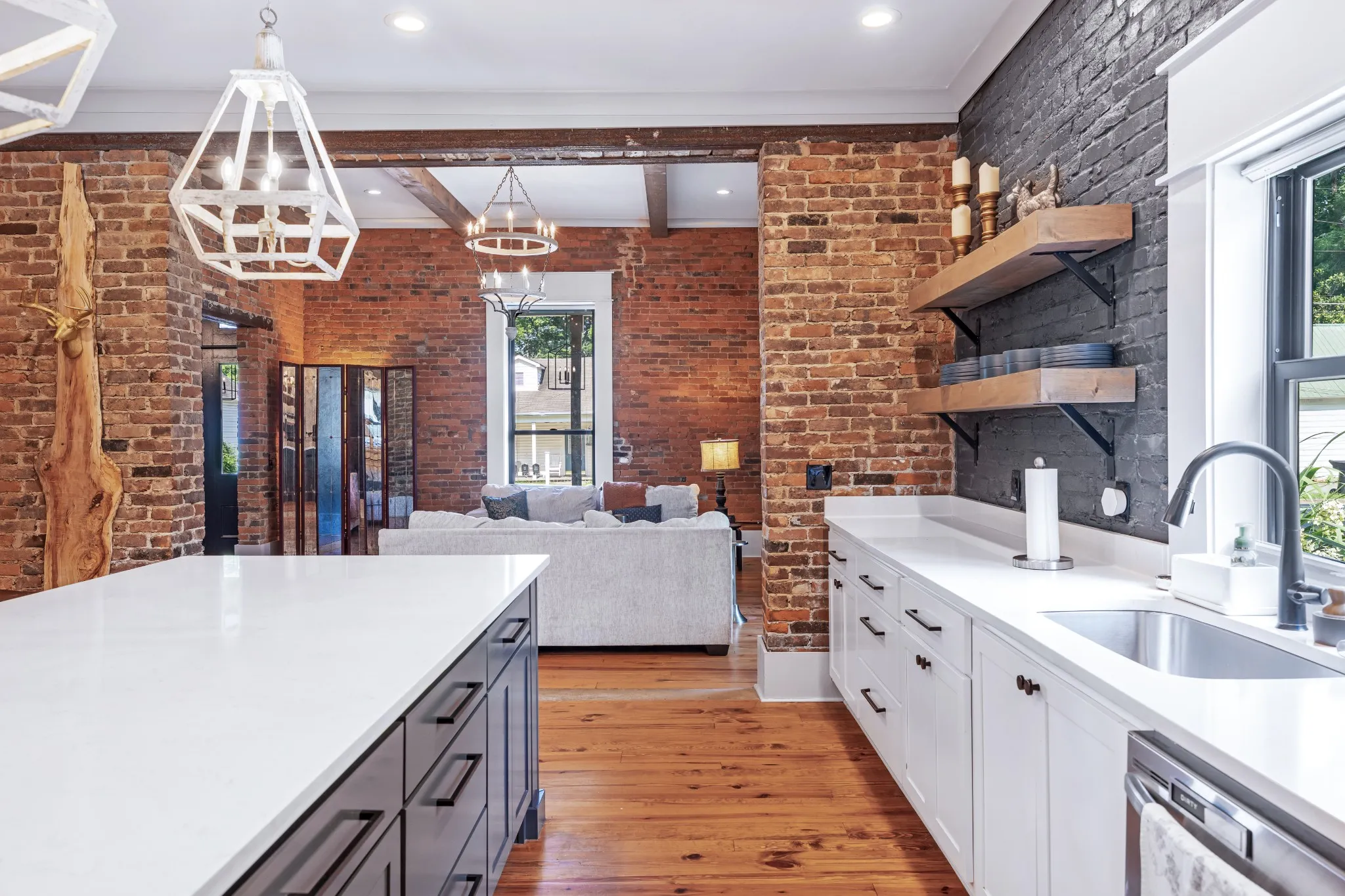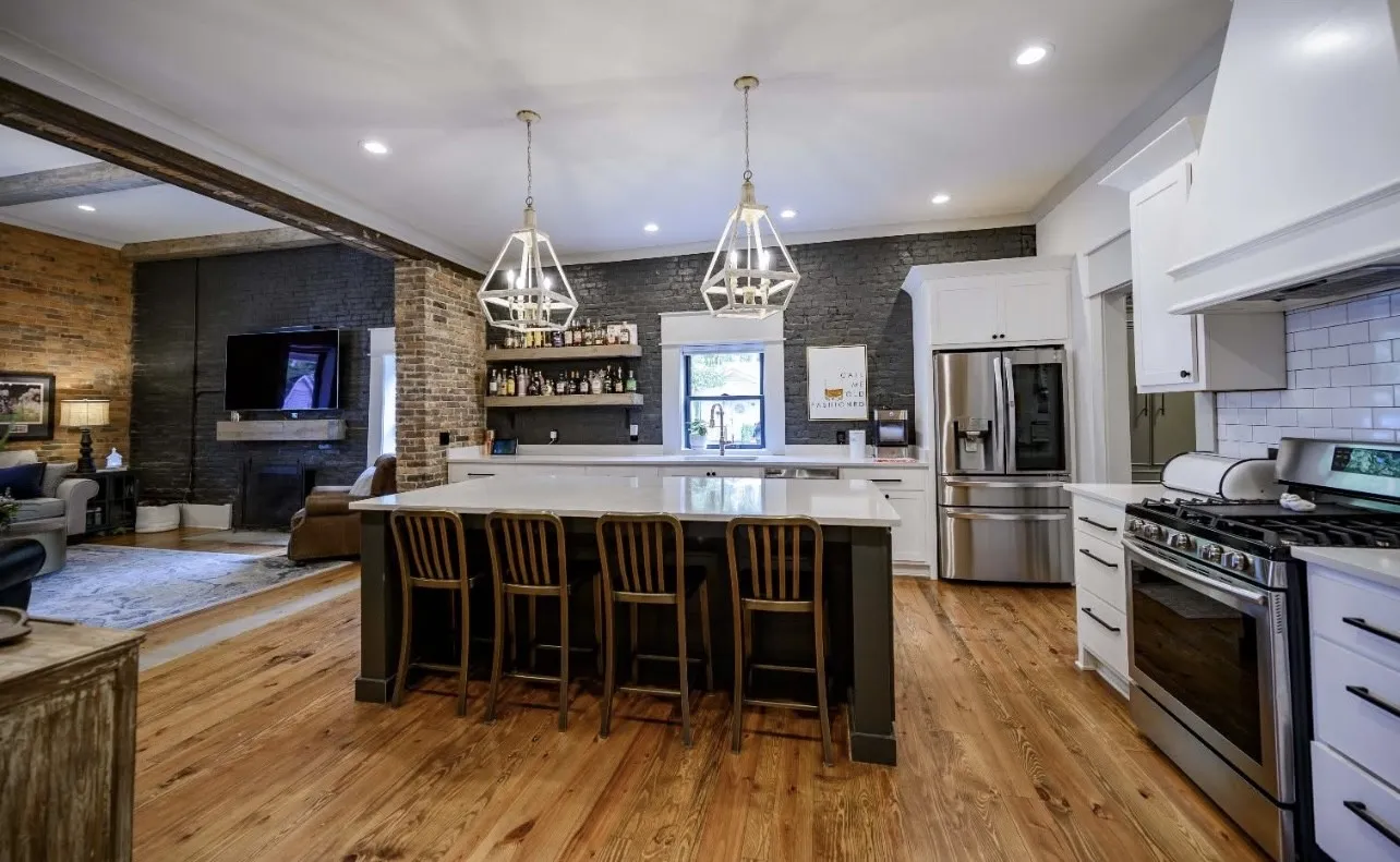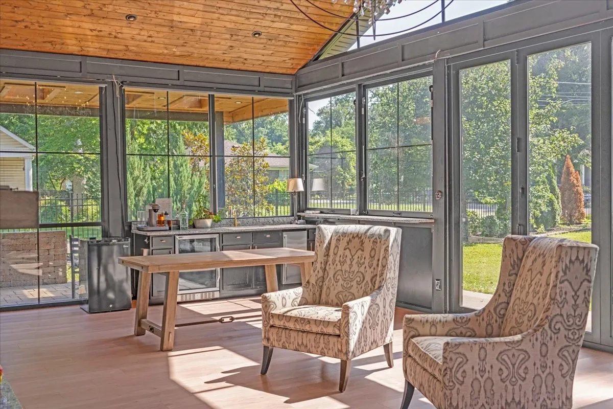 Breathtaking, beautifully renovated home in beloved Downtown Murfreesboro that is one of the towns most historic treasures! Less than a 10 minute walk to the square allows for various dining, entertainment, shopping, or a haircut! Built in the 1840s, industrial elements were added to this ONE level home and extensive renovations done. The charm of the original brick is exposed and some of the original doors, floors, and other touches. This home was featured in VIP Murfreesboro after the breathtaking glass sunroom was added. Enjoy entertaining in this heated and cooled modern oasis added space with outdoor wet bar! The “haint blue” front porch ceiling is a southern American tradition with a long-standing belief that painting a porch ceiling blue helps repel insects like wasps or mosquitoes. The high ceilings are spectacular throughout the home! This is truly a unique house with so many custom features. One of the best features is the huge yard (.33 acres) and front porch! Large central custom kitchen and dining are truly a show stopper with built in wine fridge and storage. Too many features to list – this home is a must see in person!