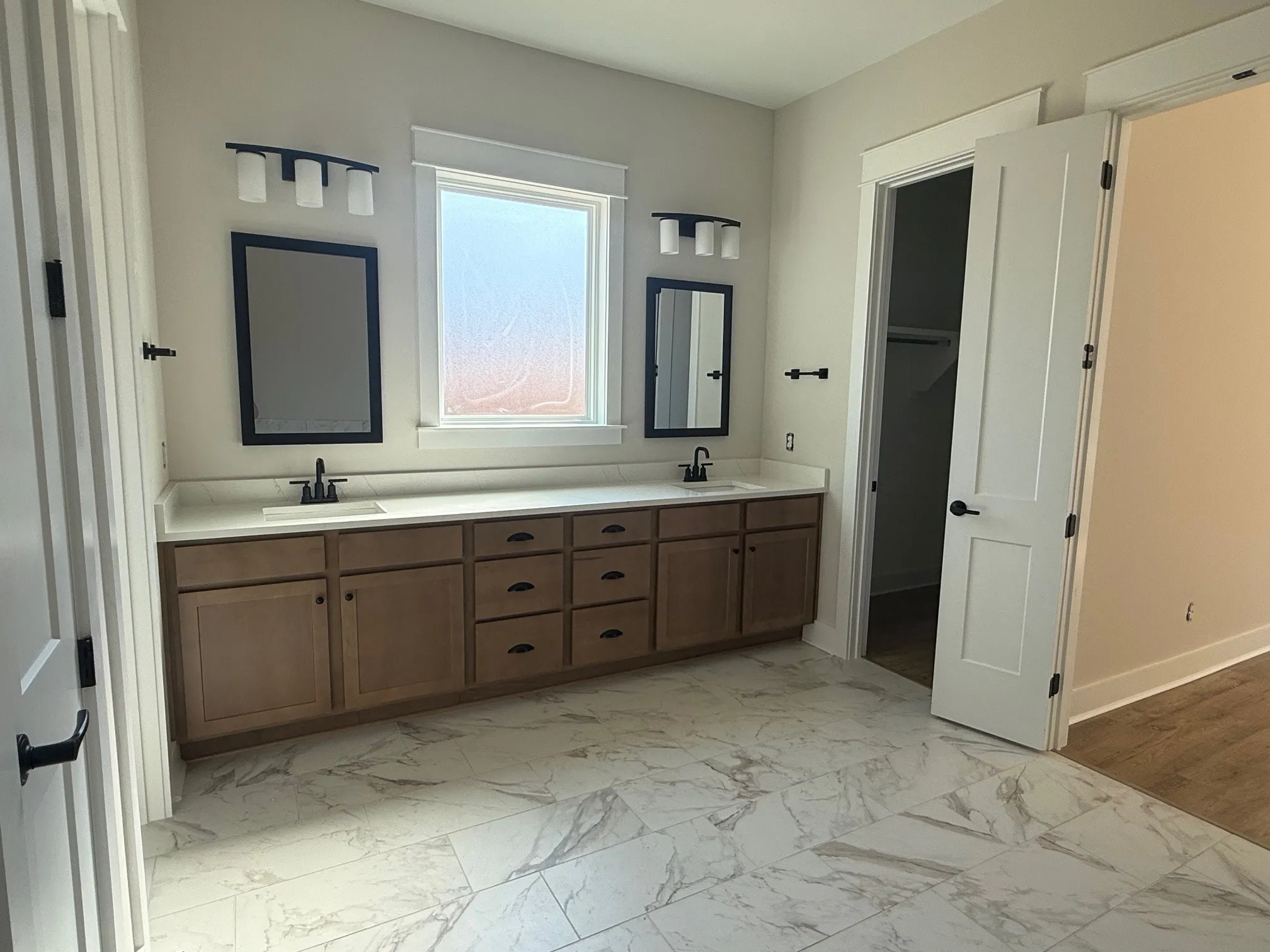 The main floor is home to the primary suite, offering a private retreat with luxurious finishes. An additional office space on the main level is perfect for remote work or study. Upstairs, you’ll find Jack-and-Jill bathrooms connecting spacious secondary bedrooms, and a walk-in storage room for easy organization.