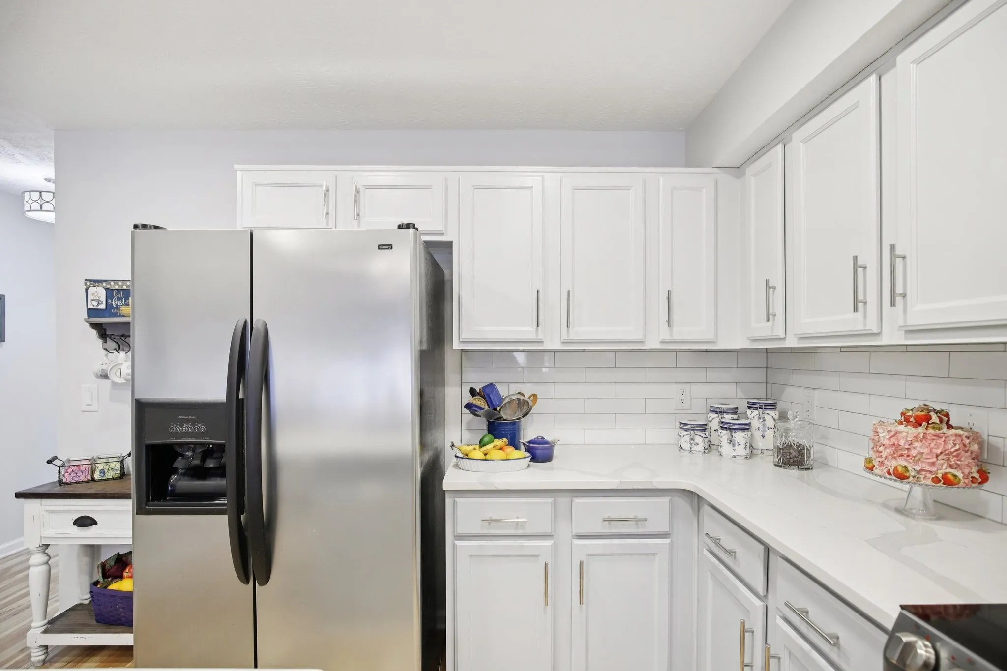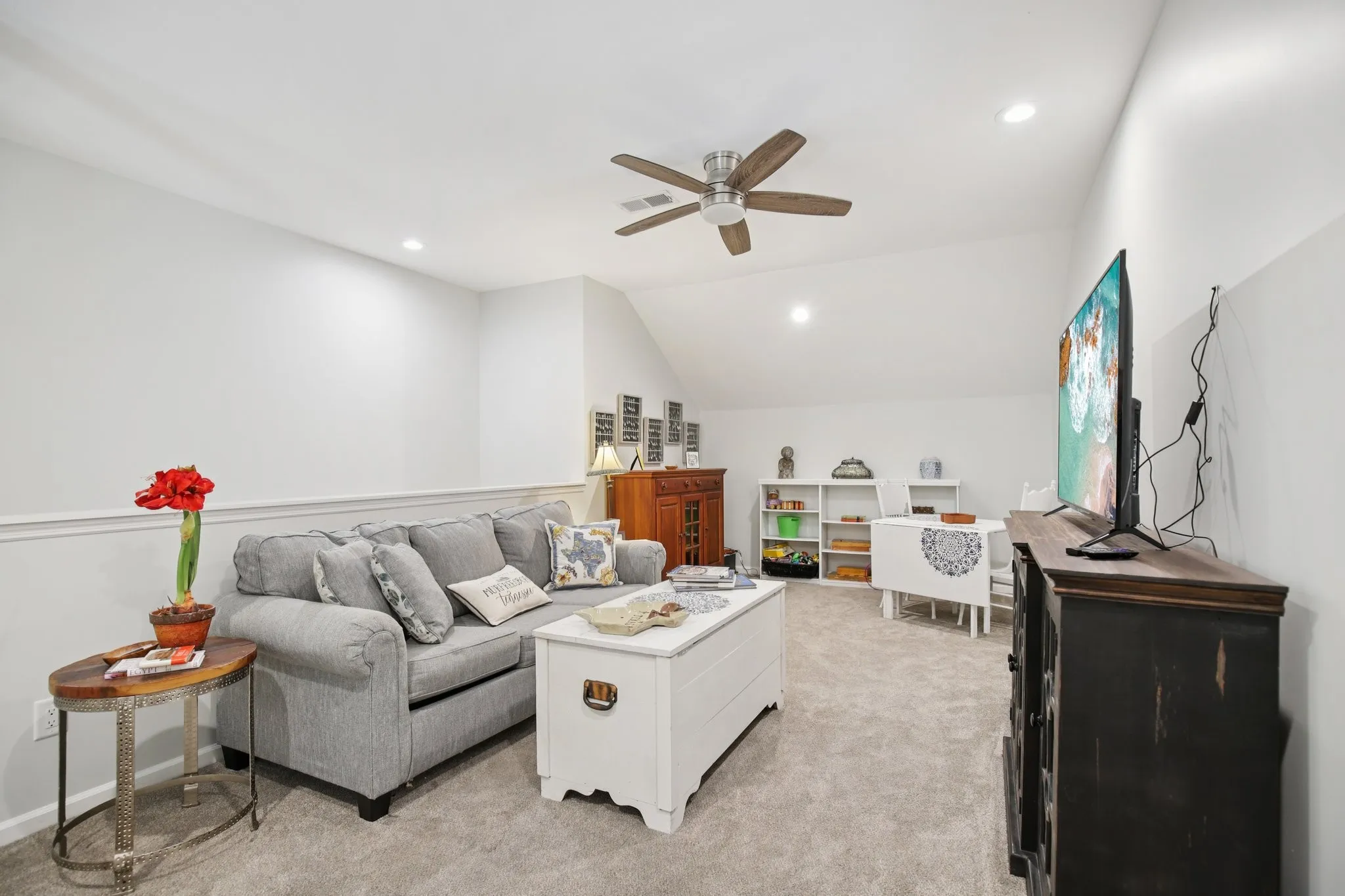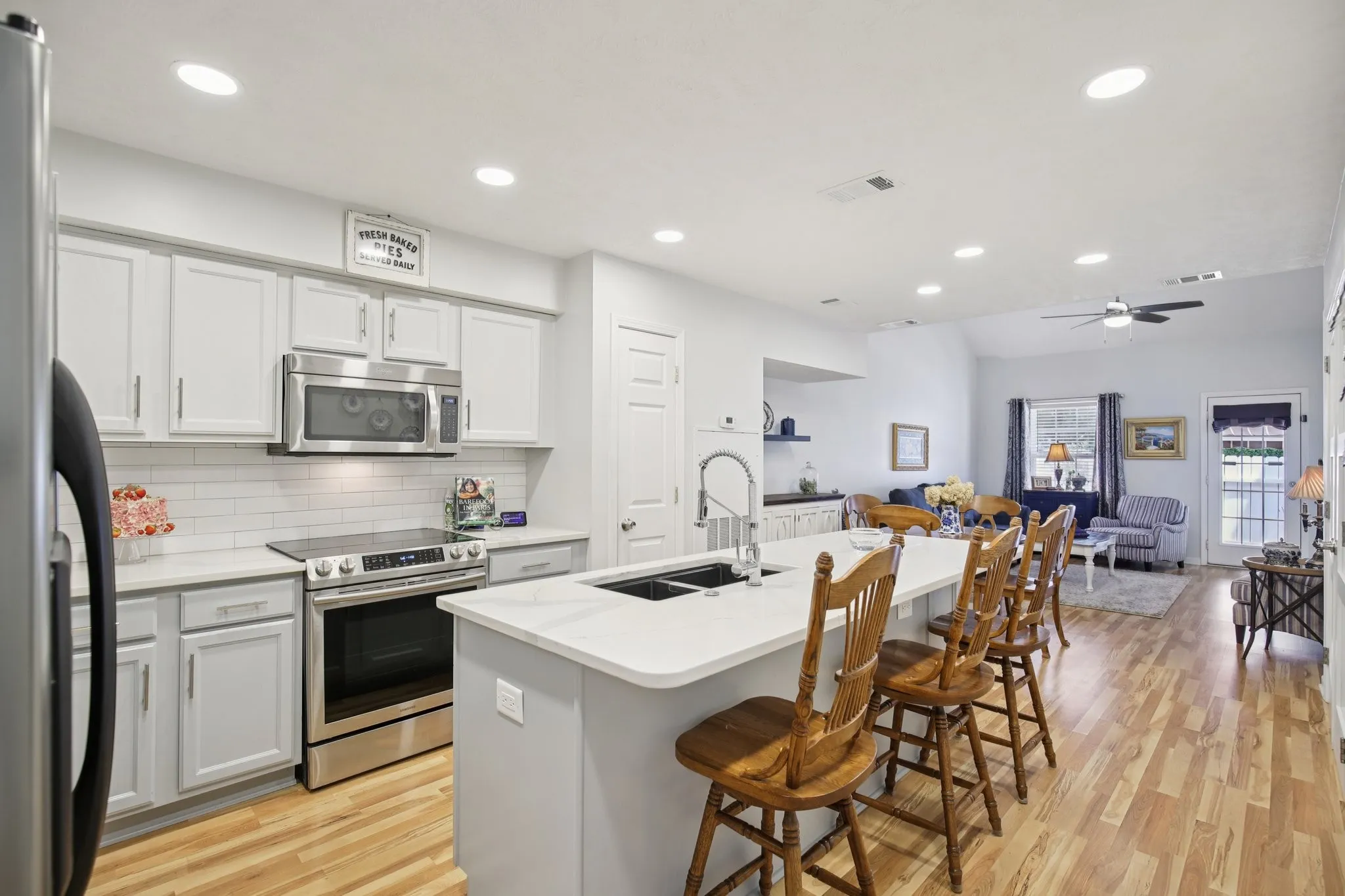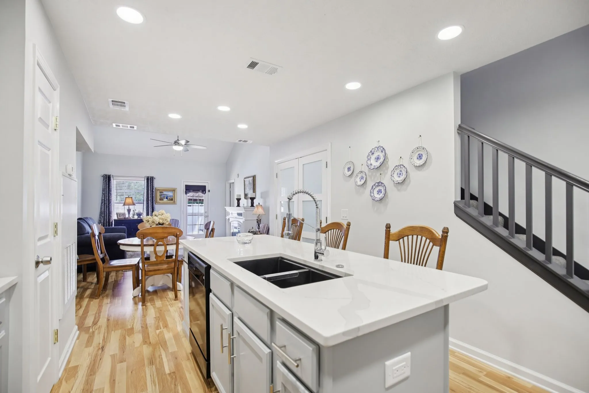 PRICE DROP! Welcome to your private retreat in one of the area’s most sought-after peaceful neighborhoods – a home that offers elegance, space, and thoughtful upgrades throughout. From the moment you enter through the foyer, you’ll be captivated by the open-concept design, high ceilings, and stylish laminate flooring that flows effortlessly across the main level. The custom eat-in kitchen is a showstopper – featuring quartz countertops, white subway tile backsplash, stainless steel appliances, an extended island with seating, granite sink with pro-style faucet, deluxe water purifier, and a brand-new programmable range. The main-level primary suite is your sanctuary, boasting a luxurious walk-in shower with custom glass doors and rain shower head, quartz vanity with matching backsplash, and a walk-in closet. A private main-level guest suite with full bath and a modern laundry room with frosted French doors add function and flair. Upstairs, discover a spacious bonus room perfect for entertaining, a luxury full bath, and a second oversized suite option for a possible 4th bedroom – plus walk-in storage with built-in lighting. Enjoy Tennessee’s beautiful seasons on the oversized patio under your motorized Sun Setter awning – or unwind in the fenced backyard designed for easy relaxation. The deep garage with room for a workbench or freezer opens adds everyday convenience. The roof is only 5 years old, adding protection and value. This rare blend of comfort, quality, and quiet living won’t last – schedule your private showing and step into the lifestyle you’ve been waiting for!