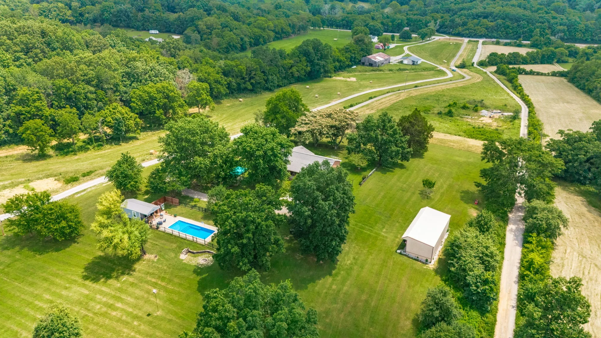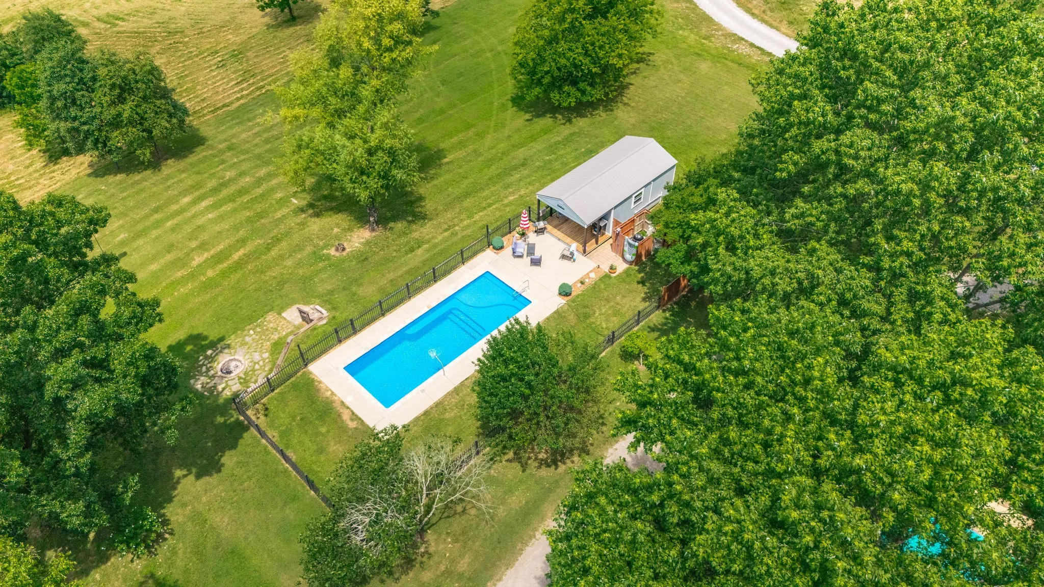 This truly is one that you have to see in person to take it all in! Beautiful Private Setting! All brick renovated home with full basement sits on 6 gorgeous acres in LIBERTY CREEK SCHOOLS, has inground pool, pool house, outdoor shower, 4,000 gallon koi pond with +20 fish, 20X18 outbuilding, fire pit! Inside has been beautifully updated, main floor has 2 bedrooms, 2 full baths, dining area, gorgeous white kitchen with stainless appliances and tile backsplash, and great bar area and sitting area for coffee, There is a mud room coming in from covered back porch with a great walk in pantry & laundry room with half bath. Full finished basement has many possibilities, large open space with gas fireplace, a bedroom and multiple storage rooms and somewhere to take shelter during storms. Outside is a true private heaven! Koi pond with +20 fish (Step under the shaded covered area by koi pond and feel the temperature drop and the peace and serenity surround you) 20X18 Metal Tact building with electricity. Inground pool has smart system with variable speed pump motor with led lights and fountain all controlled on your phone! There is an outdoor shower and pool house…Seller has portable AC unit that he will leave for pool house. Pool house has murphy bed, full bath, and kitchenette with refrigerator. Plenty of open land to enjoy or just sit by firepit and relax! Land has many trees and fruit trees (1 apple, 1 pear and 2 peach trees). PREFERRED LENDER IS OFFERING $5500 LENDER CREDIT AND FREE APPRAISAL