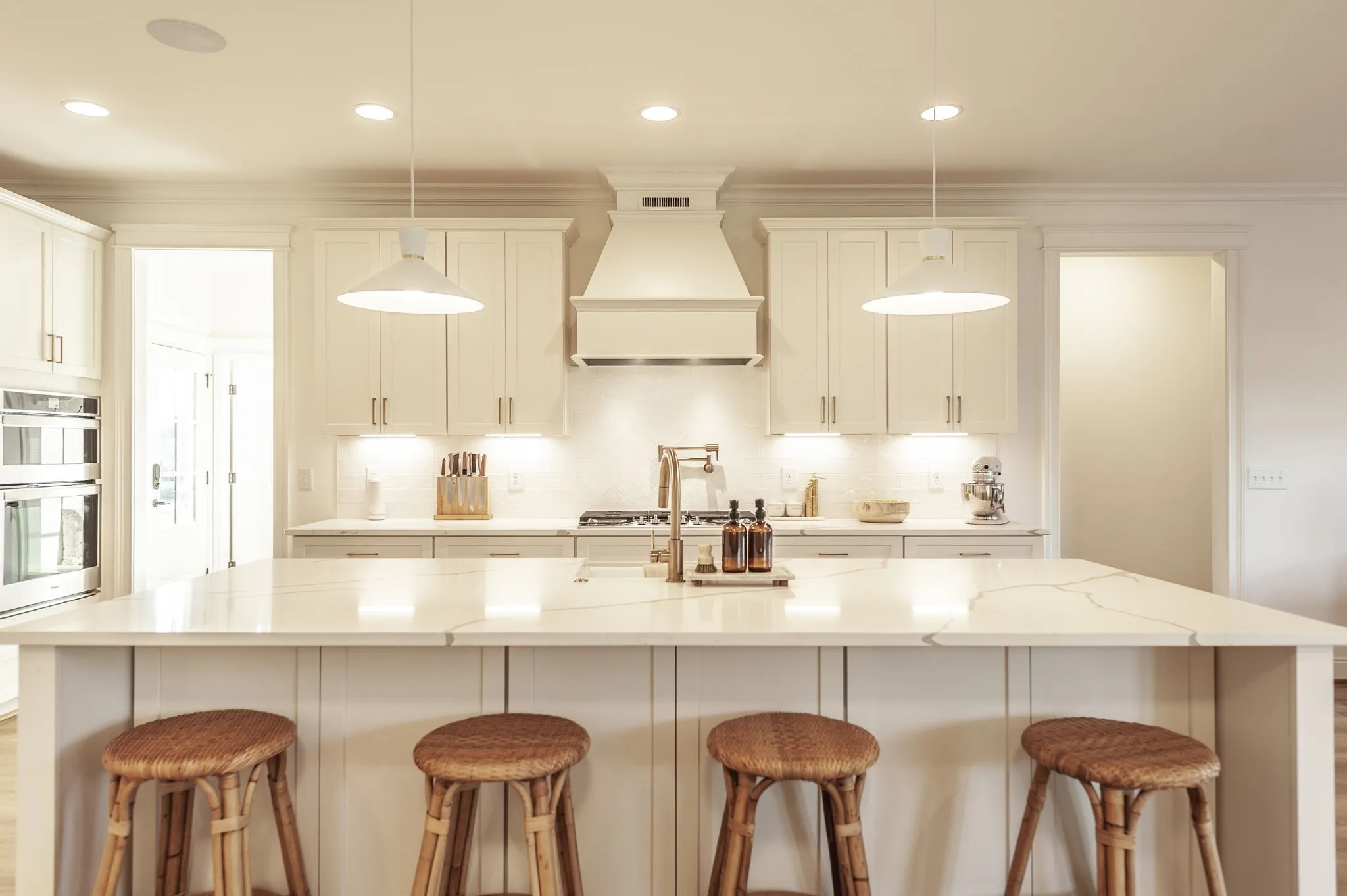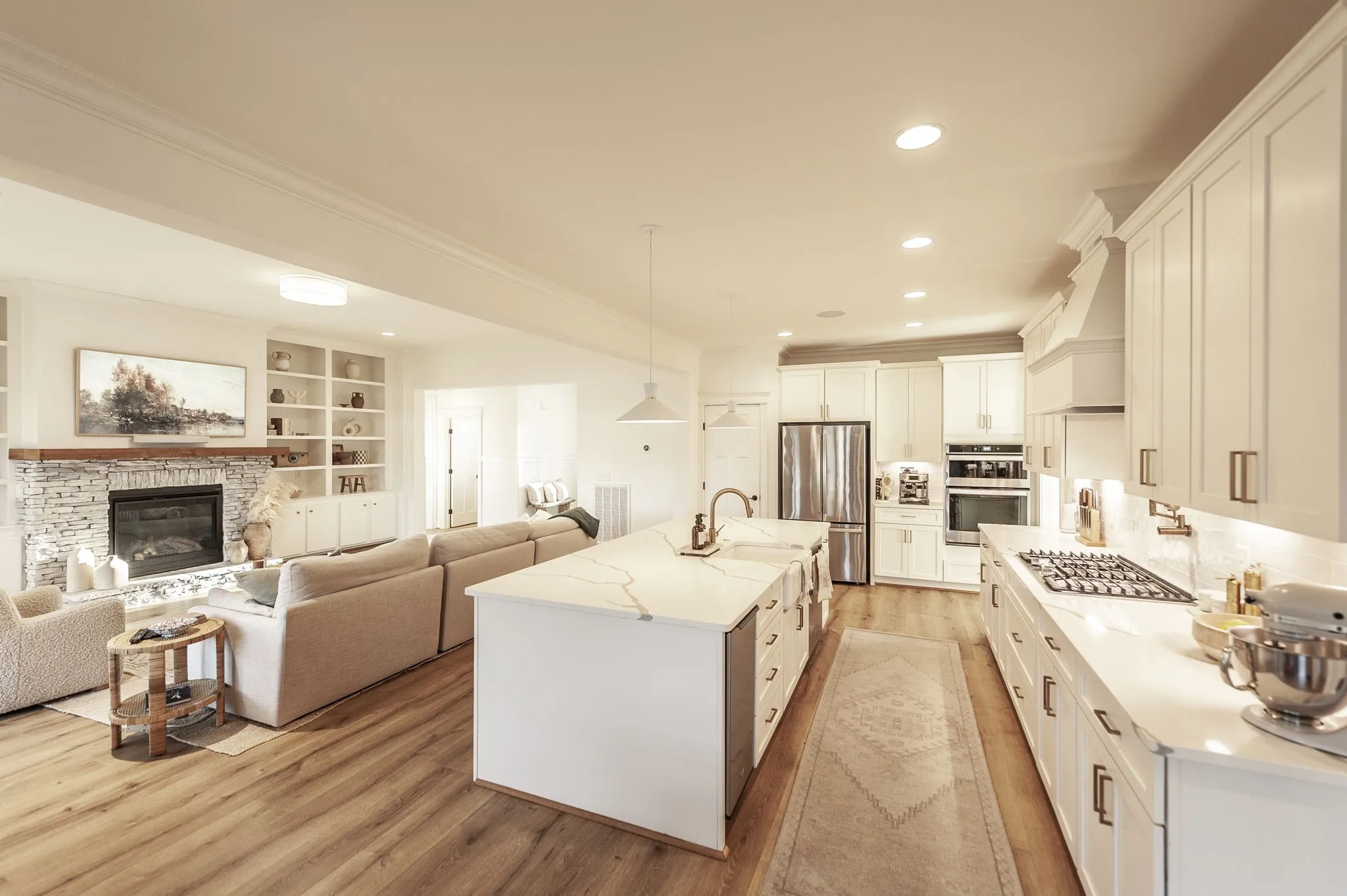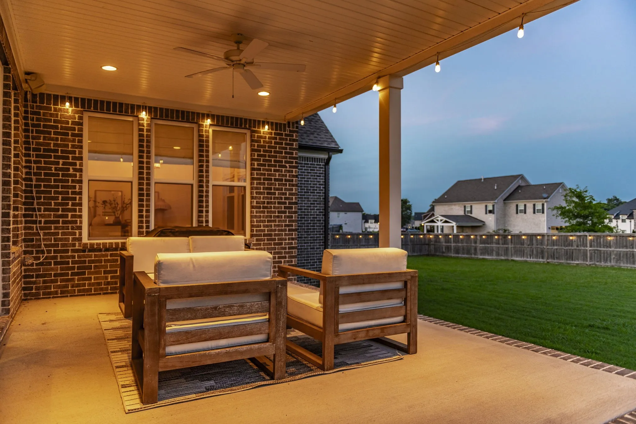 Welcome to this immaculate Award Winning Frank Batson Custom Home where thoughtful upgrades and high-end finishes create a perfect blend of style and functionality. Step inside to discover Nature Tek laminate wood flooring flowing throughout the entire first floor, setting a warm and modern tone. Vaulted Ceilings in the Living Room and Primary Bedroom. The gourmet kitchen is a chef’s dream, featuring soft-close cabinetry, an upgraded 36” gas stovetop, pot filler, under-counter ice maker, Kohler farmhouse sink, herringbone tile backsplash, and a stunning 10-foot quartz island with generous storage. Enjoy elegant touches like crown molding, detailed baseboard trim, Moen faucets, and custom blackout shades with remotes throughout the entire home. The fully painted garage is pre-wired for an electric vehicle charger, and a Simplisafe keyless entry system offers modern convenience. Extras include a built-in speaker system in the kitchen and dining room, shiplap-accented mudroom, and all bedrooms are hardwired with Cat6 connections. Step outside to your private retreat with a covered patio, pre-plumbed gas line for a future fireplace, and a 6-foot cedar-capped wood fence adorned with 300 feet of string lights on an automatic timer, perfect for evening ambiance. This home combines smart living with designer details, you will not want to miss this one!