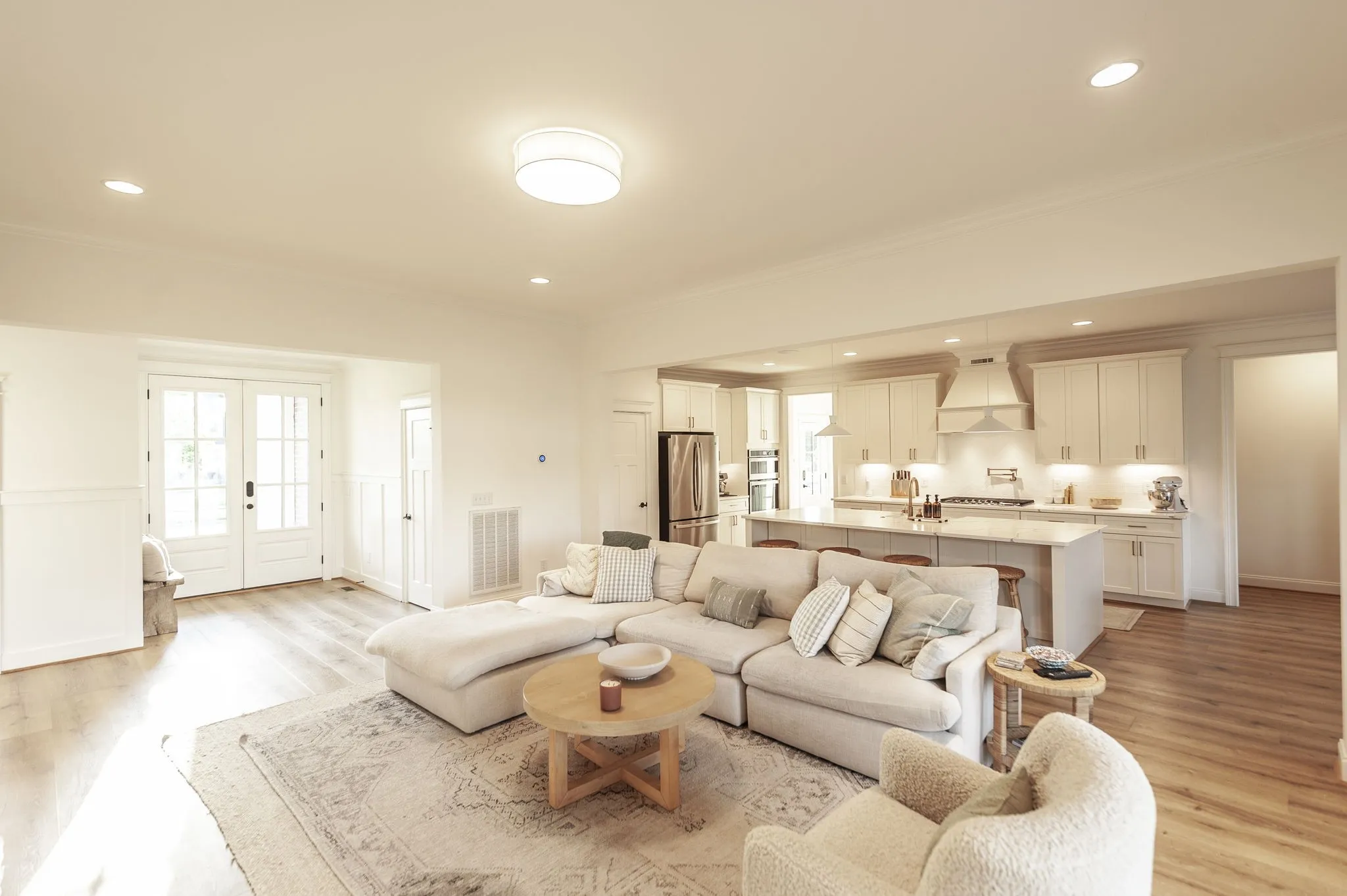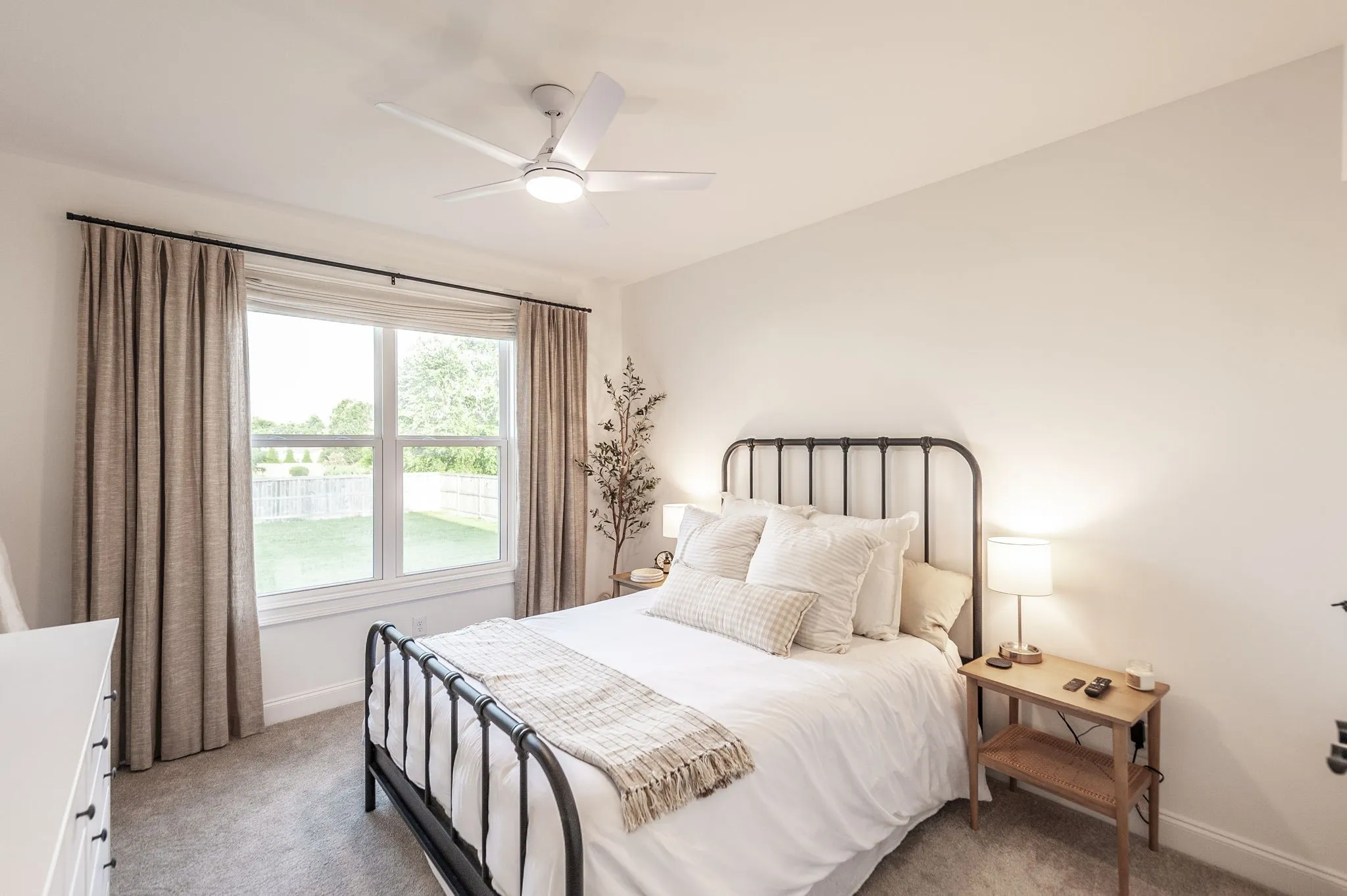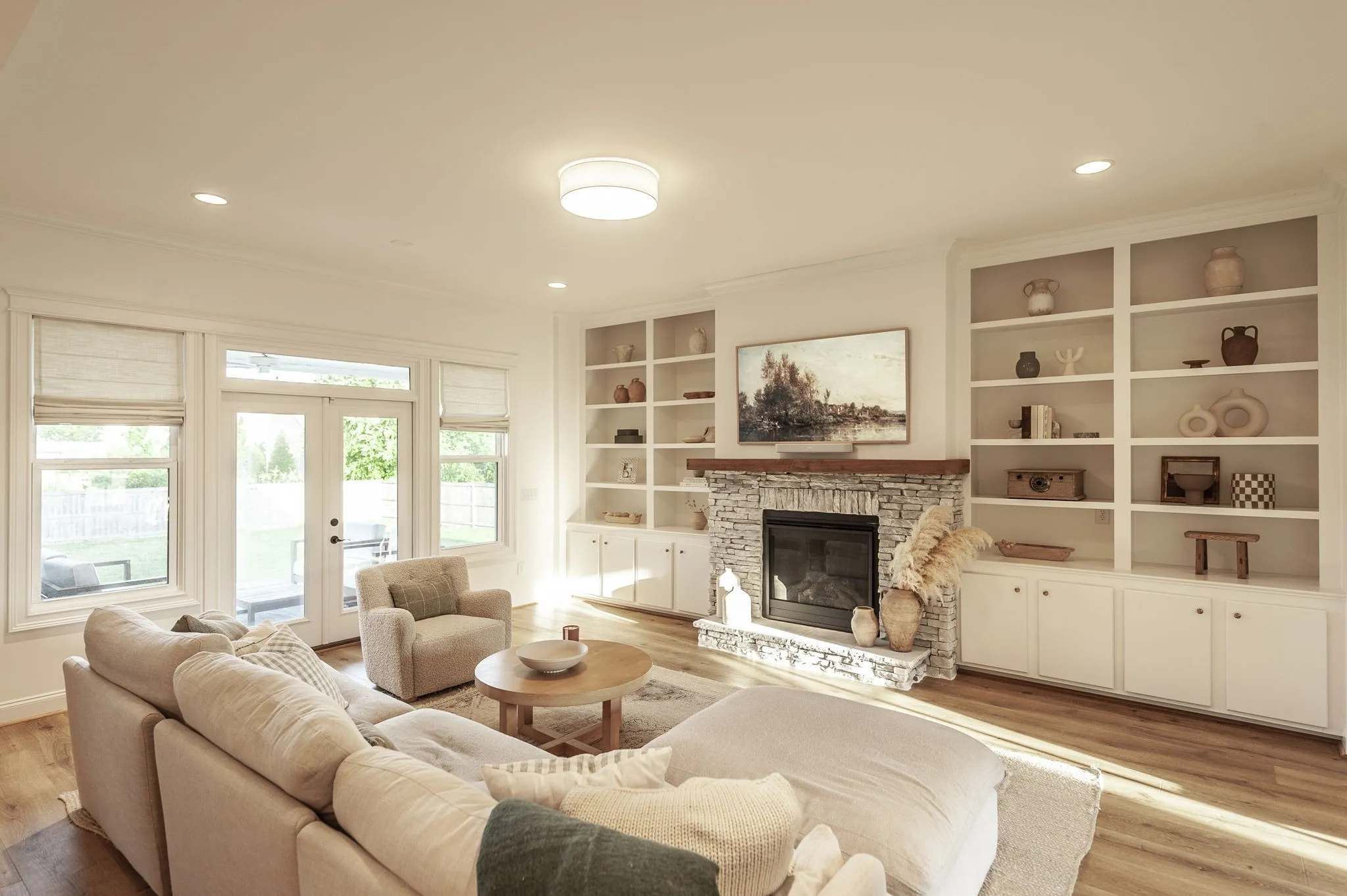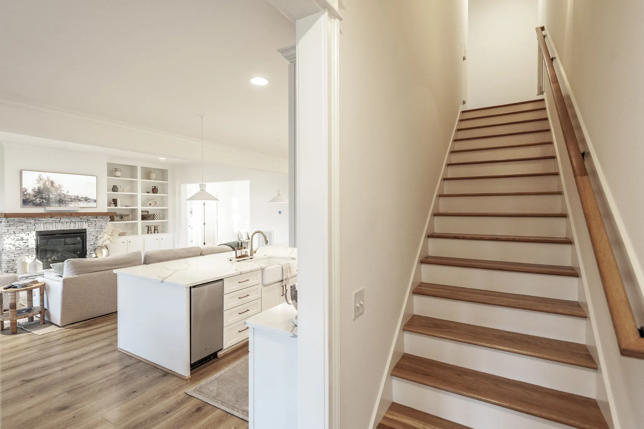Welcome to this immaculate Award Winning Frank Batson Custom Home where thoughtful upgrades and high-end finishes create a perfect blend of style and functionality. Step inside to discover Nature Tek laminate wood flooring flowing throughout the entire first floor, setting a warm and modern tone. Vaulted Ceilings in the Living Room and Primary Bedroom. The gourmet kitchen is a chef’s dream, featuring soft-close cabinetry, an upgraded 36” gas stovetop, pot filler, under-counter ice maker, Kohler farmhouse sink, herringbone tile backsplash, and a stunning 10-foot quartz island with generous storage. Enjoy elegant touches like crown molding, detailed baseboard trim, Moen faucets, and custom blackout shades with remotes throughout the entire home. The fully painted garage is pre-wired for an electric vehicle charger, and a Simplisafe keyless entry system offers modern convenience. Extras include a built-in speaker system in the kitchen and dining room, shiplap-accented mudroom, and all bedrooms are hardwired with Cat6 connections. Step outside to your private retreat with a covered patio, pre-plumbed gas line for a future fireplace, and a 6-foot cedar-capped wood fence adorned with 300 feet of string lights on an automatic timer, perfect for evening ambiance. This home combines smart living with designer details, you will not want to miss this one!