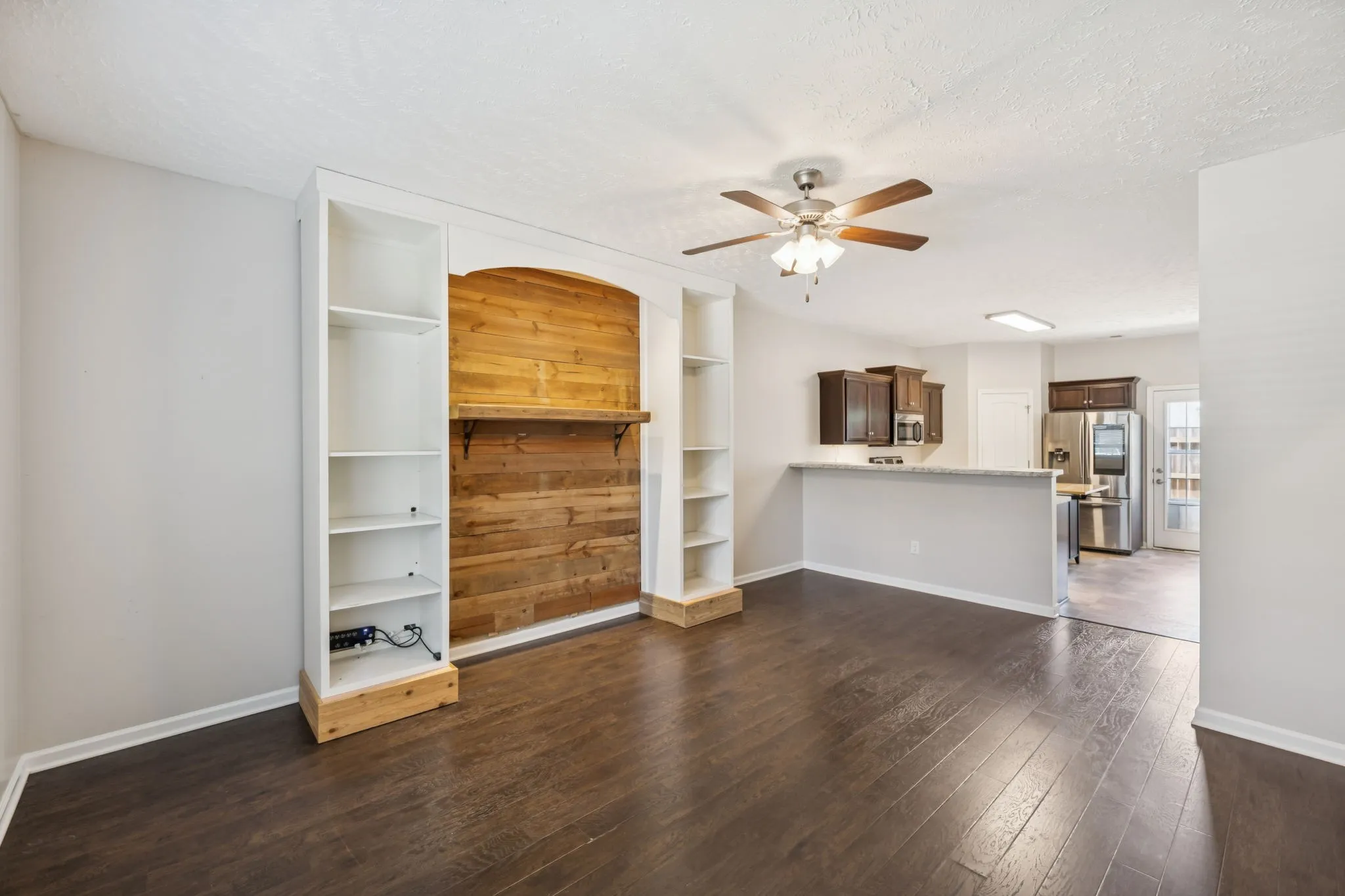 Spacious and move-in ready, this well-maintained home sits right in the heart of one of the newly-built sections of the sought-after Cottage Glen neighborhood, conveniently located within a mile of parks and nature trails as well as only 5 minutes from I-24. Inside, the open-space concept leads to a large living room featuring a built-in entertainment center that can hold up to 60” TV with extra shelves and a rustic finish that beautifully complements the modern flooring. The area under the stairs has been designed for storage use and/or pet cove.