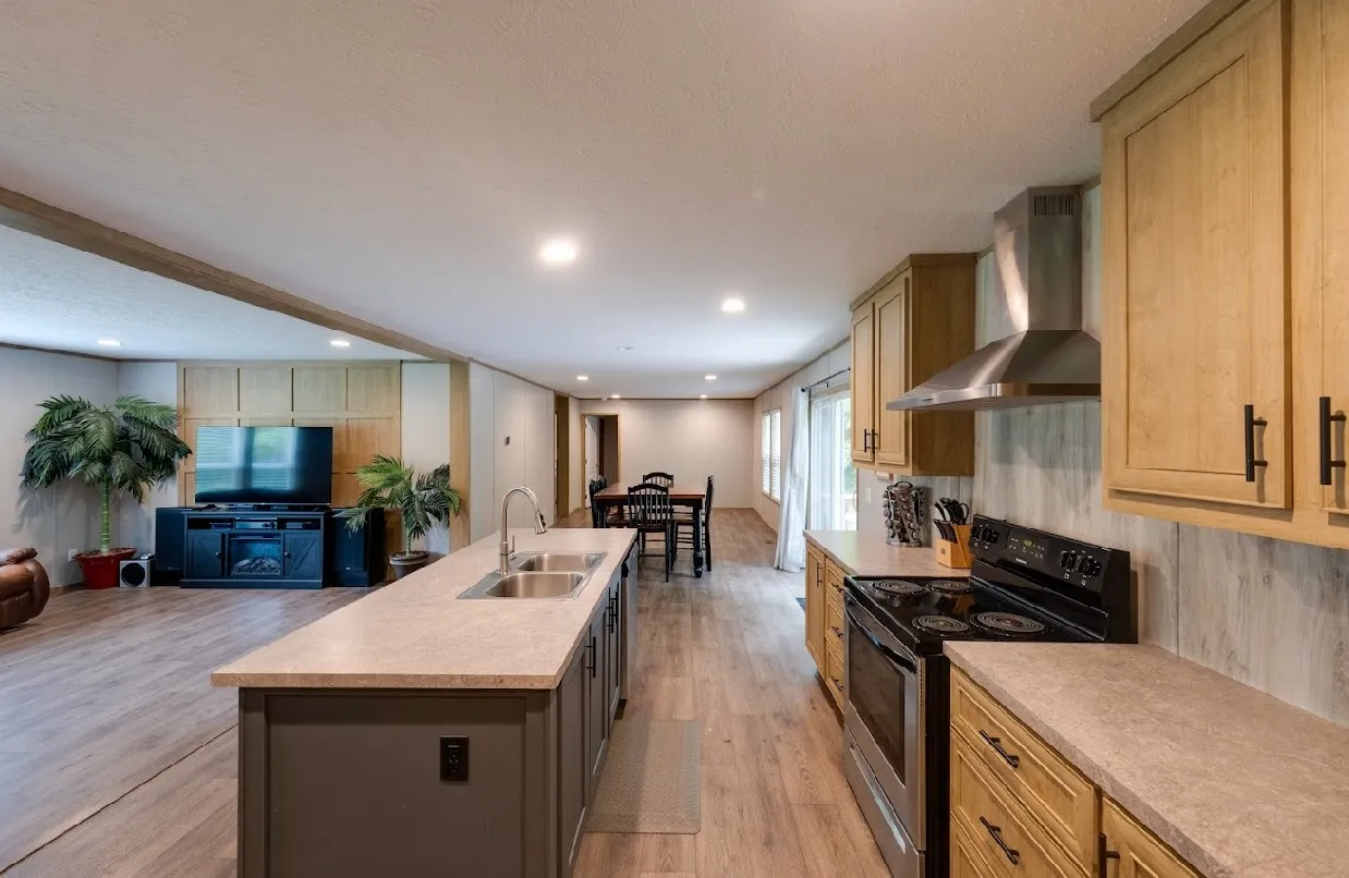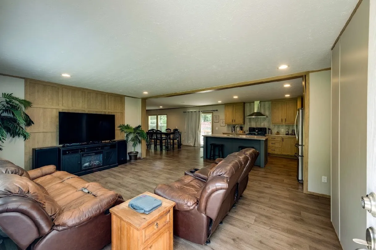 Country living at it’s finest! New 4 bedroom/2 bath home on over an acre with sweet privacy yet only a few minutes to town. Such great open space with two living areas plus a dining room and a nice island kitchen with its very own coffee bar and tons of cabinet space! Smooth concrete sidewalk out front and a deck out back for hanging out under the trees with a she-shed just steps away. Bonus: it’s a Clayton Home with an “Energy Smart” package!