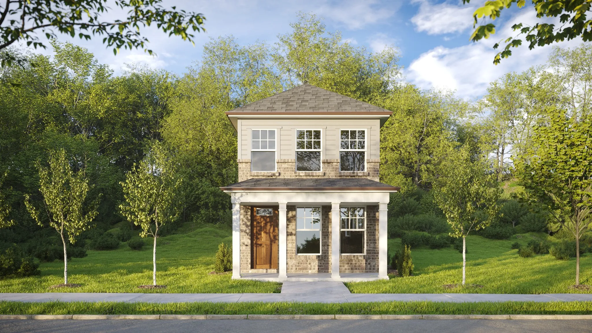 The Ellersly in Kingston Springs is pre-selling now from the high $300s to high $400s! Two lots are left in Phase I! CHOOSE FROM ONE OF NINE FLOORPLANS! Our homes range from 1480 to 2480 sq. ft., 3 – 4 bedrooms and 2.5 – 3 bathrooms. All Dalamar homes feature open concept living;10-foot first floor ceilings; 7-1/4″ baseboards on the first floor; gorgeous archways throughout; rounded drywall corners; and trey ceilings in the master bedrooms. Then choose the finishes for the exterior and the interior, making it your own custom home! You can opt to purchase and add on a garage apt.; loft above the garage and/or a Martini Deck w/loft above the garage. All photos are renderings of previously built homes. While there is not a model in Ellersly, you can visit the model home in the Hamlet @ Carothers Crossing, 122 Oasis Dr. to see the same floor plans being offered in Ellersly.