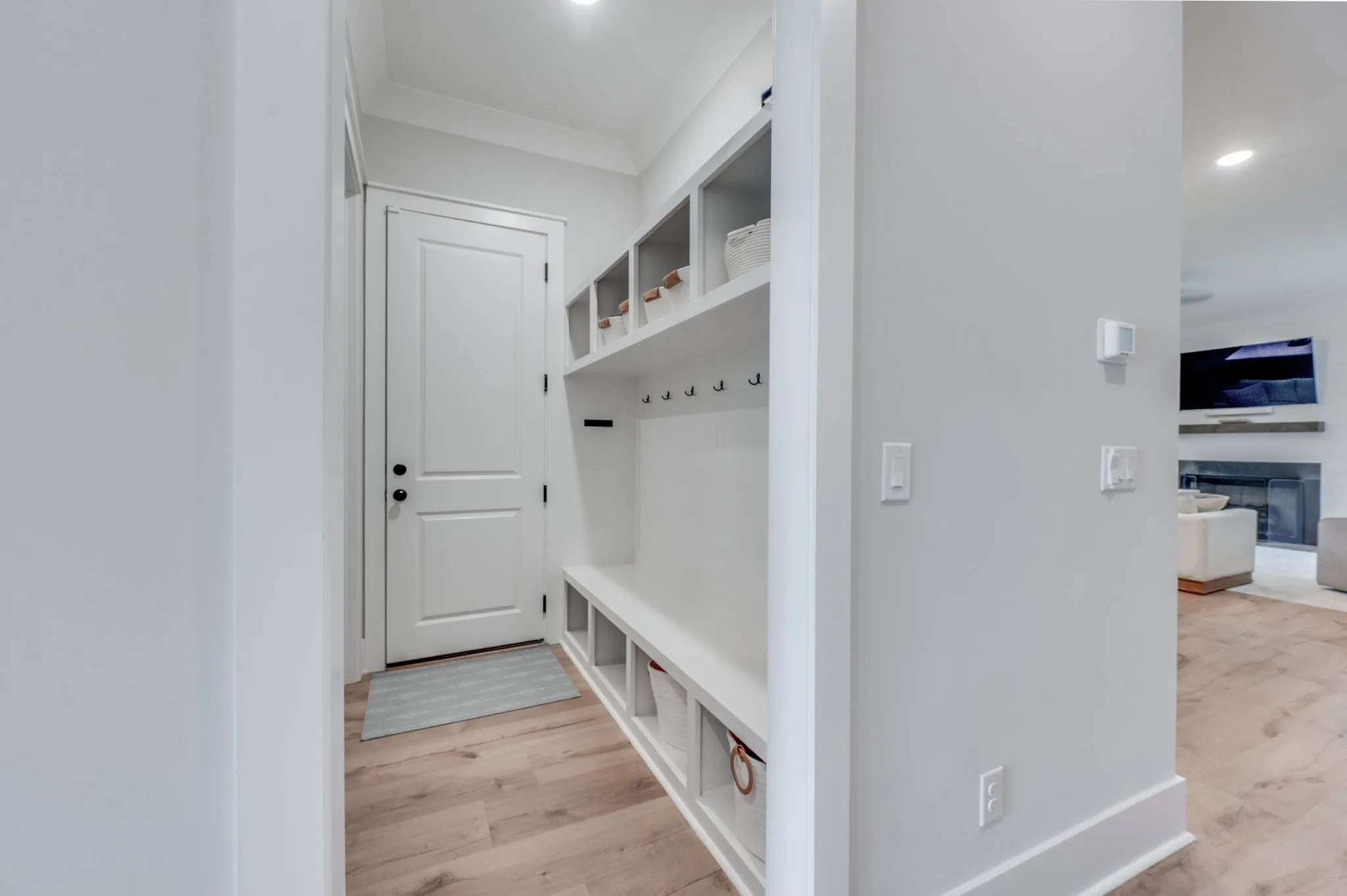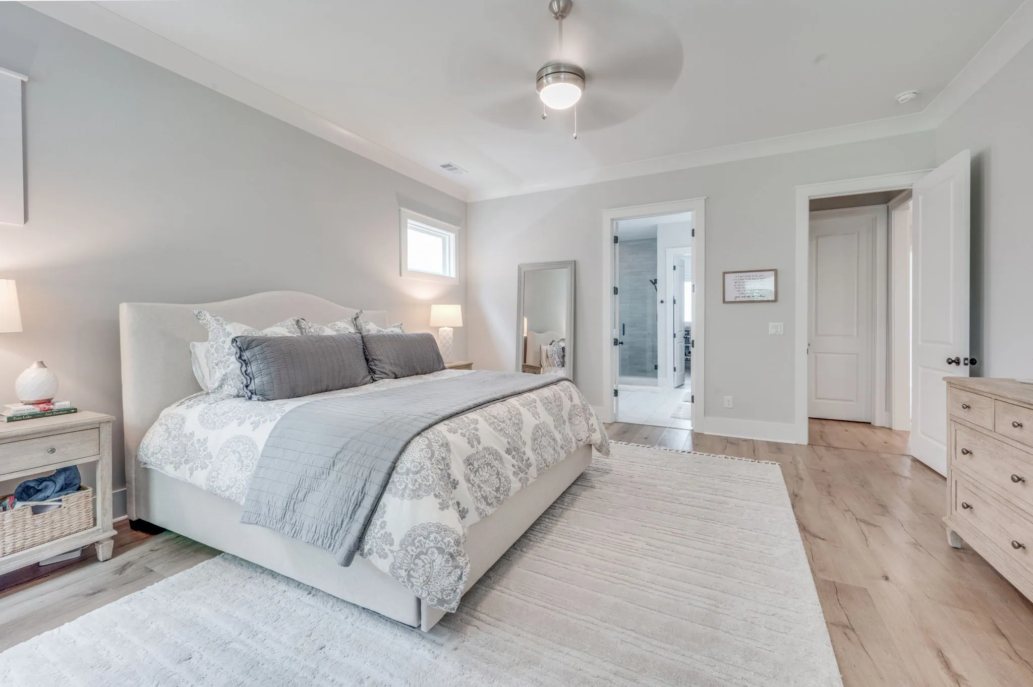 A welcoming foyer and custom drop zone anchor the entry and kitchen areas, offering both style and function. Upstairs, a spacious bonus room provides flexible living space, while two bedrooms share a Jack & Jill bath. A third upstairs bedroom and full bath are ideal for guests. The primary suite is a true retreat, featuring a fully built-out Elfa closet system for maximum storage and organization. Designer light fixtures elevate every room, adding just the right finishing touch.