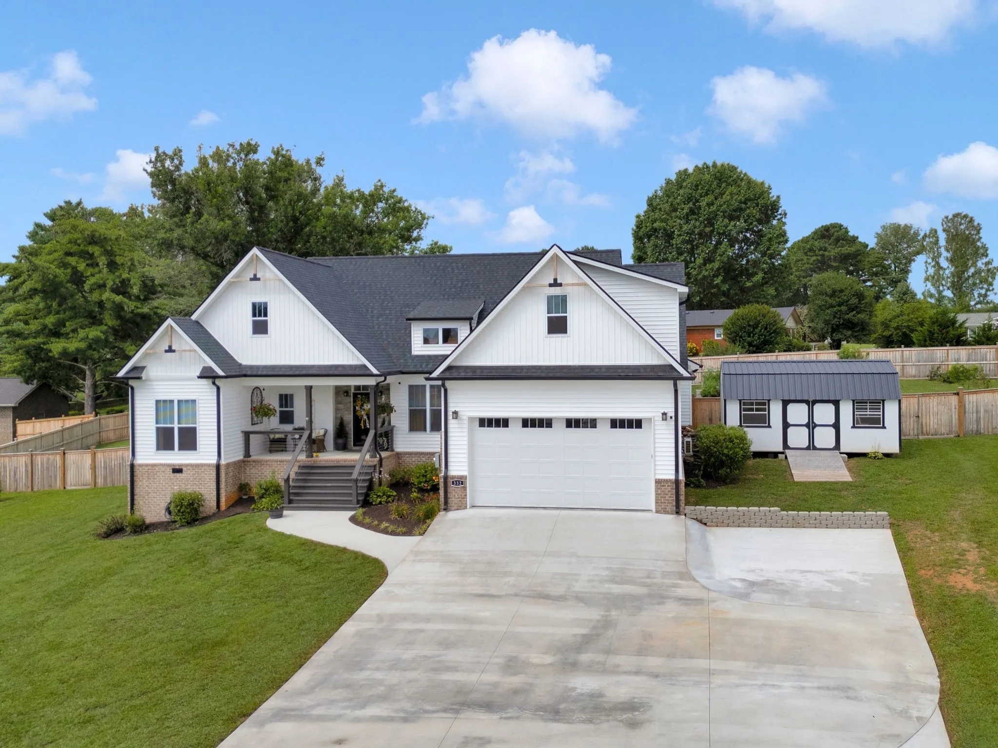 This home checks all the boxes! Welcome to 332 Country Club Rd in Winchester, TN, a modern home offering upscale living space in a convenient location. The home has just over 2,000 sq. ft. of living space. Upon entry through the front door, you will find an open living concept and chef’s kitchen with stainless steel appliances, custom cabinetry, and stone countertops. The main level has a split bedroom floorplan with TWO impressive master suites and laundry room on one side and two guest rooms and guest bath on the other. The backyard is primed for entertaining with a nice covered back porch and fully enclosed privacy fence. There is plenty of room at this property for your toys with a driveway big enough for your RV or boat and a storage building for your yard tools. This home is in a prime location in Winchester, just about a mile from the historic downtown square where you will find great restaurants and shopping boutiques. It is also less than 1/2 mile from the Franklin County Golf & Country Club where you can enjoy a round of golf or a day at the pool for a modest membership fee as well as the Templeton walking paths within walking distance of your home. All furniture, golf cart, and mower can be negotiable with the right price.