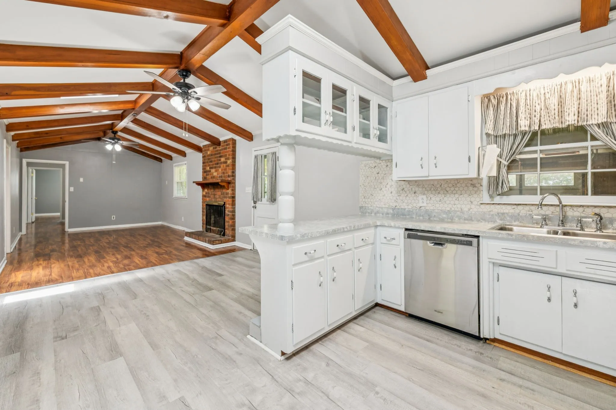 All offers due Sunday by 8pm. Save up to 1% of your loan amount as a closing cost credit when you use seller’s suggested lender! Welcome home to this beautifully maintained one-level, all-brick ranch nestled on a picturesque corner lot with mature trees in the heart of Gallatin. Enjoy the convenience of being just minutes from all the shopping, dining, and amenities the area has to offer, with easy interstate access and less than an hour from downtown Nashville. Freshly painted throughout, this home offers 3 spacious bedrooms and 2 full bathrooms, featuring brand-new bathroom fixtures, updated plumbing with PVC, and new water lines. The HVAC and roof are only 5 years old, offering comfort and reliability for years to come. Step inside to a welcoming entry foyer that opens to a flexible space—perfect for a home office, playroom, or den. The large living area boasts a cozy brick fireplace and charming wood beam ceilings, creating a warm and inviting atmosphere. The spacious kitchen offers ample cabinetry, stunning countertops, and stainless steel appliances—all included with the home. Just off the main living area, you’ll find a large laundry room for added convenience. Step outside to your private covered back patio—ideal for relaxing or entertaining. Additional features include a rear-entry one-car garage and a spacious storage building for all your tools and toys. Don’t miss this move-in ready gem with timeless character and modern updates—all in an unbeatable location!