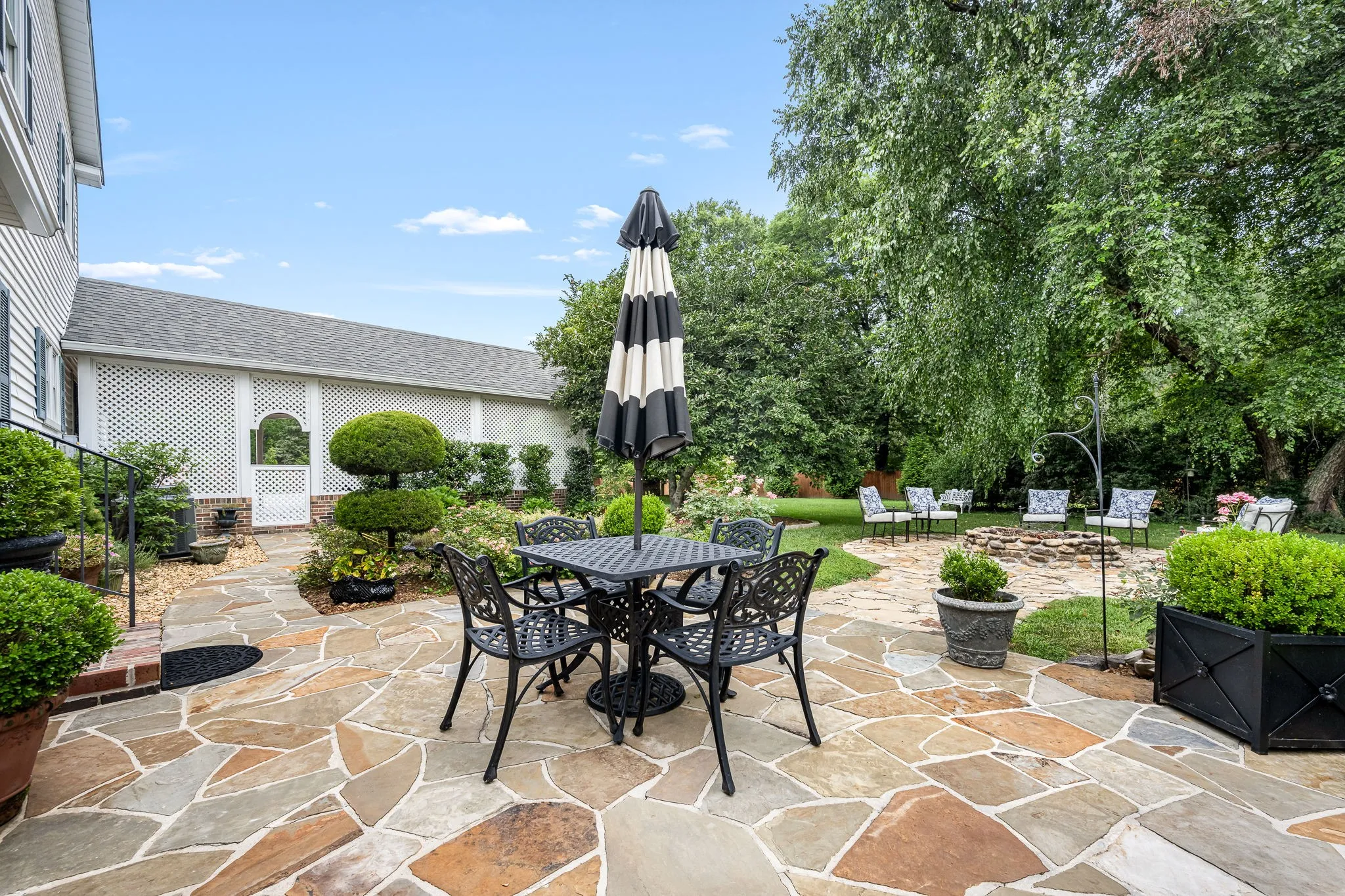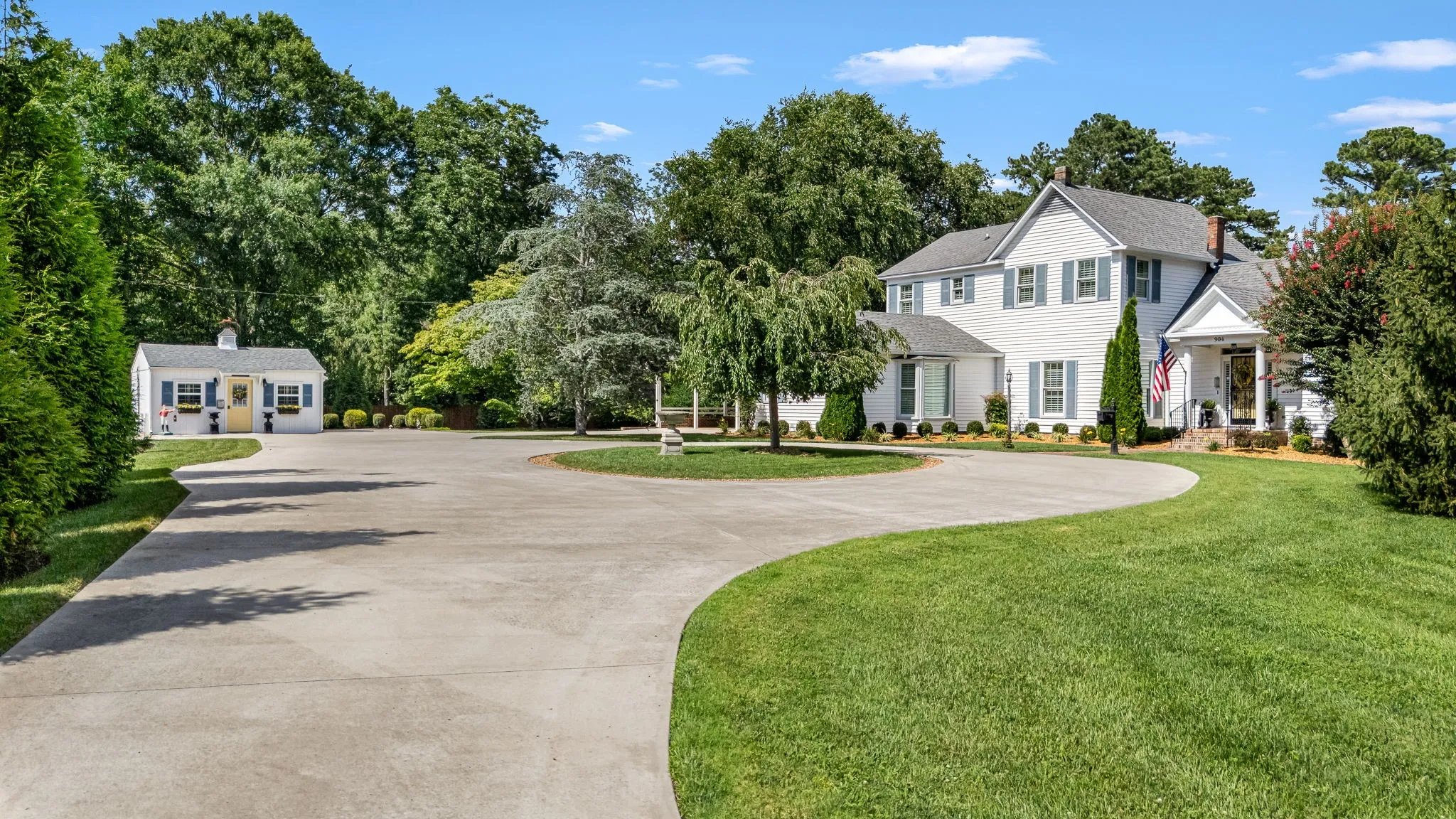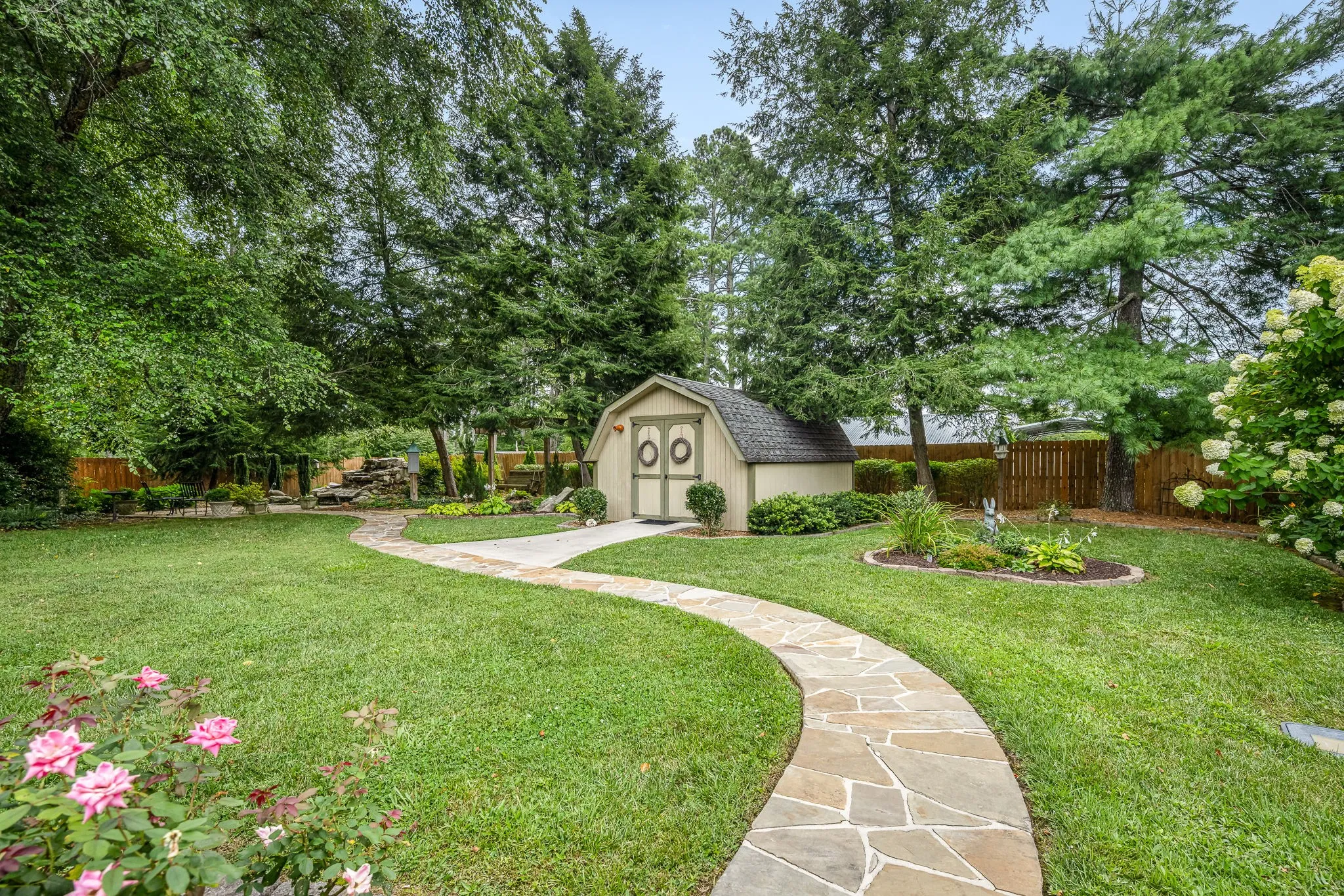 Rare opportunity! Discover this one-of-a-kind cottage-style home nestled on 2.76 serene acres with a park-like setting. Overflowing with character and timeless charm, this property offers a truly peaceful retreat just minutes from town. Step inside to find gorgeous hardwood flooring throughout the main level, plantation shutters, and a cozy den complete with built-in bookcases. The spacious kitchen features a beautiful brick arch, adding warmth and architectural interest. The main-level primary suite provides convenience and comfort, while a large screened-in porch invites you to relax and take in the tranquil views year-round. Step outside and enjoy the beautifully landscaped backyard oasis, featuring a stunning waterfall koi pond, fire pit area, and a large patio—perfect for entertaining family and friends. A detached, climate controlled 327-square-foot “cottage” offers endless possibilities for a home office, studio, or guest suite. Additional features include a three-car carport and a basement/storm shelter located underneath the screened porch for extra peace of mind. Don’t miss your chance to own this truly special property full of charm, privacy, and endless possibilities!