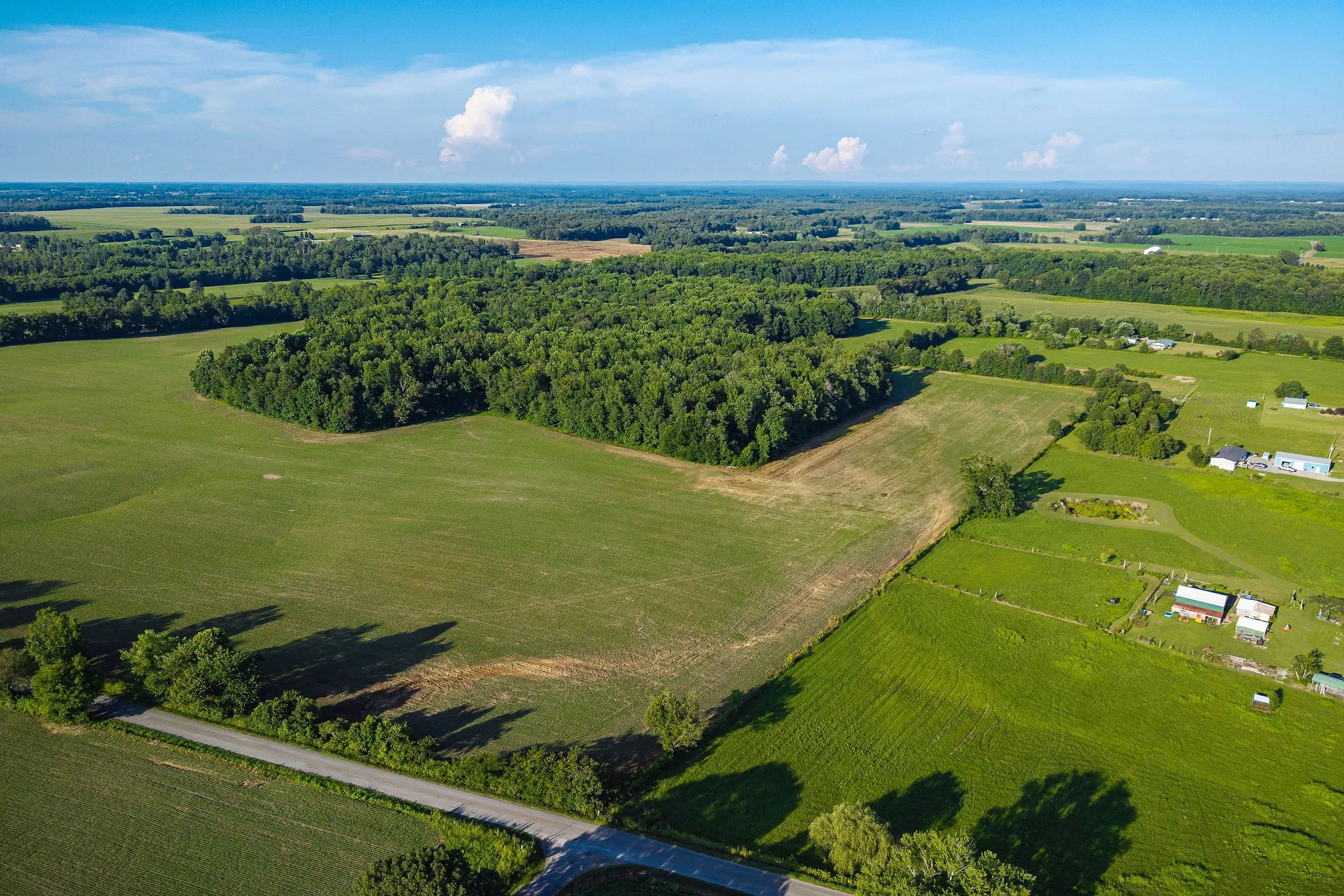 Over 2,100 feet of road frontage and a prime location just outside of town make this property an excellent opportunity. Currently used as crop land, it offers a beautiful mix of open ground and woods with stunning views. Buy the entire tract or purchase a smaller section—tracts can be surveyed off with a minimum of 5.01 acres each. Smaller tracts will be located at the south end, running from the road to the back property line. All utilities are available at the road, and the property is restricted to site-built homes only. Soil work will be the buyer’s responsibility, but the seller is open to that contingency in an offer.