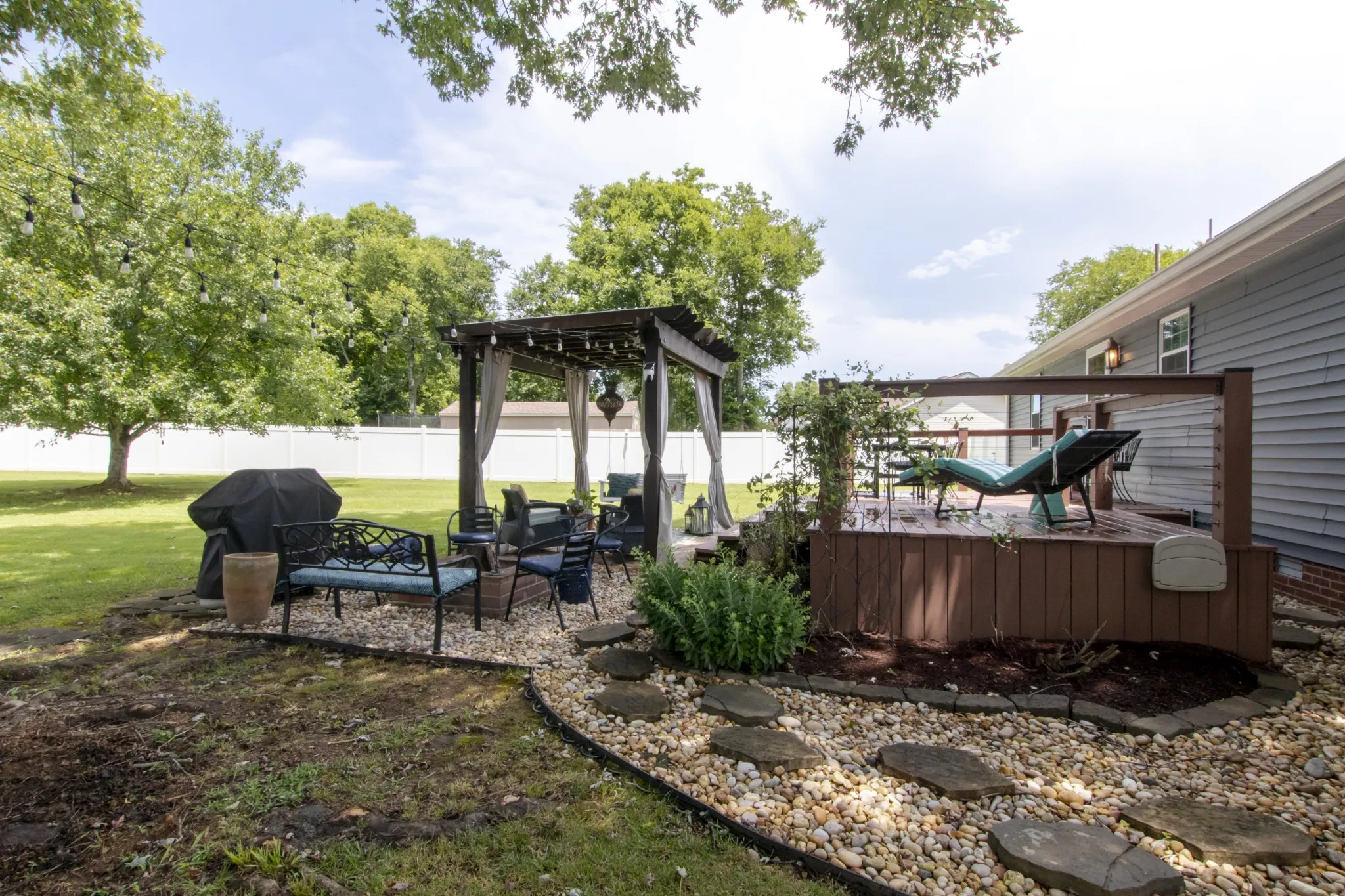 At the heart of the home, you’ll find a stylish kitchen with elegant new marble countertops, refinished cabinets and new lovely backsplash—perfect for both everyday living and entertaining. Step outside to a fully fenced backyard oasis, complete with an extended deck, new charming pergola, and cozy fire pit. Thoughtfully updated landscaping with accent lighting adds the perfect finishing touch for relaxing evenings or weekend gatherings.