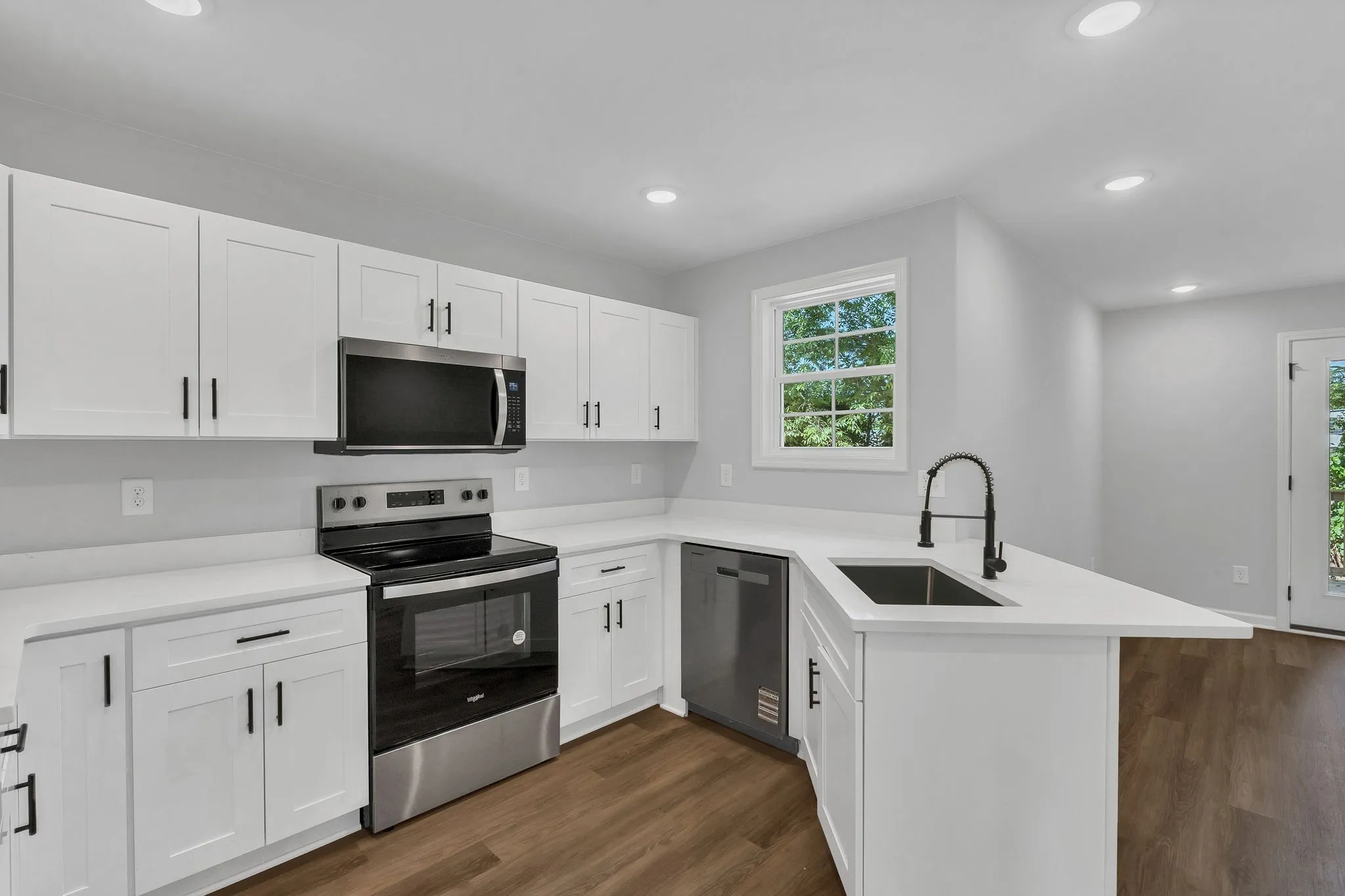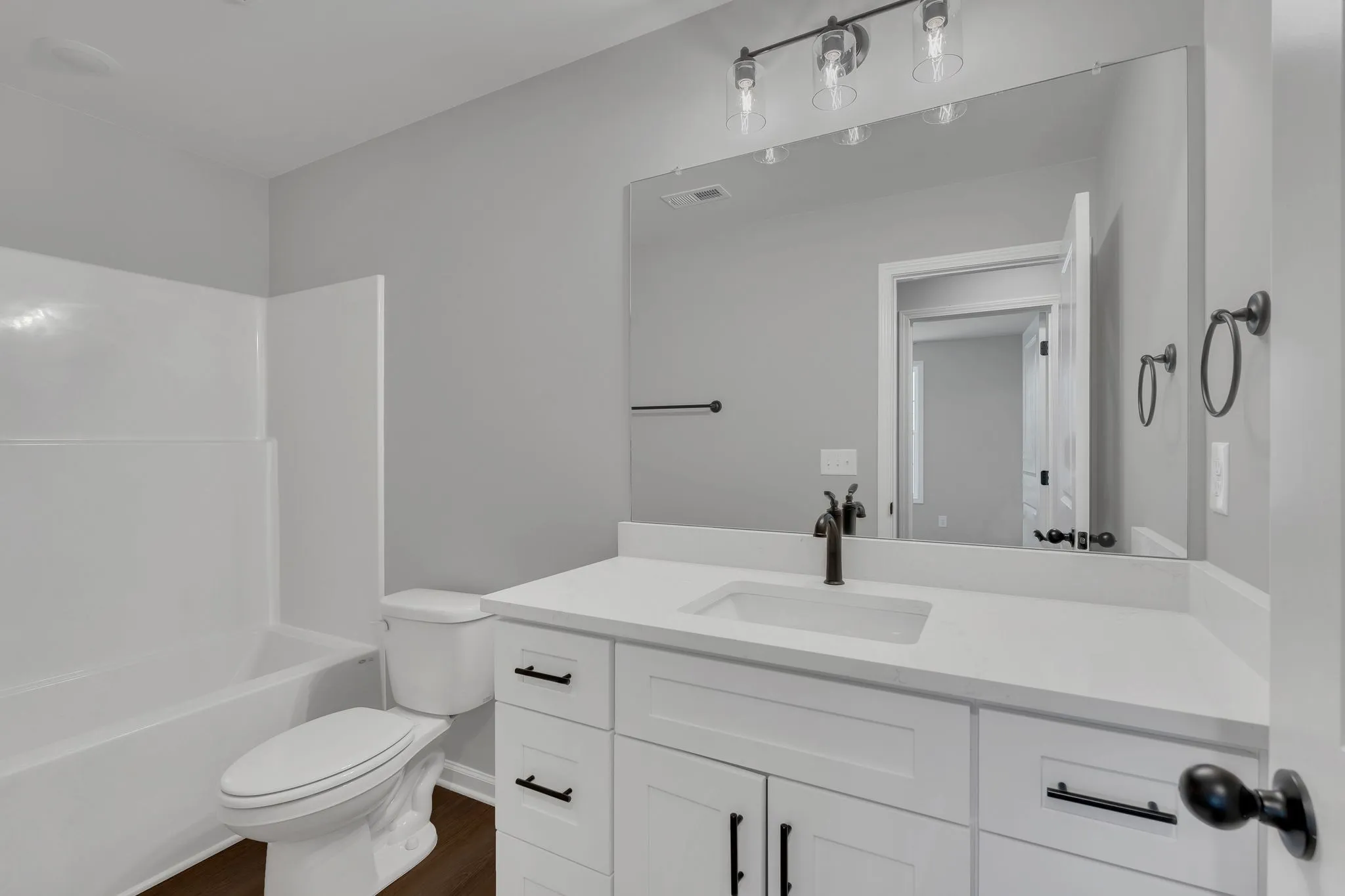 This stylish and thoughtfully designed BRAND NEW home offers a spacious and functional layout ideal for comfortable living. The open-concept seamlessly connects the living, dining, and kitchen areas with ease. The kitchen is equipped with white shaker cabinets, quartz countertops, and coordinating matte black finishes, continuing the home’s cohesive and clean design. Upstairs, the primary suite features a generously sized walk-in closet with ample room for both his and hers wardrobes. The ensuite bathroom includes quartz countertops and modern matte black finishes. The versatile upstairs laundry room with extra space for storage is designed for convenience. Additional amenities enhance everyday convenience, including a half bath on the main level, multiple linen and coat closets, and a one-car garage w/