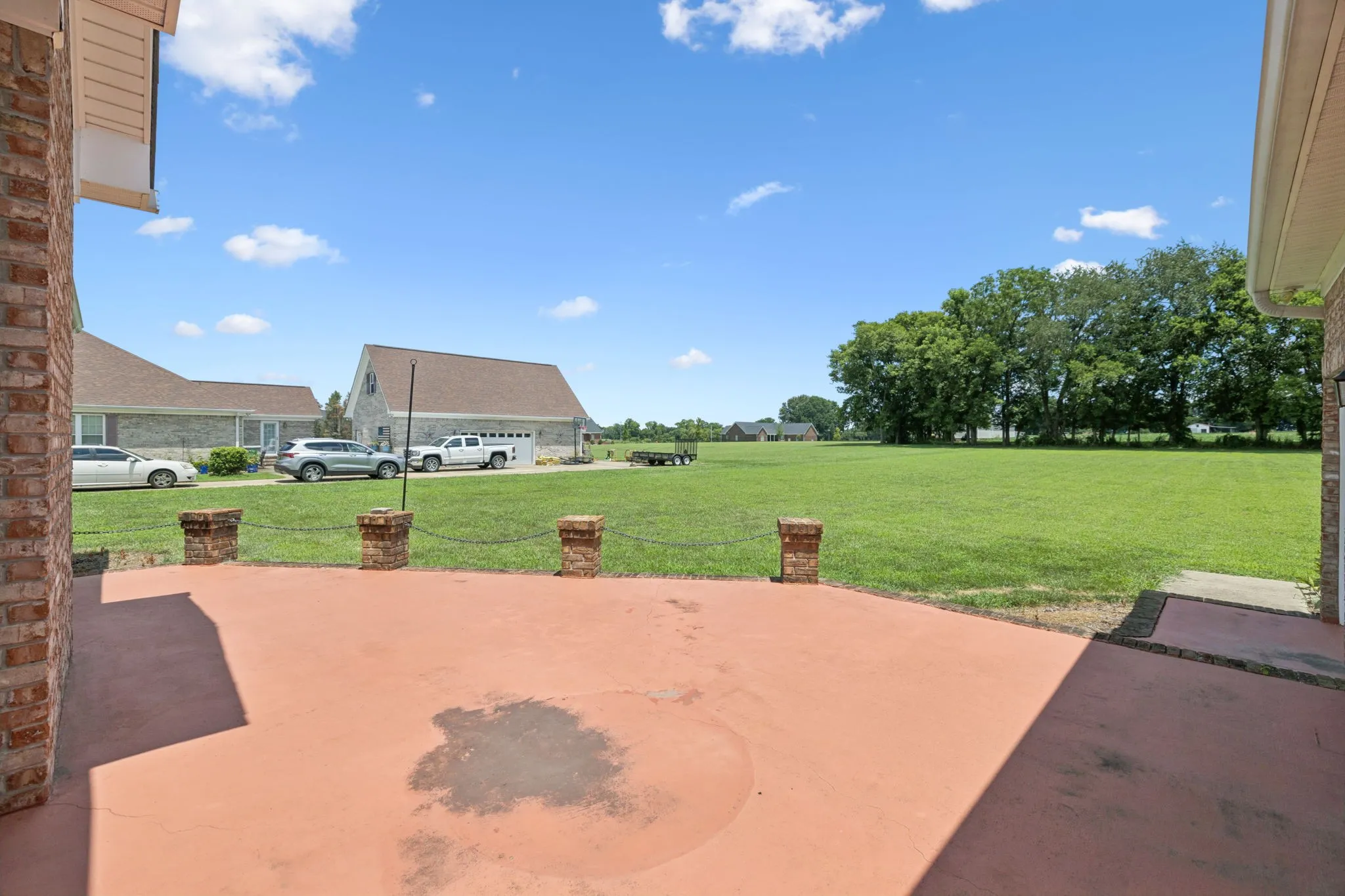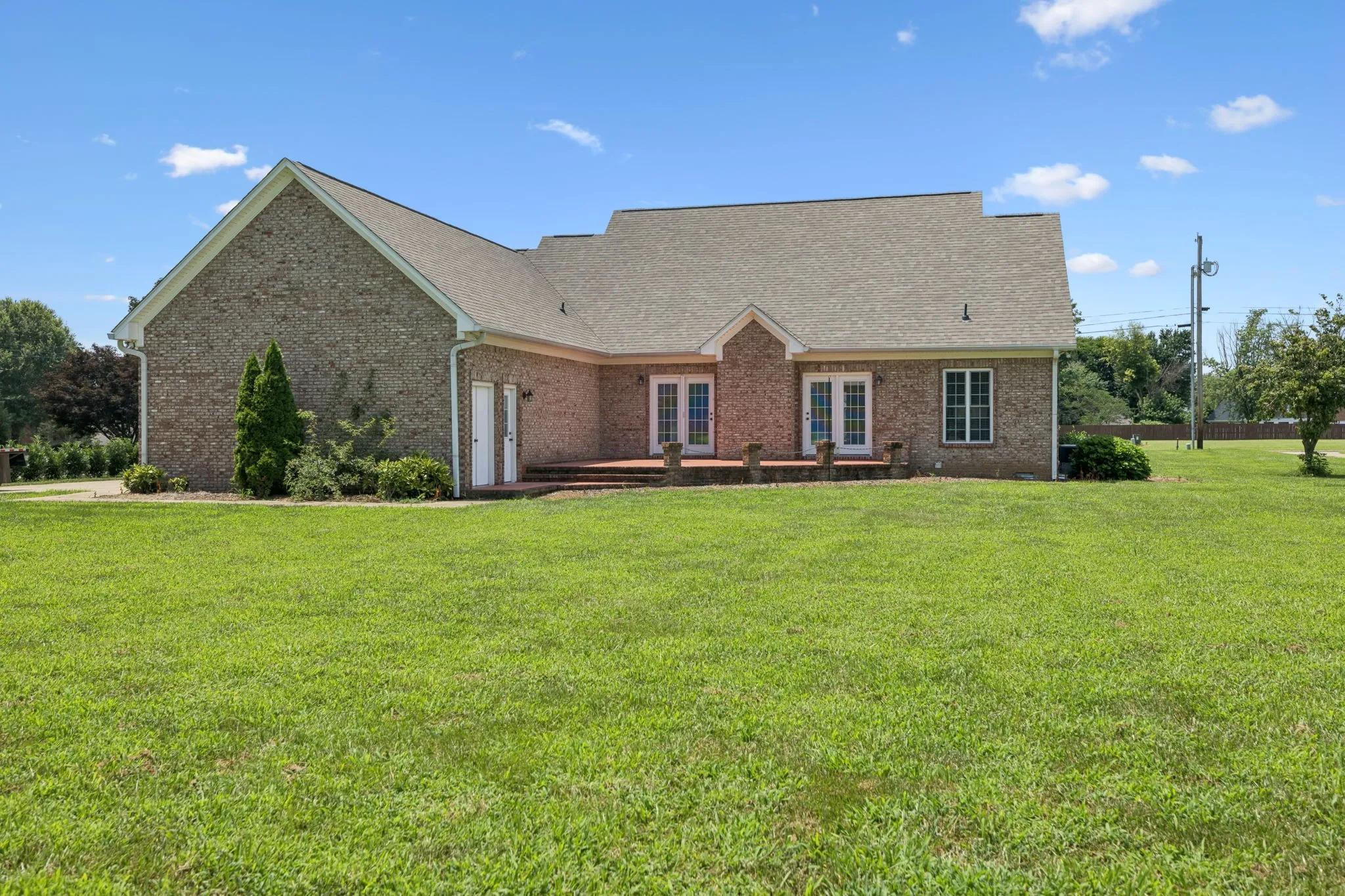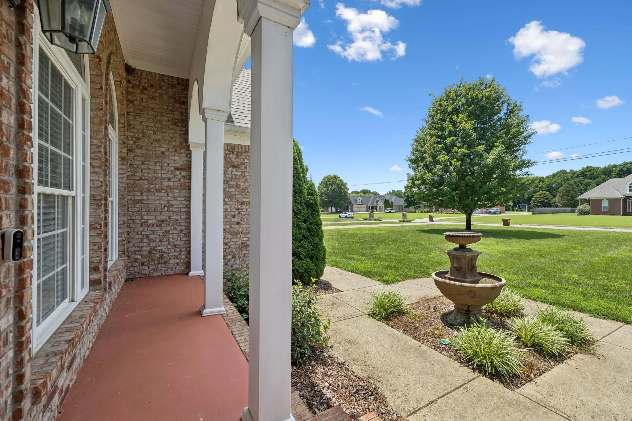 Price Improvement! This stunning all-brick, one-level home is set on a generous and level 1.25-acre lot, offering a peaceful and picturesque setting to enjoy every day. A charming fountain and arched front porch welcome you inside, where a spacious foyer opens into the living room featuring a vaulted ceiling, cozy fireplace, and double windowed doors that lead to the back patio and expansive backyard.