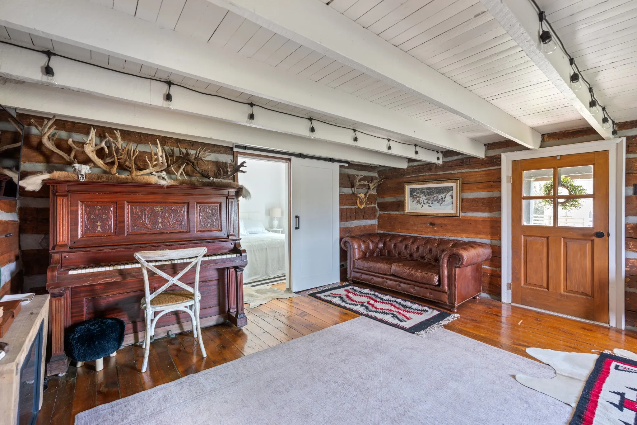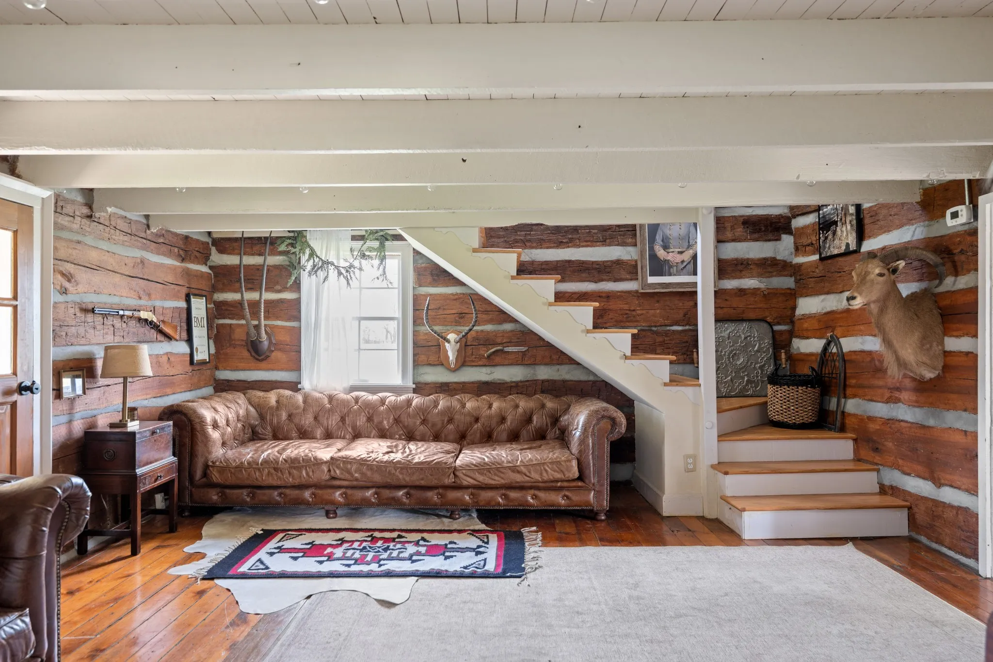 Discover a rare gem in the heart of Leipers Fork—a stunning 15.79-acre estate steeped in Tennessee history. At its center lies an 1865 cabin, blending historic charm with modern comforts. This cozy one-bedroom, 1.5-bath retreat features a full kitchen, living room, laundry, and upstairs loft.