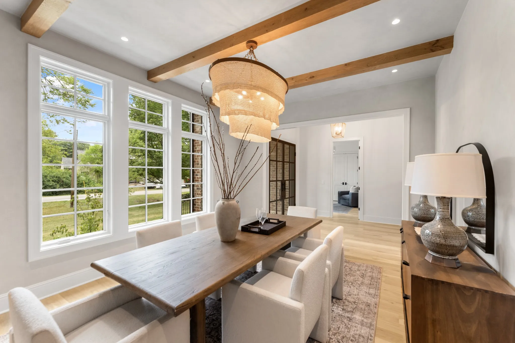 The main-level primary suite serves as a tranquil retreat, enhanced by natural wood beam accents and a spa-inspired en suite bath. Upstairs, you’ll find well-appointed secondary bedrooms, two versatile bonus rooms—including one with a wet bar—and a secondary laundry room for added convenience.