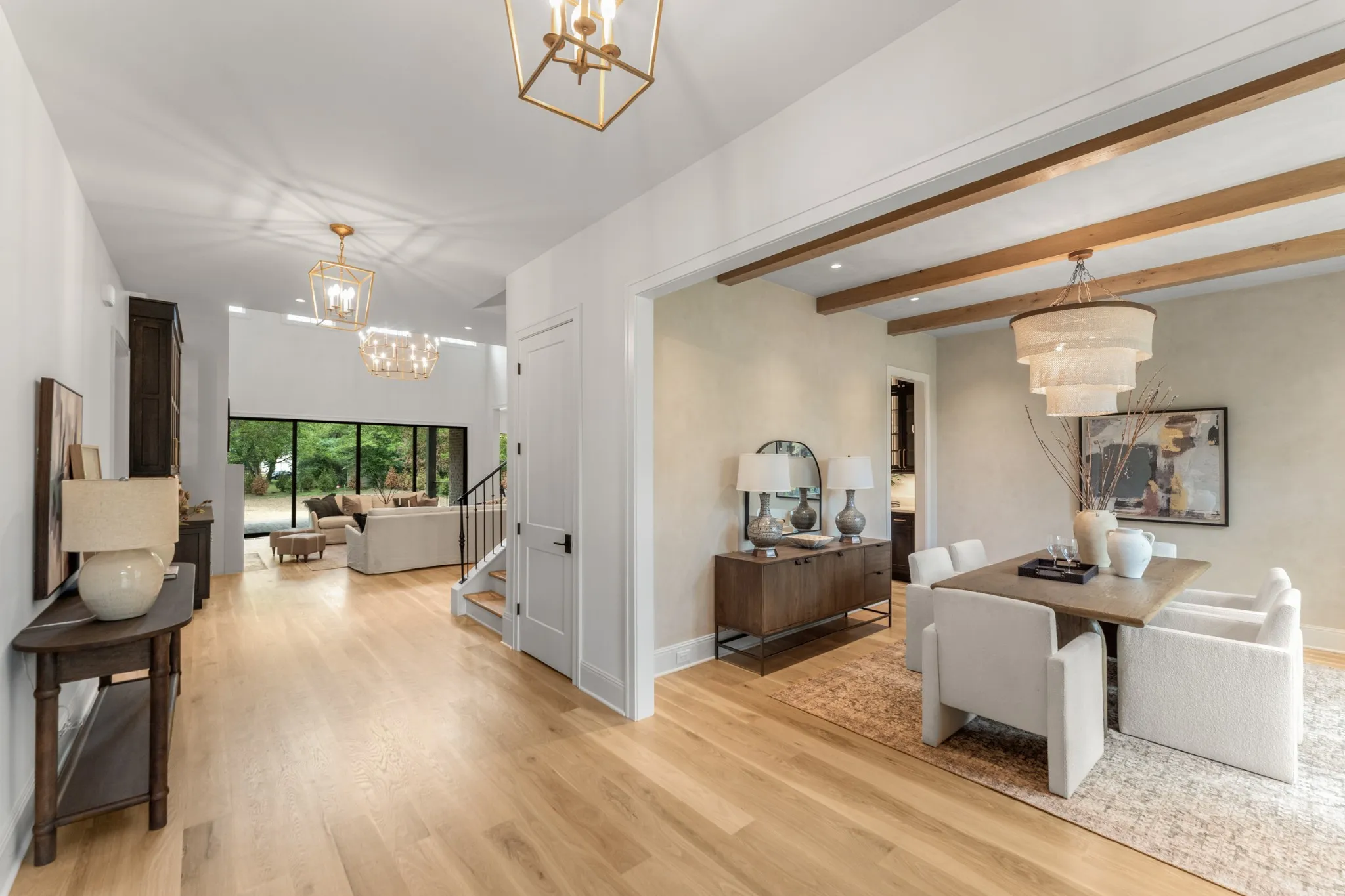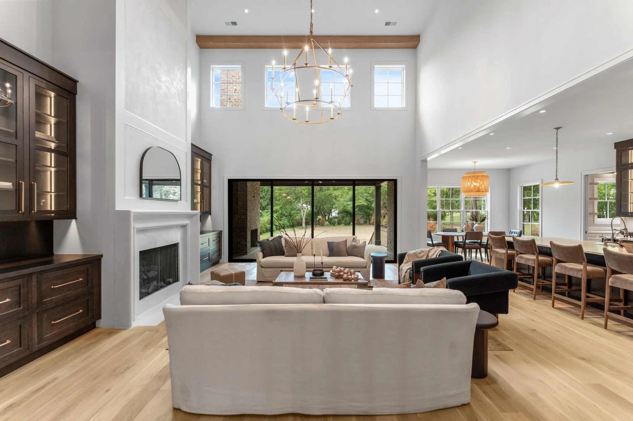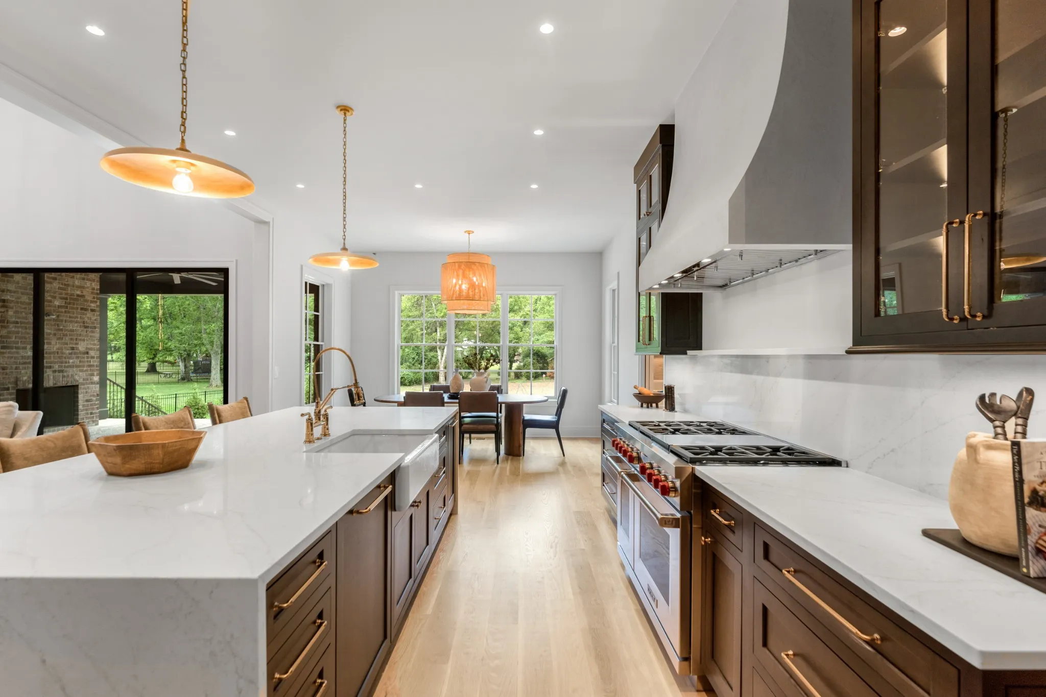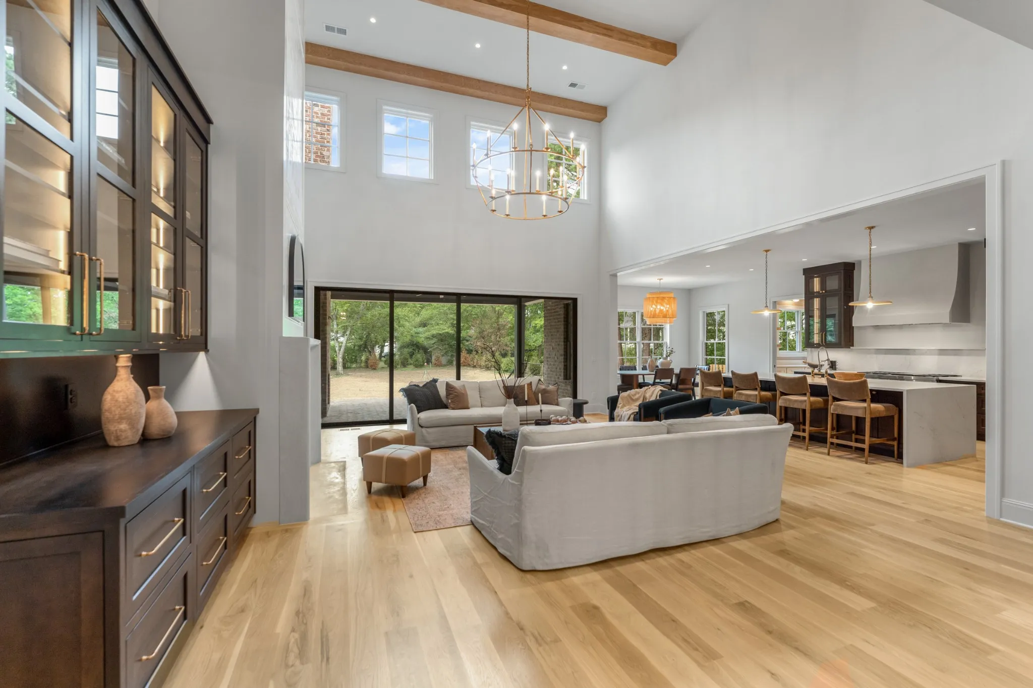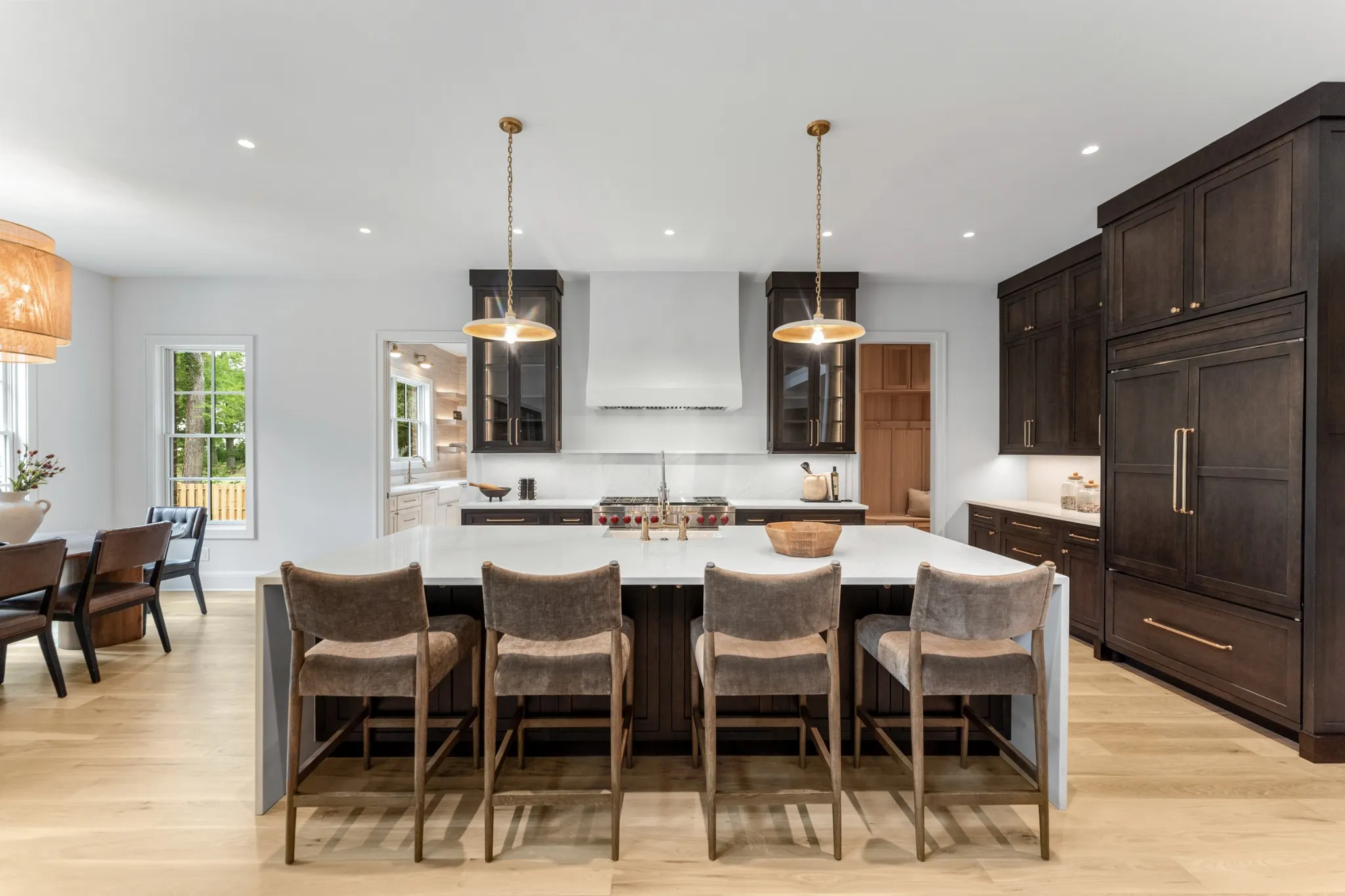Thoughtfully crafted with an open and functional layout, the home offers a seamless flow that balances spaciousness with warmth. At its center lies a chef’s kitchen designed for effortless entertaining, featuring Sub-Zero refrigeration, a Wolf gas range, a prep kitchen, and a large walk-in pantry. Expansive stacking patio doors open to the backyard, creating an ideal indoor-outdoor living experience for relaxed gatherings or quiet afternoons.