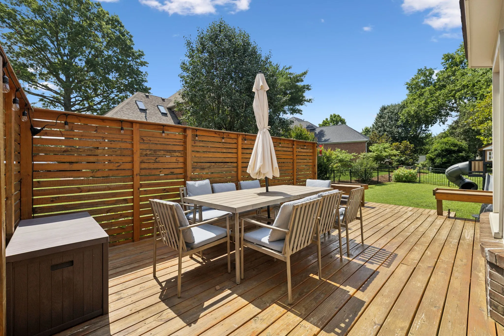 Located on a corner lot at the end of a cul-de-sac in Riverbend, this charming 5-bedroom home offers space, privacy, and thoughtful updates throughout. Enjoy fresh landscaping, a large deck with privacy wall, and a fully enclosed backyard with 4′ aluminum fencing and a large playset—ideal for outdoor living and entertaining. The covered front porch adds to the home’s welcoming curb appeal. Inside, you’ll find a spacious living room with a gas fireplace, a formal dining room, and an eat-in kitchen featuring abundant cabinet space and a charming bay window. The fifth bedroom above the garage has its own private stairwell, making it perfect for a guest suite, in-law setup, or home office. Interior updates include fresh paint throughout—including trim and doors—plus newer vinyl flooring and upstairs carpet, all completed within the past year. This home combines modern comfort with timeless style in a prime Murfreesboro location, within the highly desirable Siegel school zone. Schedule a showing TODAY!