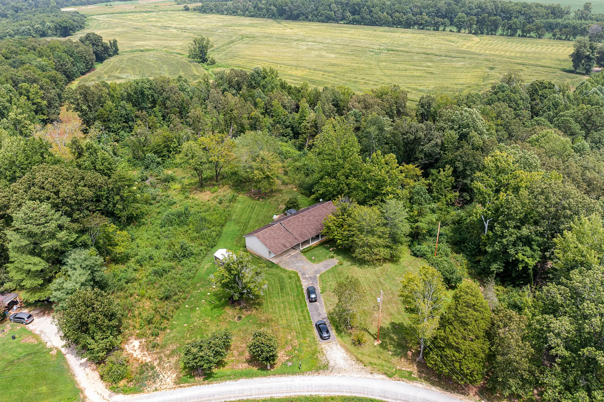Experience serene country living with this private and spacious property! Nestled on 8.5 beautiful wooded acres, this home offers a cozy and peaceful retreat. The finished basement features poured walls, an additional kitchen, bedroom and a playroom, perfect for extra living space. The main floor boasts an open floor plan, ideal for gatherings. A large garage/workshop provides ample space for hobbies and storage. For peace of mind, an installed storm shelter accommodates up to 8 people. A brand new shed that is wired for electrical, that could be finished to be a tiny home. Relax on the expansive concrete front porch, perfect for a swing to enjoy the surrounding wildlife. There’s also a lovely patio accessible through the basement’s French doors. Don’t miss this opportunity to call this house “HOME ” call me today for your private showing!