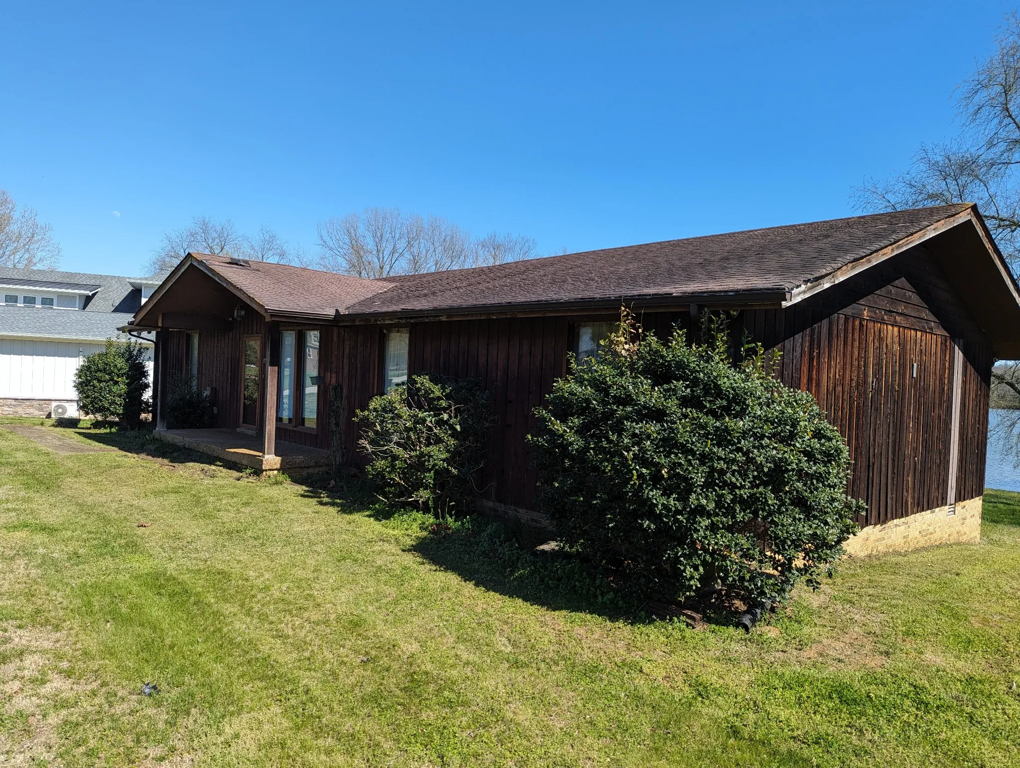 Dock permit active. Great for the boat and Ski-Doos .Beautiful lake view. This homes yard backs up to the lake water on level ground. Perfect to rebuild larger new Home or Fixer upper . Sold “AS IS” . Lake Home property is rare. Docks are rare now days.