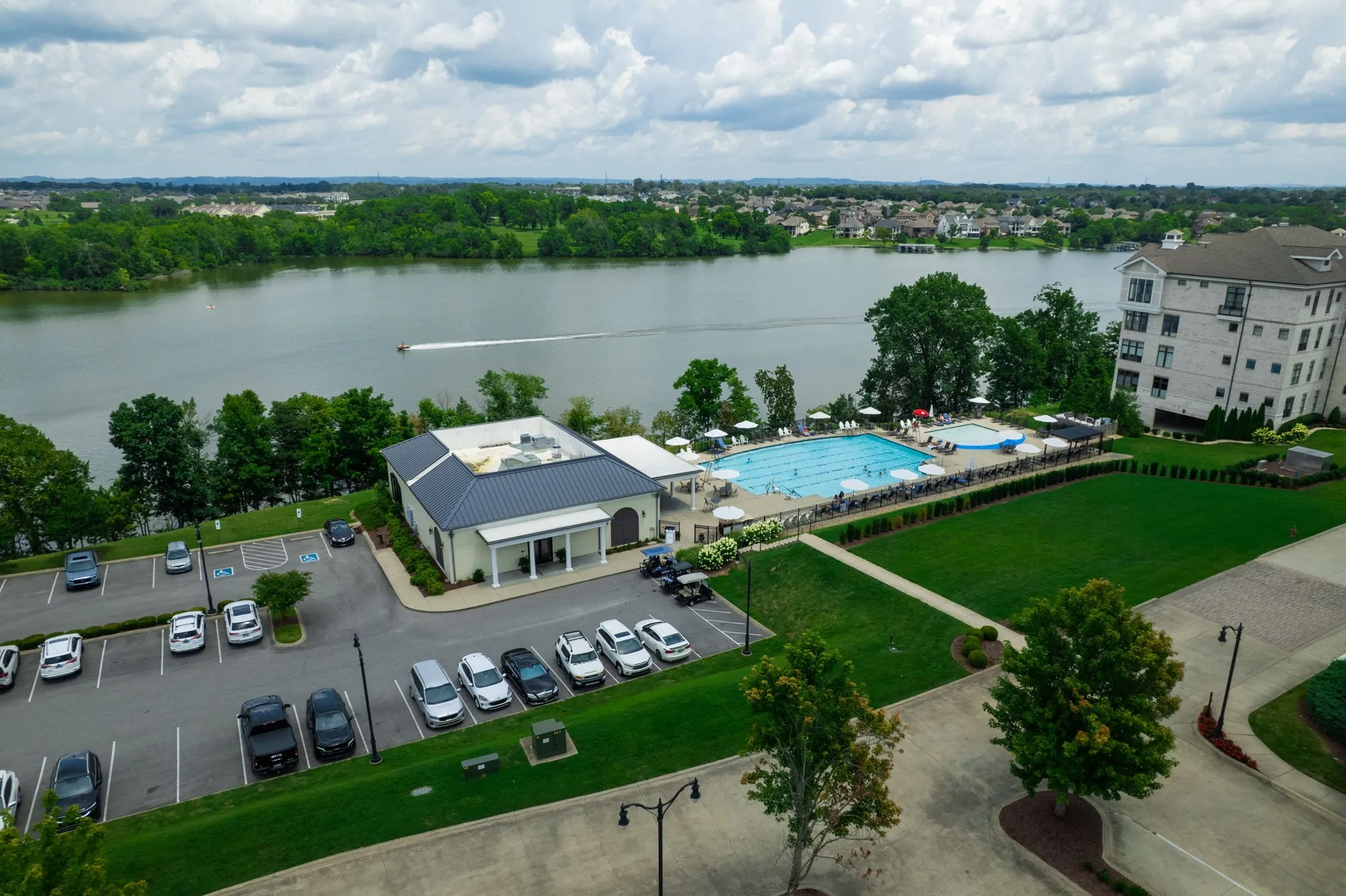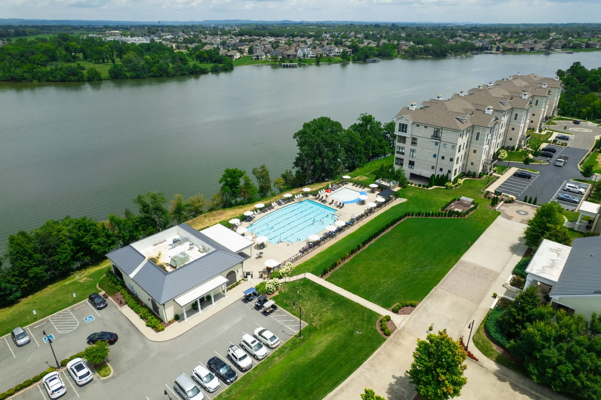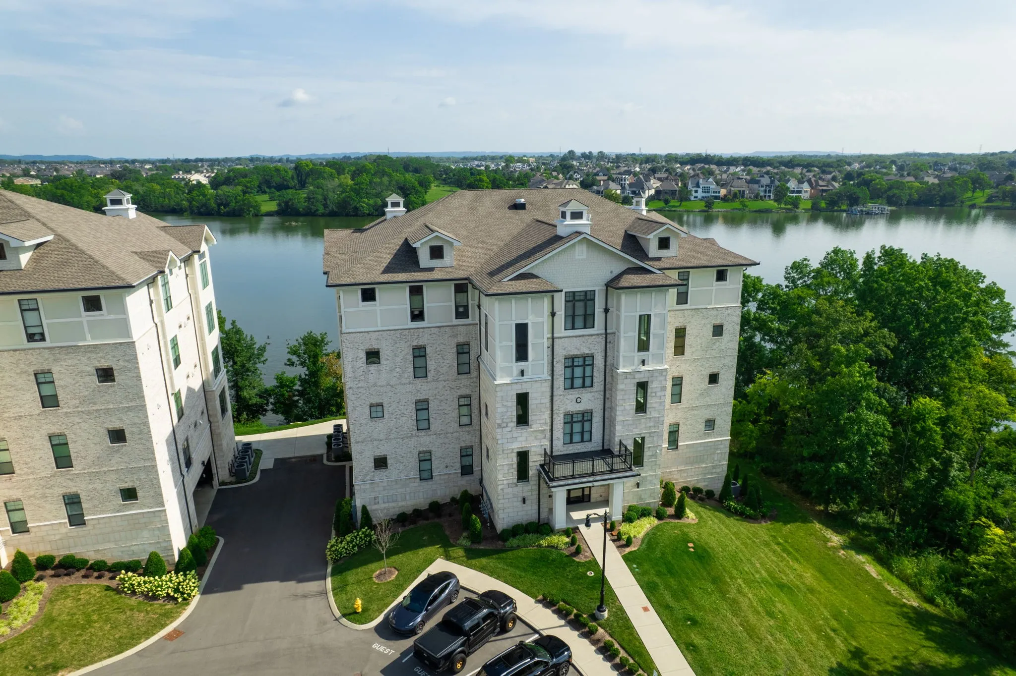 Welcome to the pinnacle of elegance and ease—a rare opportunity to own the only luxury waterfront condo in Sumner County. Spanning 3300+ square feet, this exquisite 3-bedroom, 2.5-bath residence offers breathtaking panoramic lake views from your living room, kitchen and Master- it’s framed by tall ceilings and expansive windows that flood the space with natural light. The heart of the home is a chef’s kitchen equipped with premium appliances, smart home technology, and a built-in Miele espresso machine that conveys. Whether you’re entertaining or enjoying quiet mornings, this space delivers. Step out onto two private balconies, the main balcony is outfitted with automated tech-touch blinds and built-in heaters, creating a year-round retreat. The primary suite features heated floors, a custom-built closet, soft motion-sensor lighting and spa-like finishes designed for ultimate comfort.