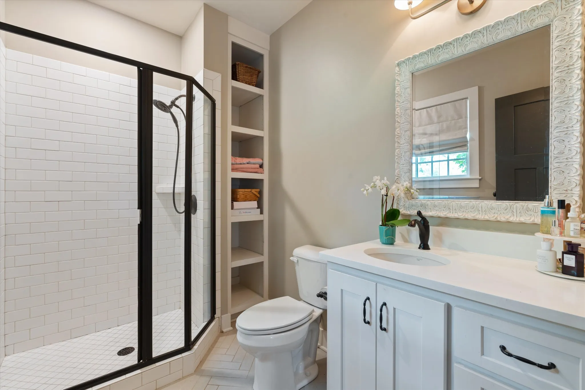 This 4,108 sq ft custom estate was thoughtfully designed with 3,478 sq ft on the main level, offering true one-level living. All bedrooms are located downstairs and each includes its own private en suite bath, making daily routines smooth and guest stays comfortable. The open-concept layout flows beautifully through the living, dining, and kitchen spaces, showcasing premium finishes, sand-and-finish hardwood floors, and zero carpet throughout.