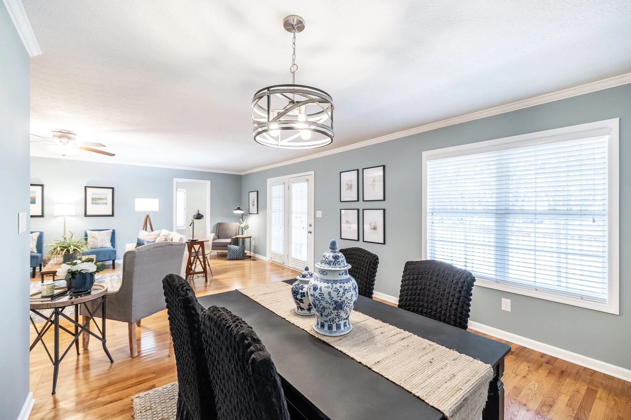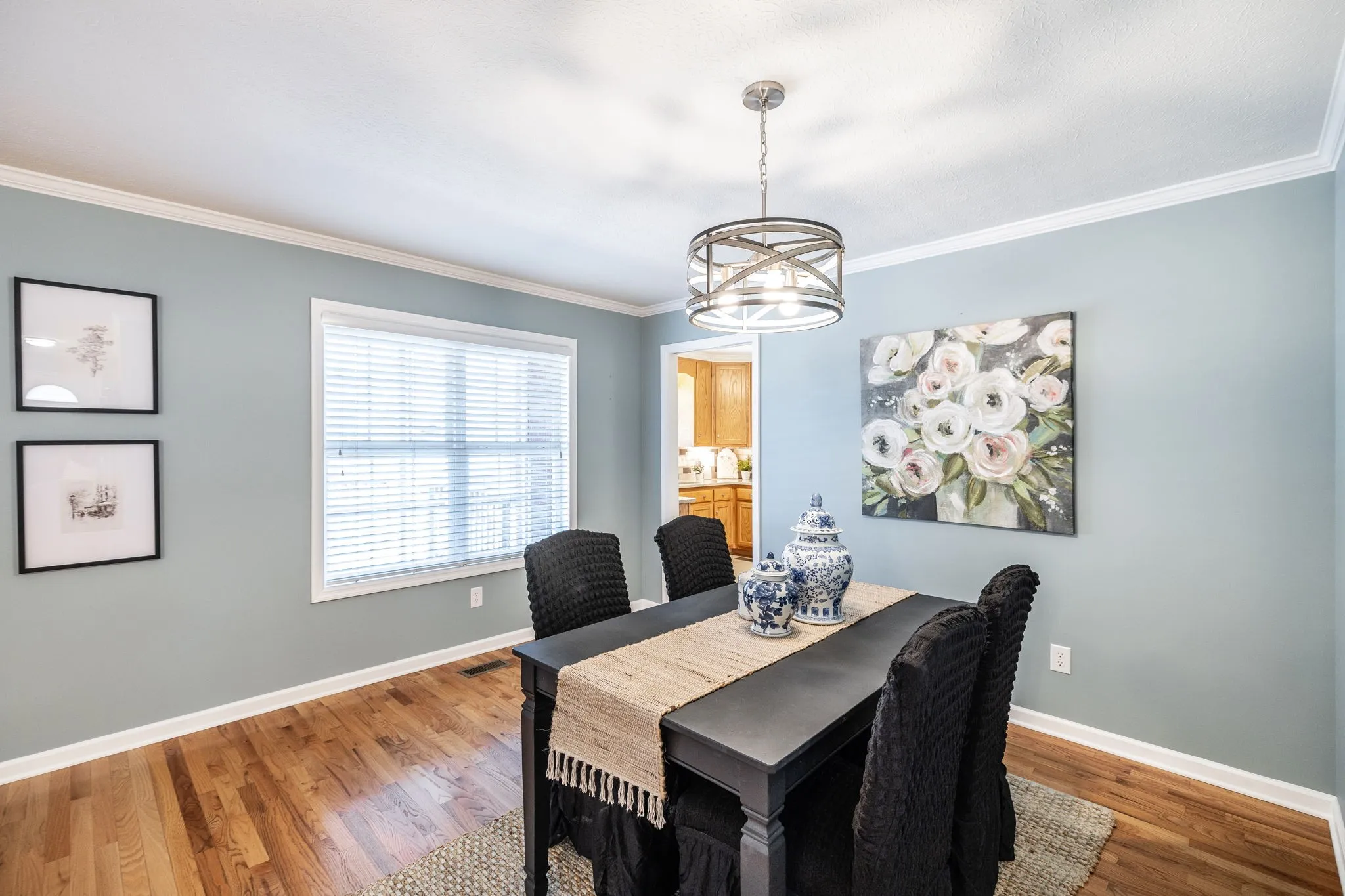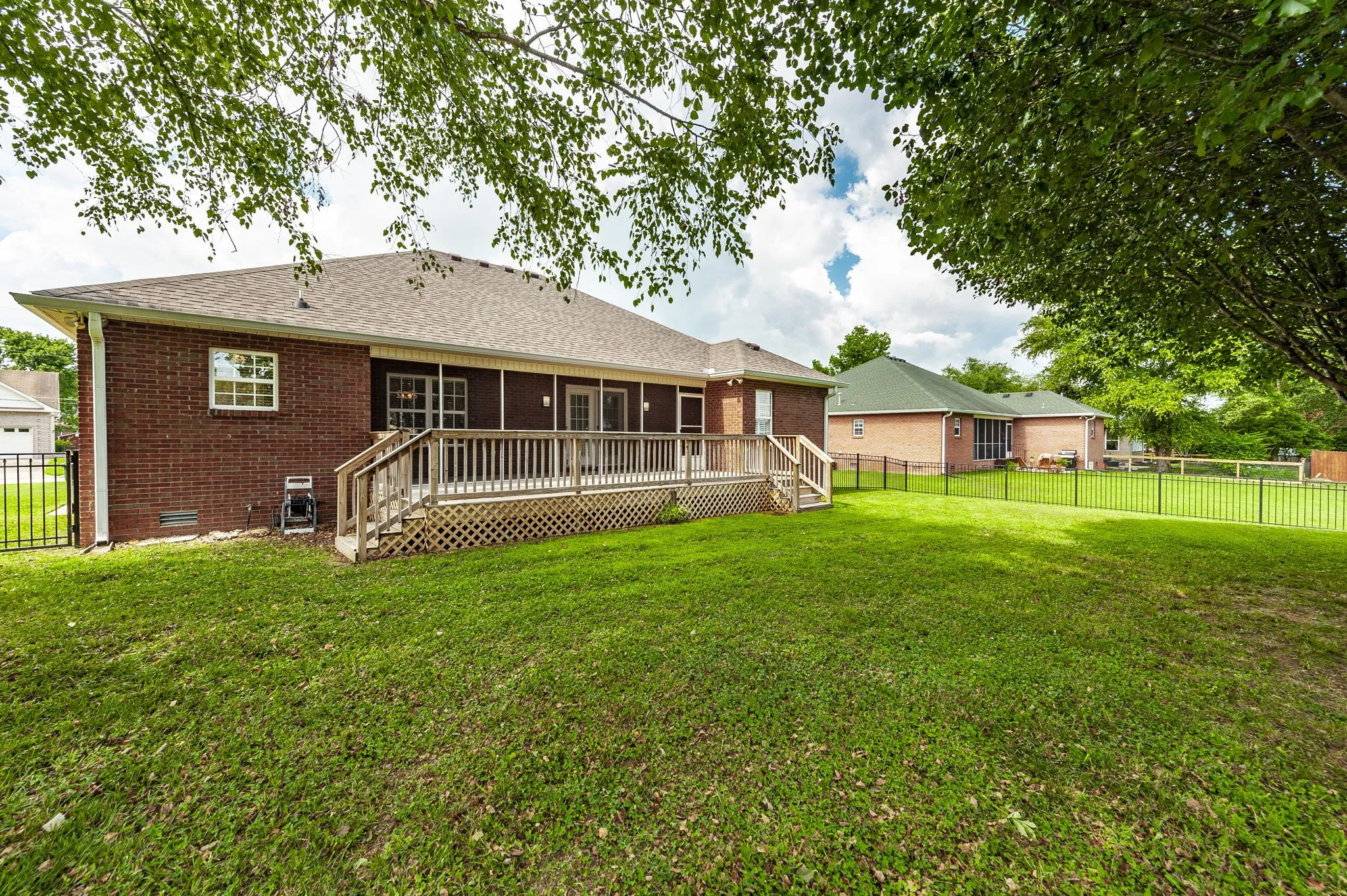 Charming one level home that has been meticulously maintained and freshly painted. The fabulous outdoor living area includes a screened in porch, large deck, and fenced backyard (aluminum fence installed in 2018). There are hardwood floors in the foyer, living room, dining room, and all bedrooms. New hot water heater in 2024, roof & gutters replaced in 2021, and HVAC replaced in 2022. The remodeled kitchen features granite counter tops, built-in buffet, tile backsplash, smooth-top oven, stainless-steel refrigerator, and stainless-steel sink. There is a large pantry located just off the kitchen in the utility room. Very open plan with the living room opening to the dining room, which makes this the perfect home for entertaining. Gas log fireplace is in the living room. Primary bedroom with a full bath with two walk-in closets plus a linen closet. There are 2” plantation shutters and 2” faux wood blinds throughout this home. The second and third bedrooms share a full bath.