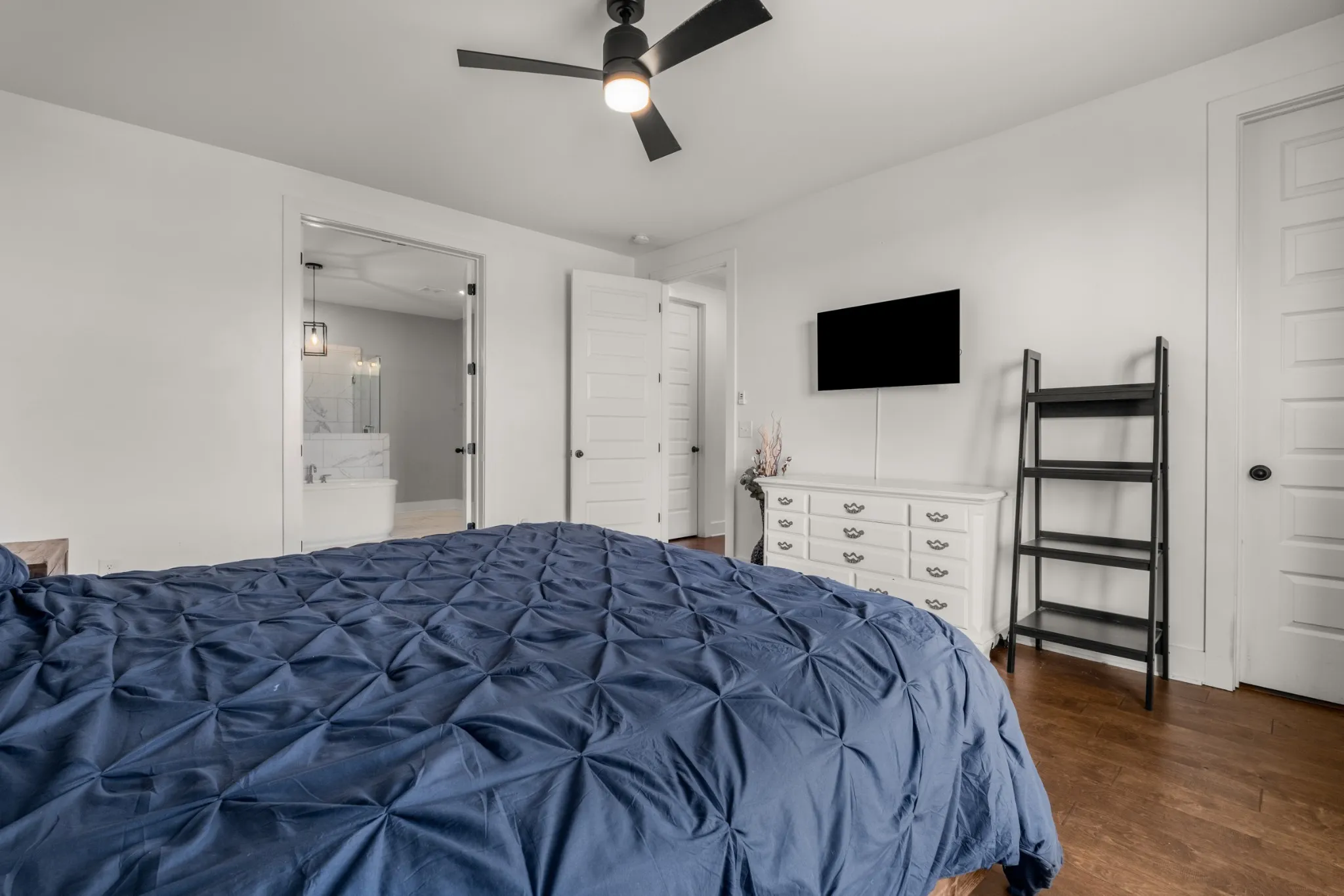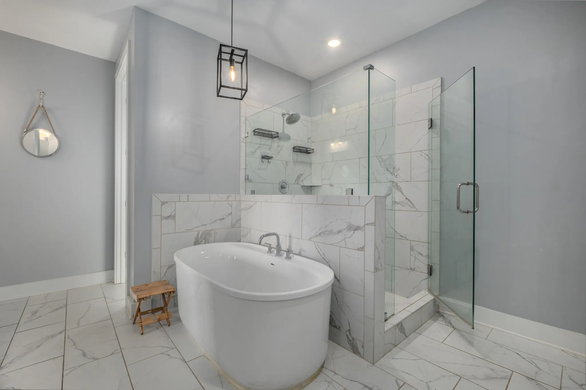Enjoy two bedrooms, two full baths, and a dedicated office on the main floor, plus two additional bedrooms, a full bath, a den, and a large rec room upstairs—perfect for guests or family fun. The primary suite is a true retreat with a spa-like bath featuring a custom walk-in tile shower, free-standing soaking tub, and a spacious walk-in closet.
