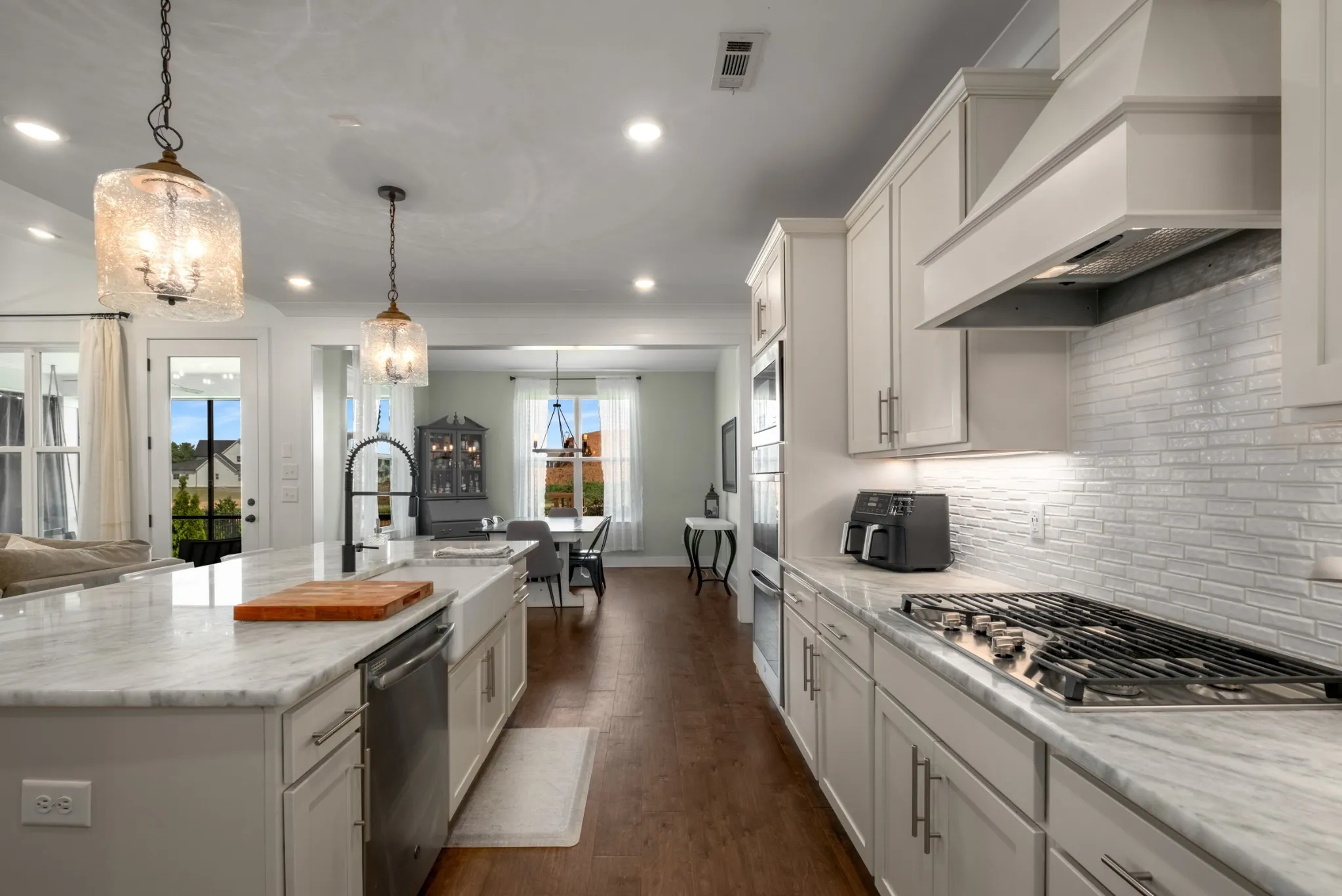Located in the coveted Shelton Square community, this stunning home sits on a spacious 0.37-acre lot and offers both luxury and functionality. The open-concept floorplan is filled with natural light from floor-to-ceiling windows and features a cozy fireplace in the living room. The gourmet kitchen boasts a large island, stainless steel appliances, double built-in ovens, a double fridge, and white cabinetry with a custom matching range hood.