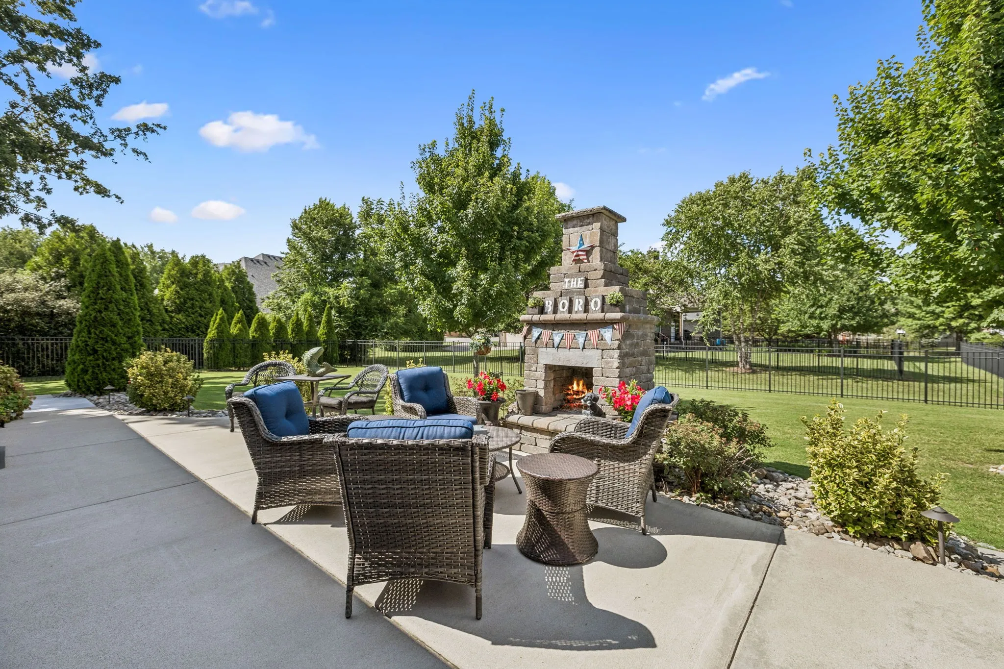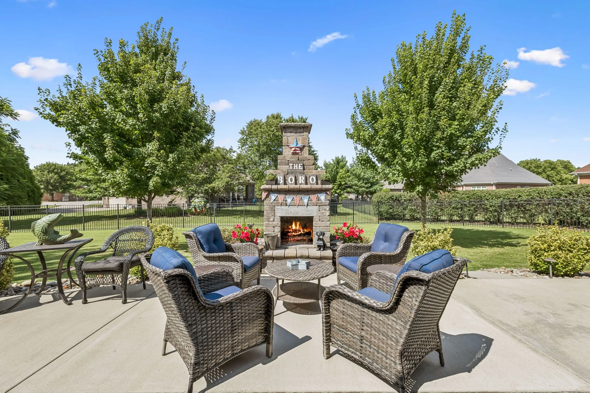 The exterior has been extensively improved with over $100,000 in upgrades. Enjoy a new roof, fenced backyard with fresh sod, extended concrete patio with outdoor fireplace, new driveway with sidewalks, and updated landscaping with lighting. Additional features include a new heat pump and a full security system.