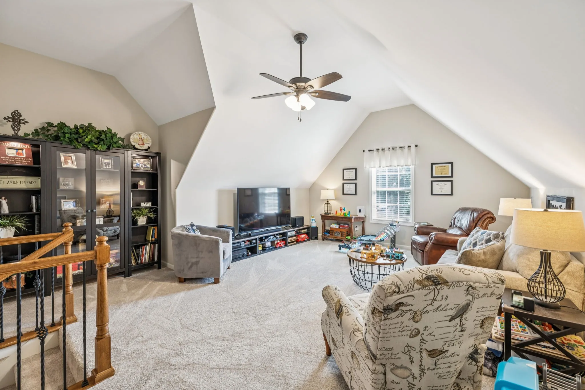 The main level offers two spacious bedrooms, including a private primary suite with a generous walk-in closet and an oversized bathroom designed for relaxation. Upstairs, you’ll find two additional bedrooms and a large bonus room—perfect for guests, hobbies, or movie nights.