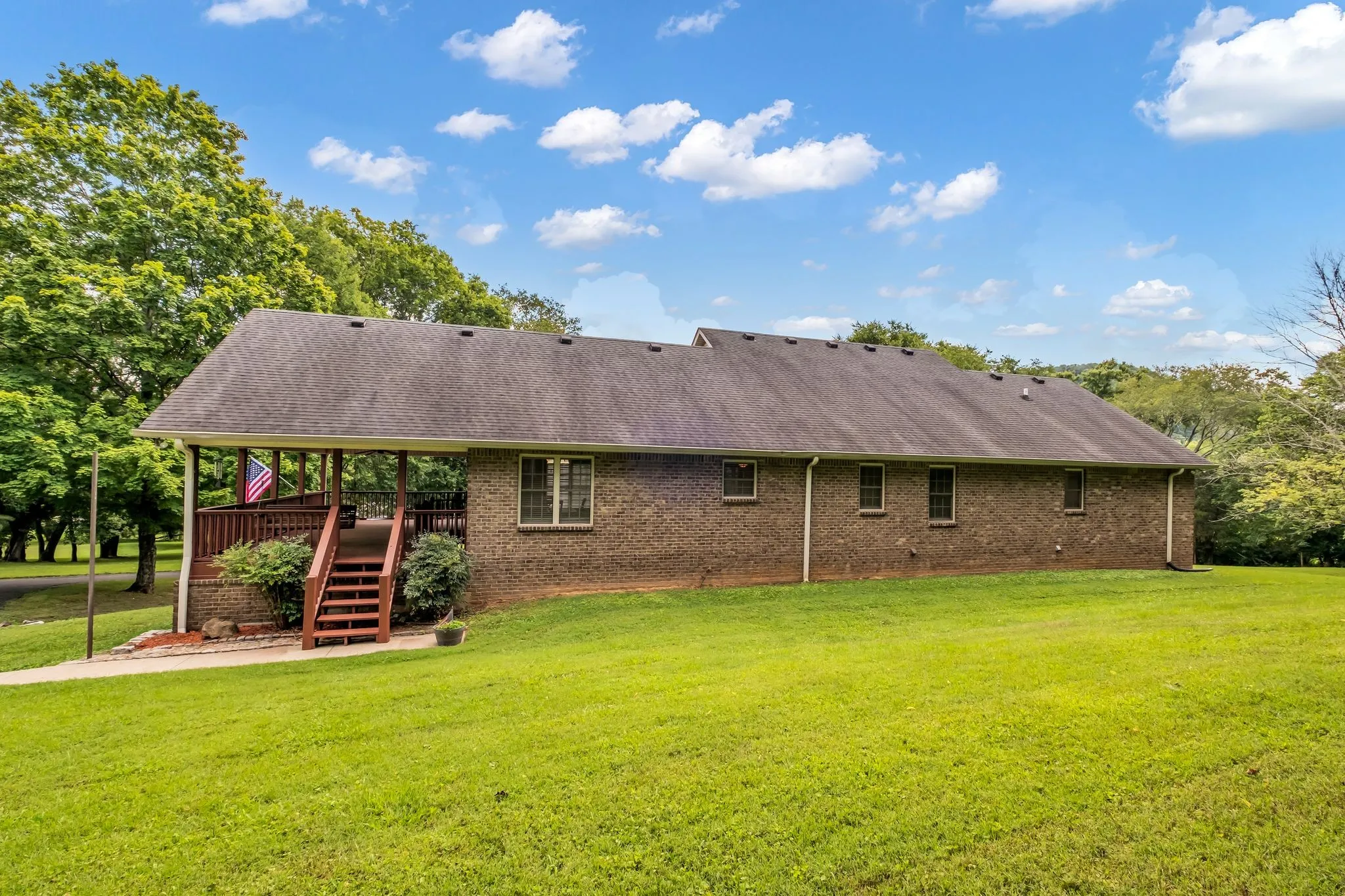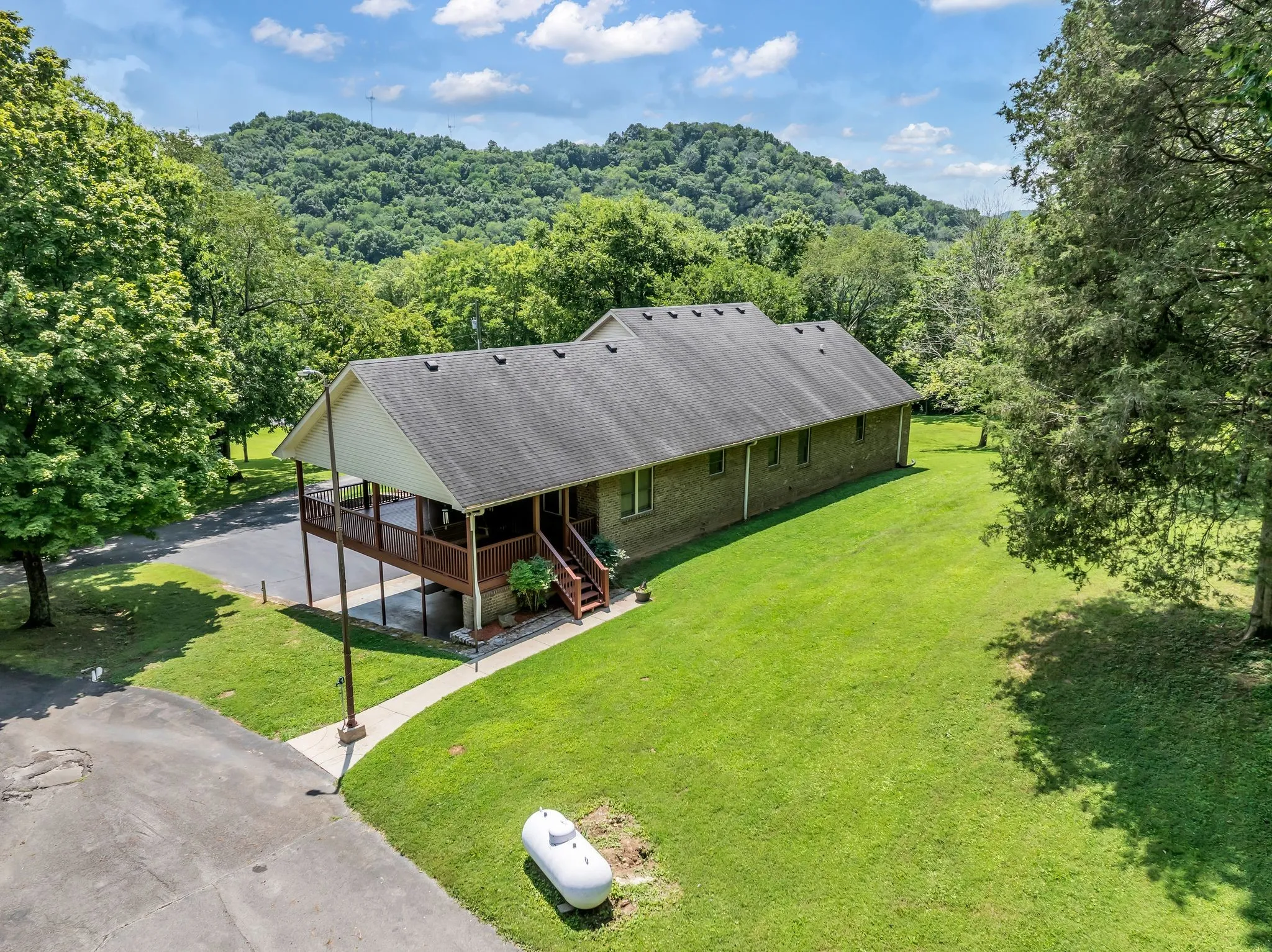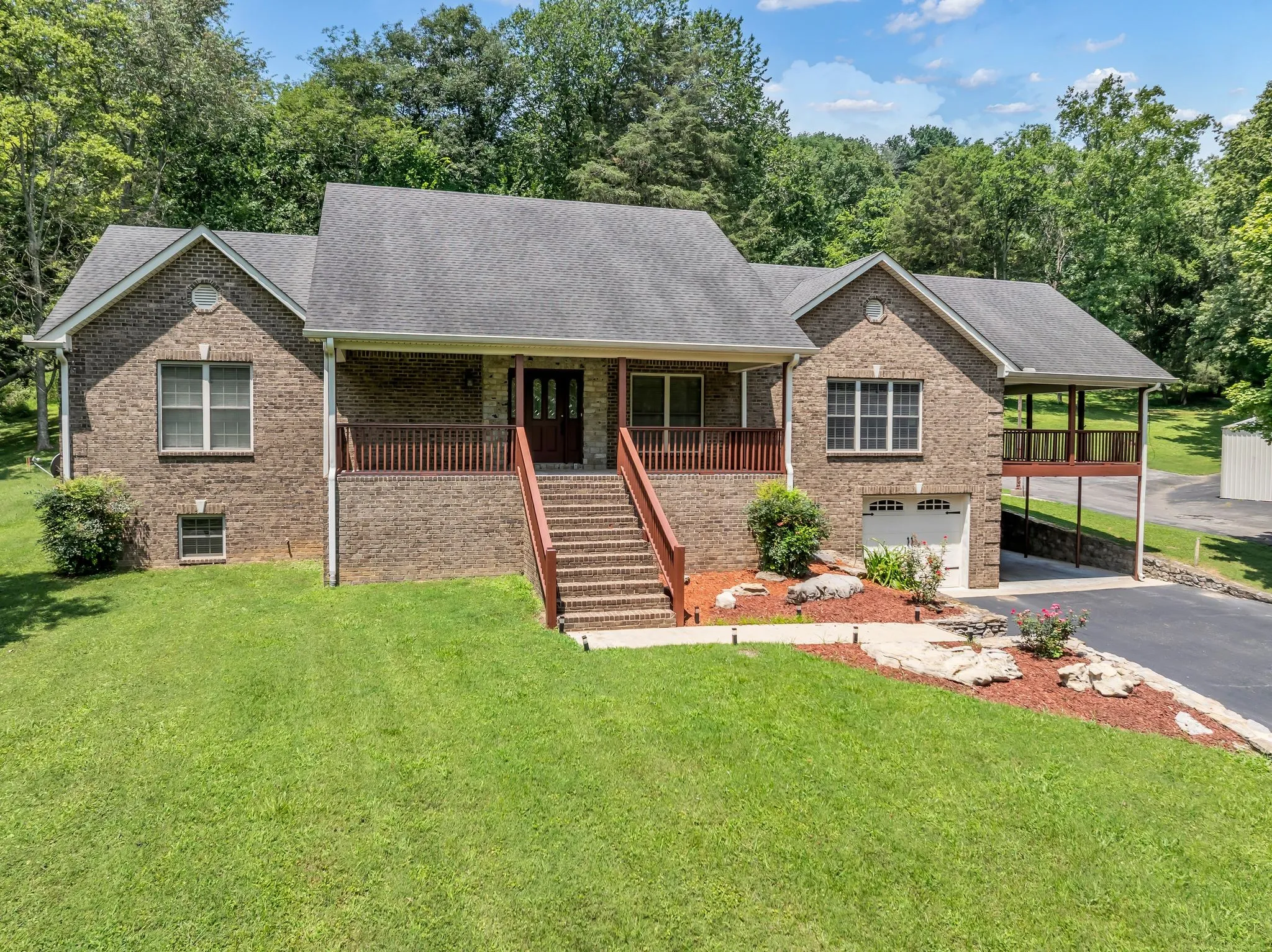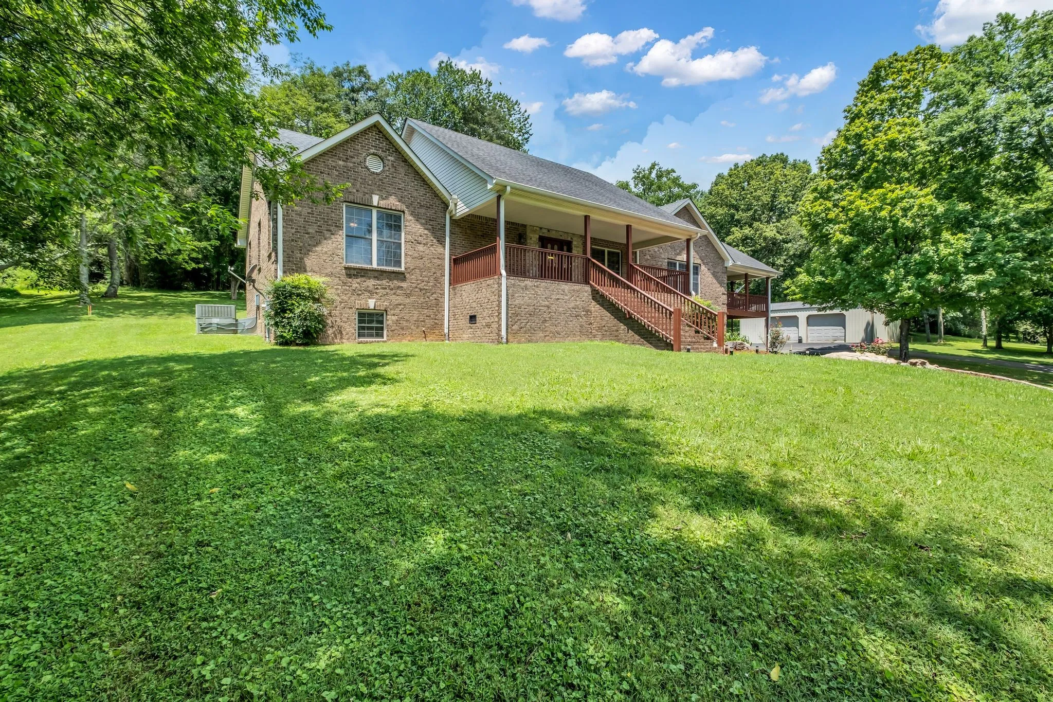 NEW PRICE! Spacious all brick home in private country setting awaits a new family on 14 acres! Property includes 2 large storage buildings that have 5 car bays/garage, one storage shed and an RV covered space with electric. The acreage is split about half open land and half treed. Rocking chair covered front porch! Home is a one level ranch with a large finished basement & a full bath, fireplace and 2 car tandem garage. Large kitchen with center island, plenty of counterspace and tiled backsplash – Kitchen opens to a 30×15 covered porch – great for entertaining!. Living RM features a corner fireplace and open dining area. 3 bedrooms on the main level. Primary bath with a large tiled walk in shower. Oversized laundry room. Huge finished basement has tons of potential and would make a great rec room, in-law suite or teen-suite. Super location, just minutes to I24 access, 20 mins to downtown Nashville, less than 25 mins to Nashville Airport. Off the beaten path with little traffic or nearby neighbors give this property a secluded feel! Must see to truly appreciate the tranquility and space this lovely home and land has to offer. One owner home. Easy to show and quick occupancy. All information deemed correct, buyer and agent to verify.