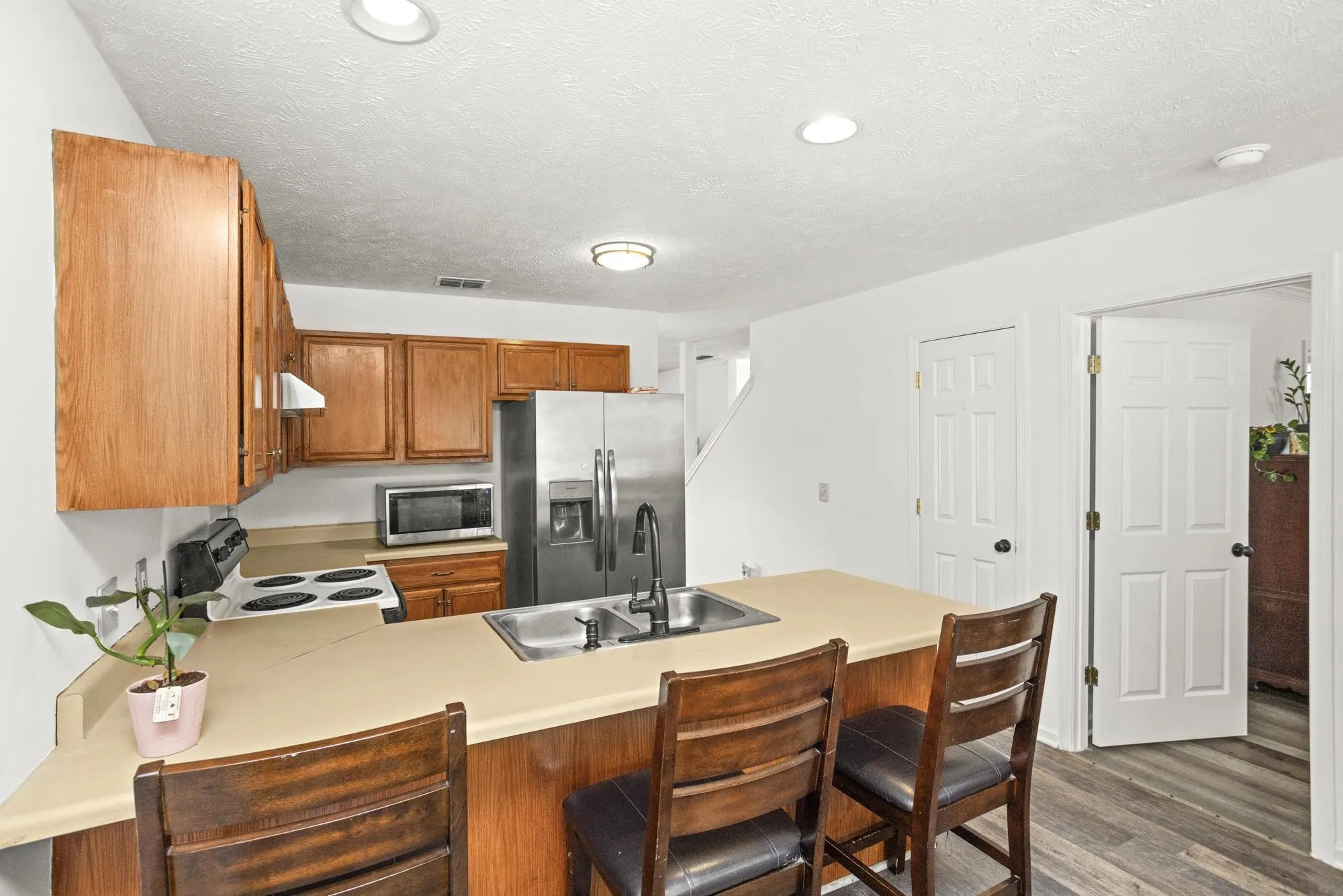 NO HOA— Meticulously cared for 2-story townhome offering 3 bedrooms, 2 full bathrooms, and 1,347 sq ft with NO HOA — priced under $295,000! Fresh interior paint throughout. Spacious main-level primary suite fits a king-sized bed and includes a large en-suite bath with double vanities. Two additional bedrooms and a full bath are located upstairs along with extra large additional storage room.