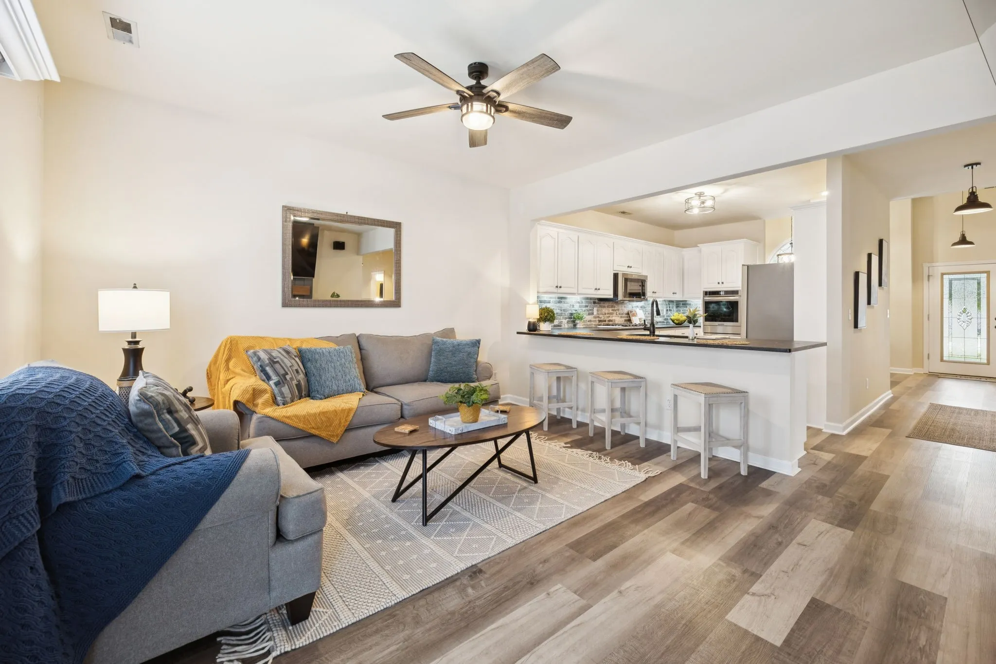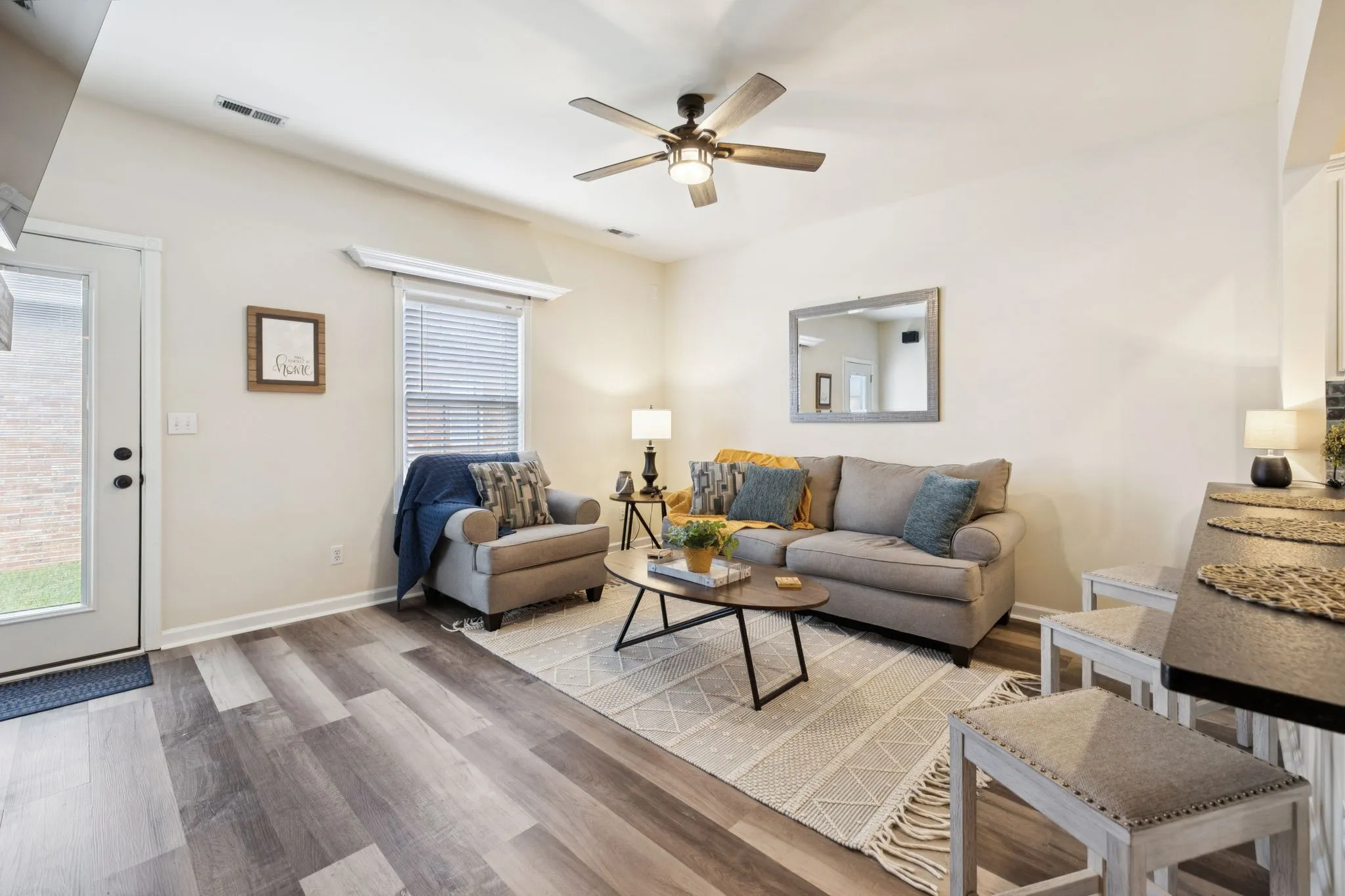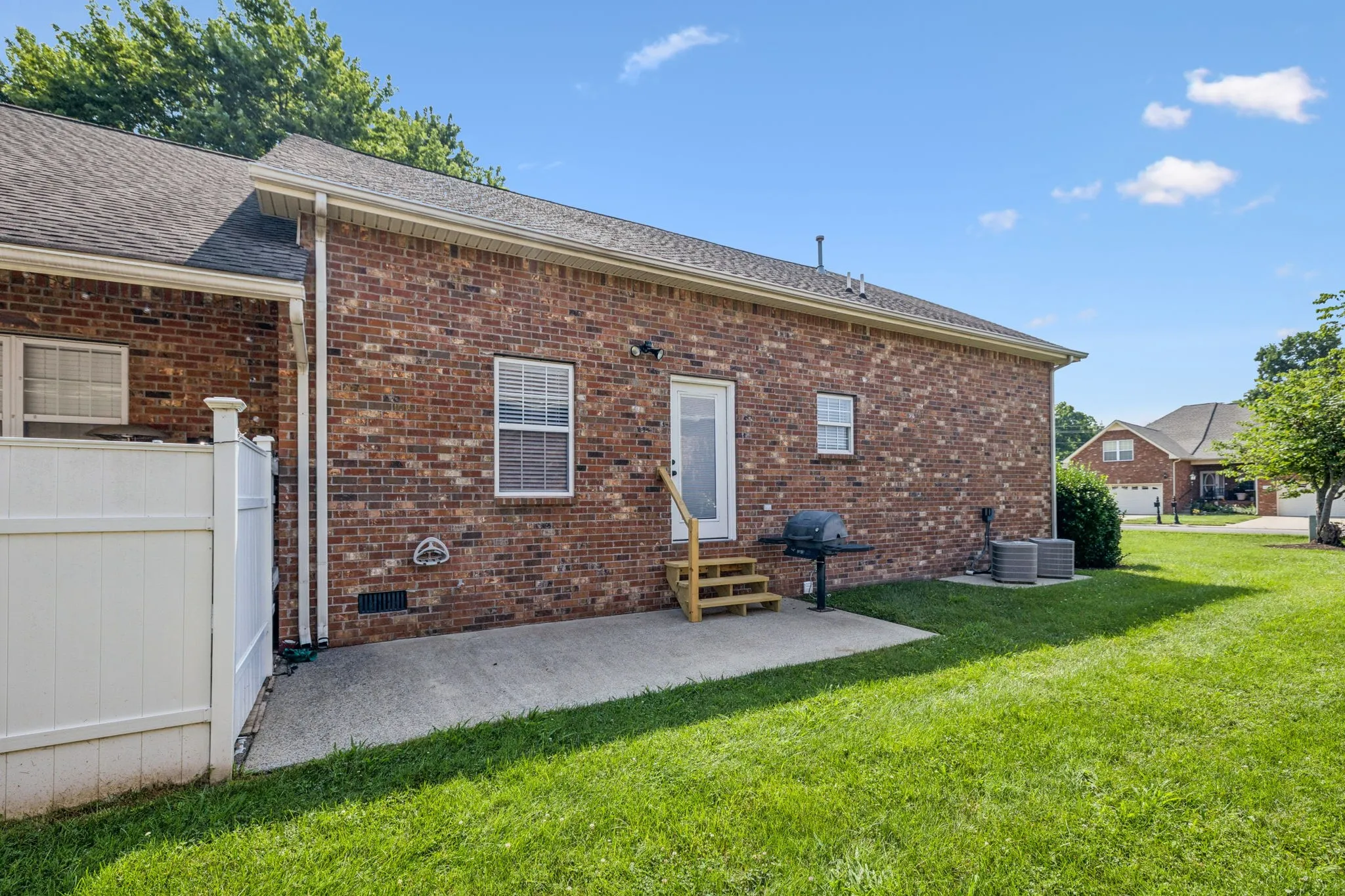 Nestled in the heart of Murfreesboro, this elegant 3-bedroom, 3-bath townhouse offers the perfect blend of modern comfort & timeless charm. Situated on a desirable corner lot in a small tucked-away community, the home features a classic brick exterior & a spacious side-entry two-car garage, creating both curb appeal & convenience. Step inside to discover a beautifully updated interior, highlighted by a sleek, modern kitchen complete with stainless steel appliances, rich cabinetry, & a grand granite countertop with a leathered finish that serves as both a functional workspace & an eye-catching centerpiece. The open-concept living area is warm & inviting, anchored by a cozy, statement fireplace—ideal for relaxing or entertaining. The property comes with a full compliment of appliances, including W/D, 3 mounted TVs, & a permanent gas grill on the back patio! Three full bathroom, with a soaker tub & separate shower in the primary, provide comfort & privacy for family or guests. The formal dining, primary, 2nd bedroom, & hall bathroom are all on the main with upstairs featuring an oversized bedroom or bonus room with a walk-in closet, full bathroom with stand-up shower, & access to the large walk-out storage area. The layout is thoughtfully designed to accommodate a variety of lifestyles from growing families to young professionals, or even as a turnkey investment. The low-maintenance lifestyle is enhanced by a well-managed HOA that covers exterior maintenance & landscaping, ensuring the community remains pristine year-round. Plus, the seller is offering a one-year home warranty from American Home Shield for additional piece of mind. With rental-friendly policies in place, this property also presents a compelling option for investors looking to expand their portfolio in one of Middle Tennessee’s most dynamic markets. Whether you’re searching for a primary residence or a smart income-producing asset, this Murfreesboro gem delivers style, substance, & strong potential.