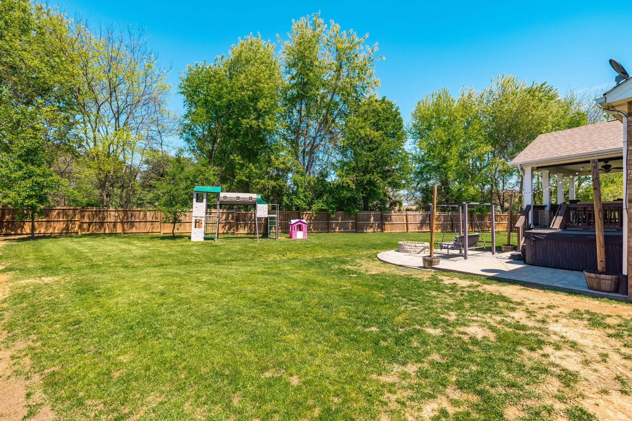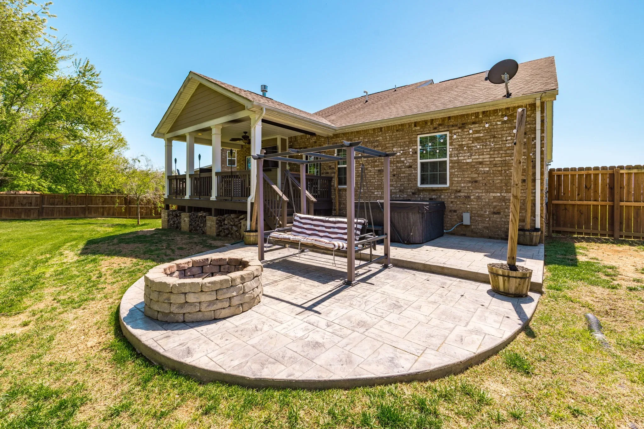 Cozy up by the gas fireplace or head out back to your own private oasis—featuring a fully fenced yard, covered patio, custom concrete fire pit, and a relaxing hot tub that’s ready for entertaining or unwinding.