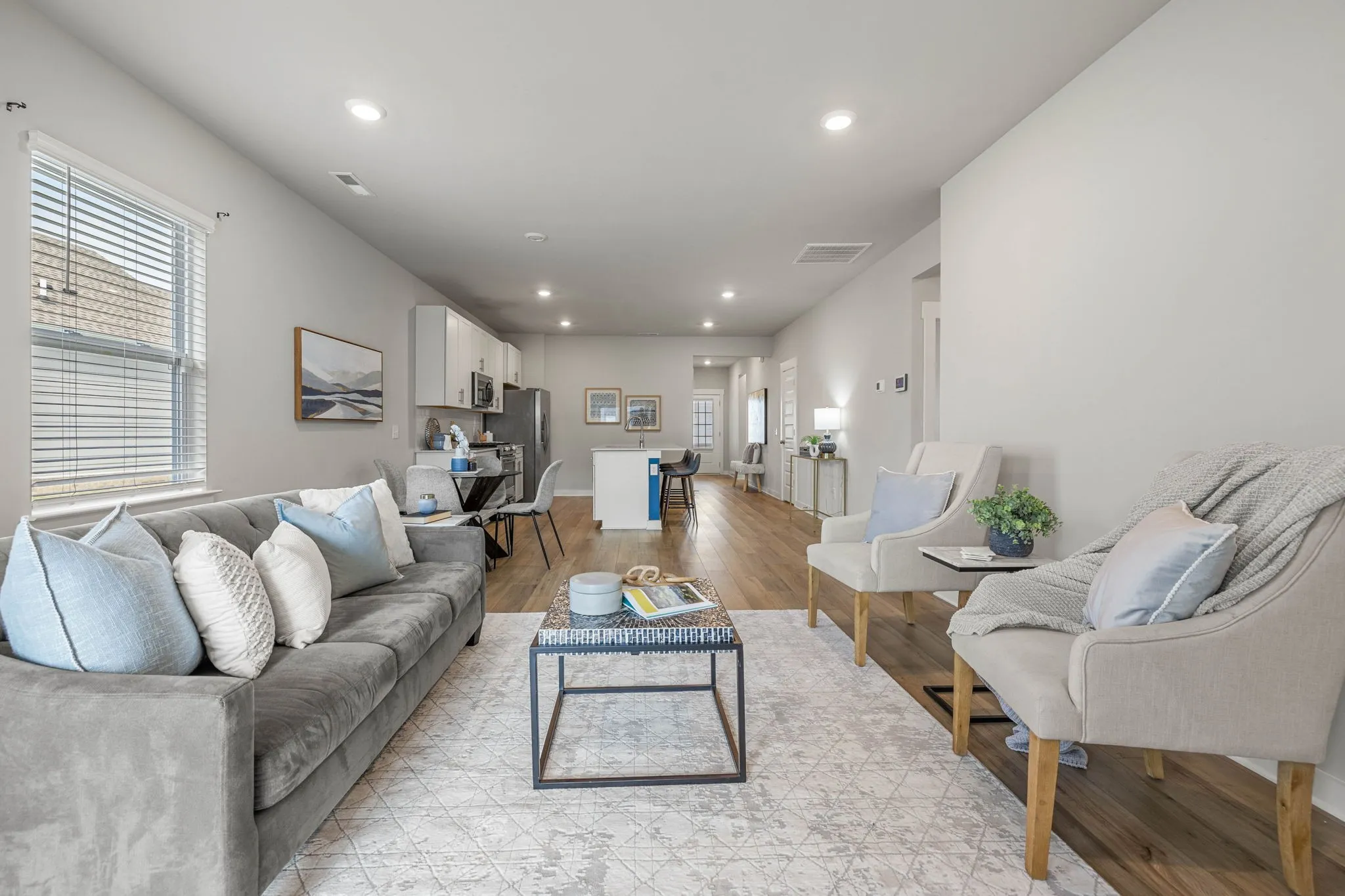 Welcome home to the comfort in this charming one-level home! Step inside to discover an open floor plan that seamlessly blends style and functionality. The heart of the home is the large kitchen, boasting quartz countertops, a center island with seating, and stainless steel appliances including a gas stove and refrigerator. Cozy up by the gas fireplace in the living room, perfect for relaxing evenings. Outside, the large lot offers ample parking for guests, along with a fenced backyard for privacy. Enjoy the outdoors from the screened-in back porch or the inviting rocking chair front porch. Don’t miss the chance to make this delightful home yours!