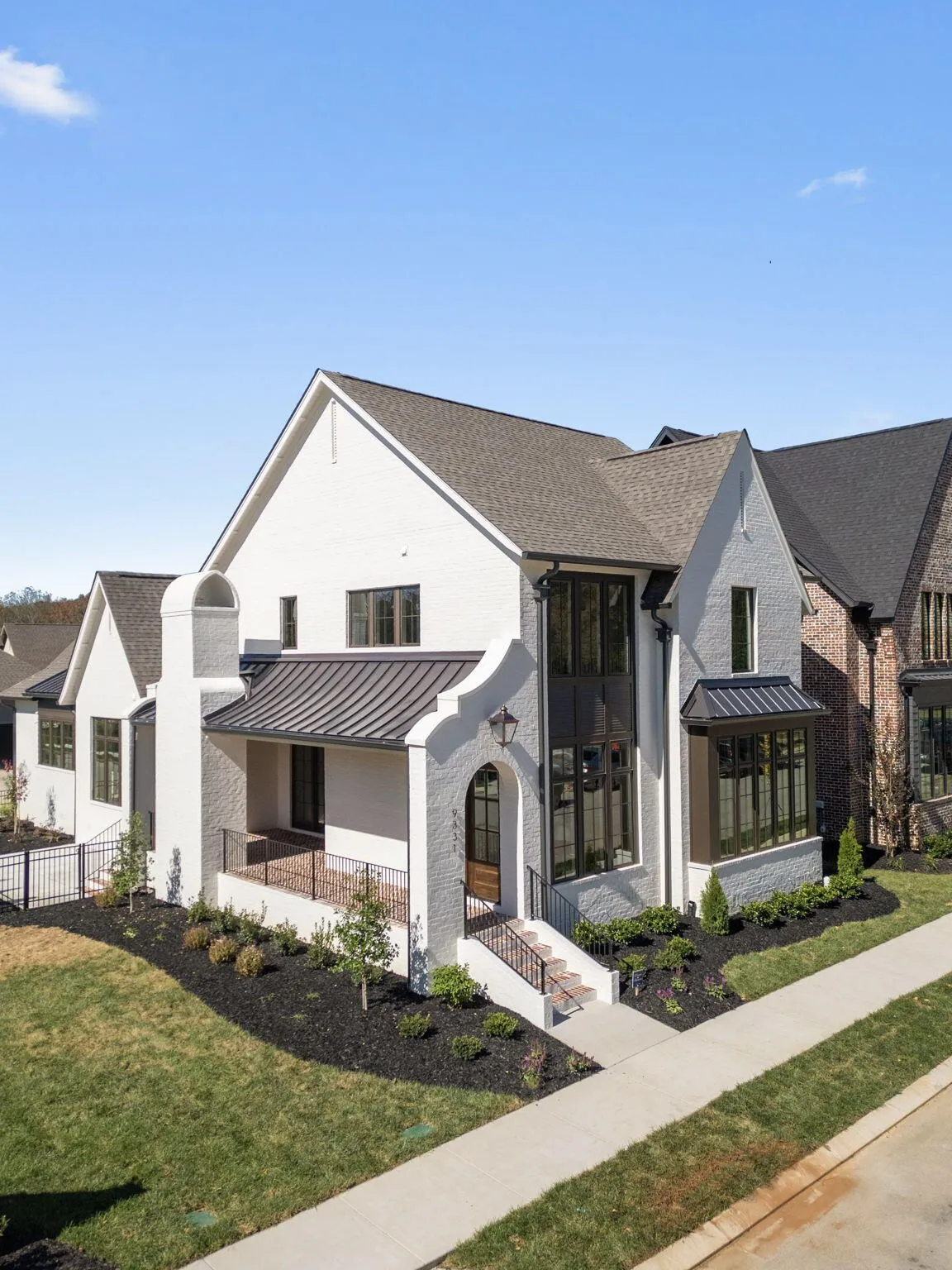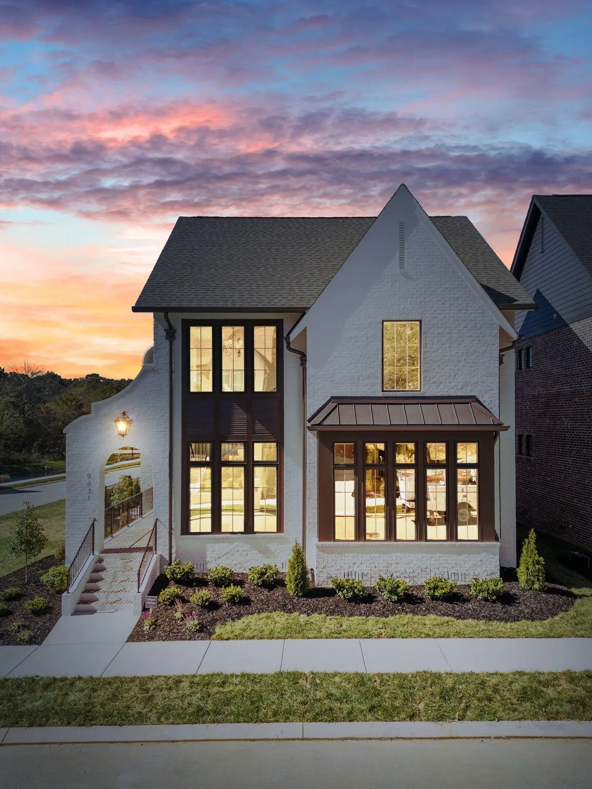 +"PublicRemarks": "Welcome to this Charleston-inspired ''single house'' in Grantham Square, an exclusive Waters-Holland community where every home exudes classic style and timeless design. Positioned on one of only four ''corner homesites'' adjacent to a community greenspace, this Villa home, The Baxter, boasts a generous open living plan designed for seamless entertaining indoors and out. The bright, two-story foyer welcomes you into a sophisticated interior, where 10-foot ceilings, engineered hardwood flooring, and bronze windows create an inviting atmosphere. You'll appreciate the spacious great room featuring a gas log fireplace, built-in cabinetry, and abundant windows showcasing views of White Oak Mountain. The chef's Kitchen, equipped with a large island, quartz countertops, custom cabinetry to the ceiling, and Fisher & Paykel stainless appliances—including a 36'' gas range and integrated dishwasher —flows effortlessly into the Dining area and out to the expansive covered side porch with herringbone brick pavers and outdoor fireplace, overlooking a community pond with fountain. The main-level primary suite, conveniently located near the private owner's entry and well-appointed laundry room, offers a spacious walk-in closet, custom built-in closet shelving, and an ensuite bath with tiled shower and polished nickel fixtures. Adjacent to the staircase is a charming powder room with decorative wood trim, wall sconces, and quartzite countertop. Recessed stair tread lighting illuminates the beautifully designed staircase to the second level where you'll find two additional bedrooms—one with an ensuite bath and the other with direct access to a full bath—complement a versatile bonus room, ideal for an office, home theater, or den, with walk-out attic access for ample storage. Crafted with a low-maintenance painted brick exterior accented by fiber-cement siding, this home ensures lasting beauty with minimal upkeep."