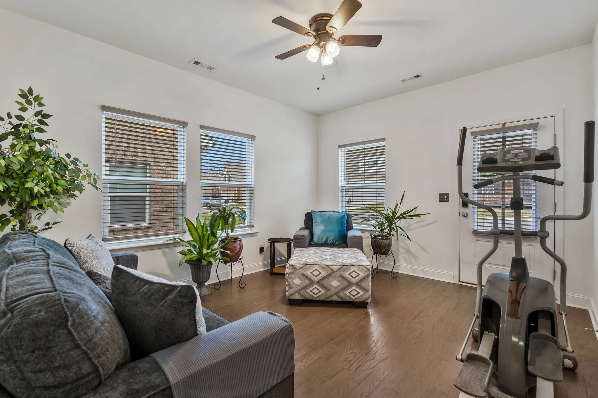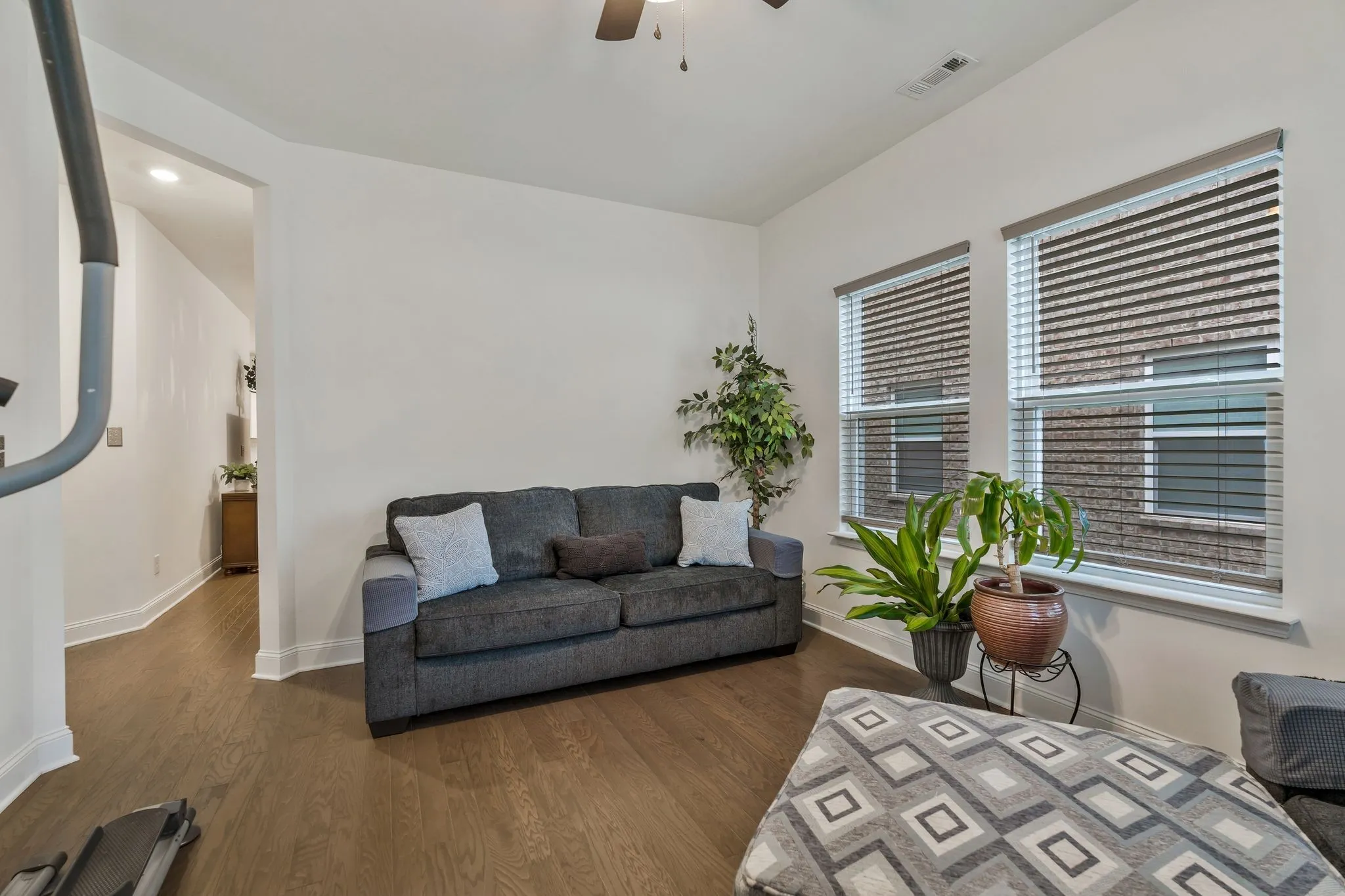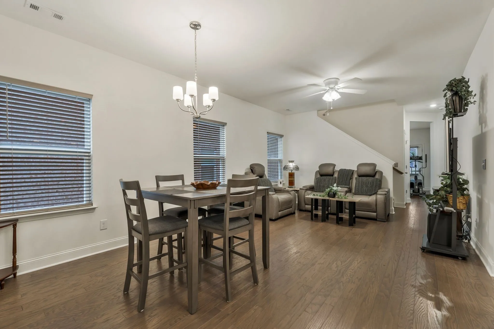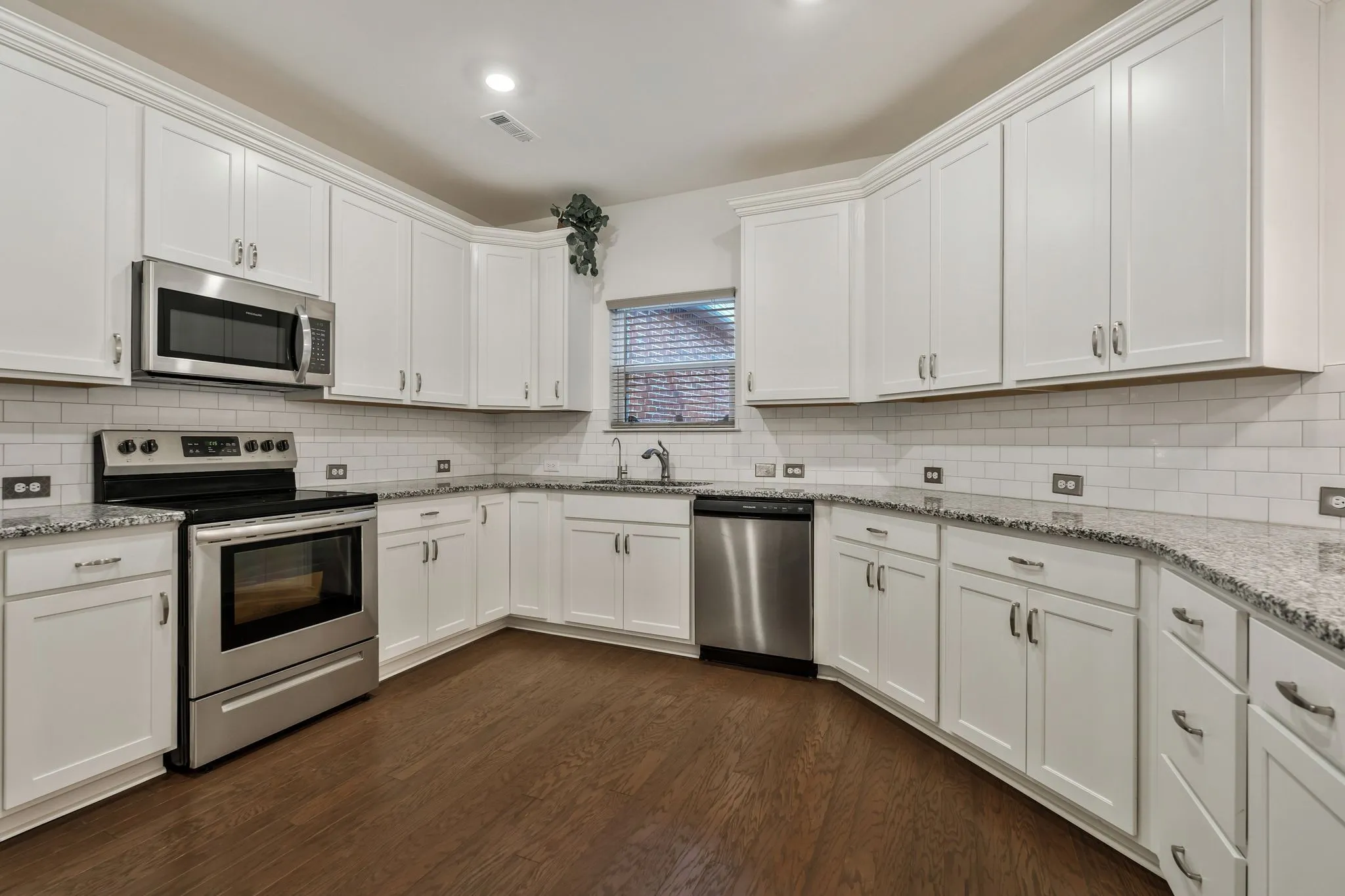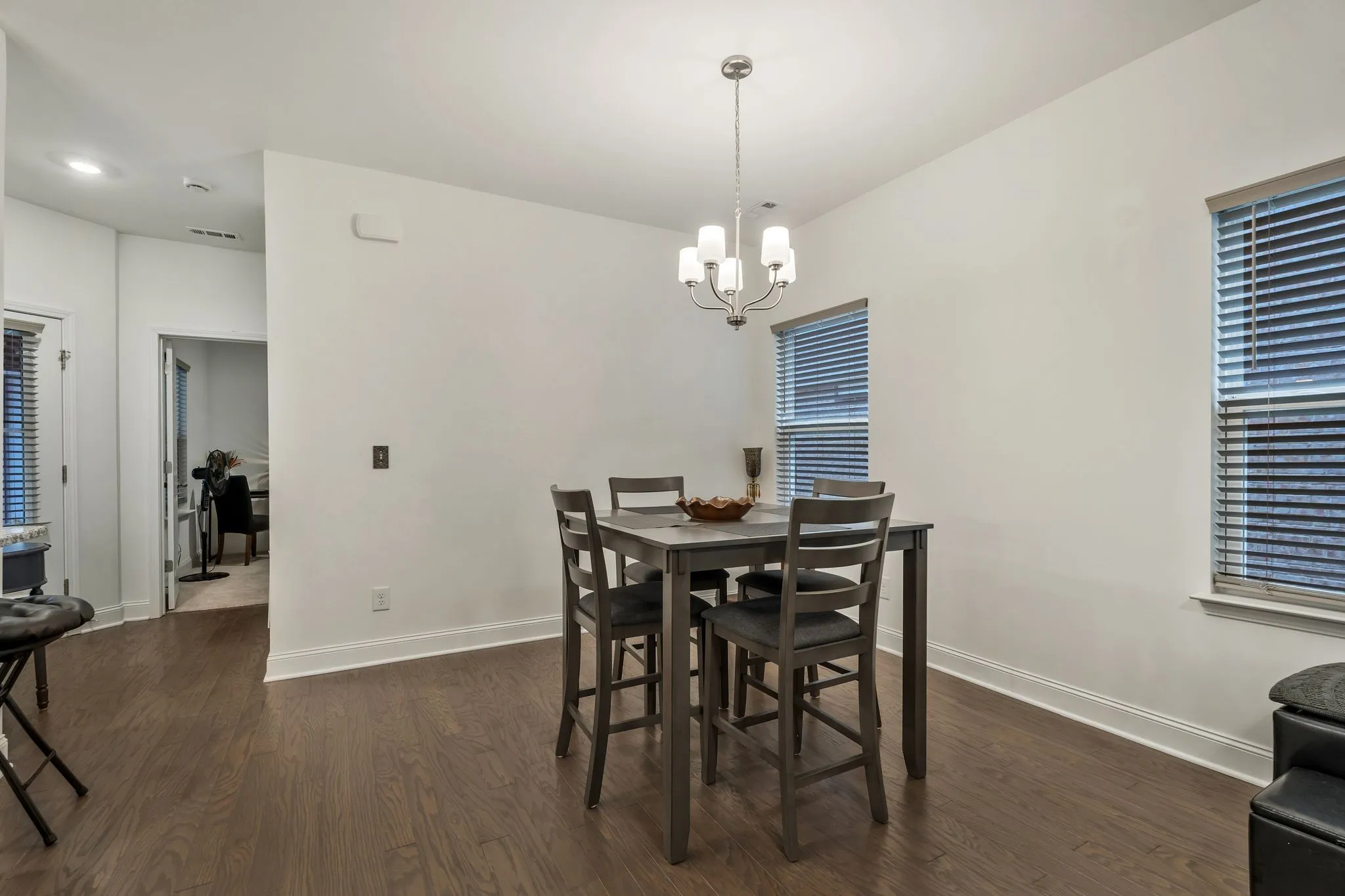 End unit, move-in ready, quick close! This charming property offers an ideal combination of comfort, style, and convenience, making it the perfect place to call home. Upon entering, you’ll be greeted by a spacious, open floor plan with abundant natural light. The inviting living room boasts ample space for both relaxation and entertainment. The modern kitchen features granite countertops, stainless steel appliances, and a large island. The primary suite on the home’s main floor offers a serene retreat with a generous walk-in closet and a luxurious en-suite bathroom. The additional main-floor bedroom is perfect for family, guests, or home office space. This home also boasts an additional second-floor primary bedroom. Enjoy the outdoors in the private, fenced-in courtyard – perfect for entertaining or unwinding after a long day. The two-car garage provides extra storage. This home also features water purification at the kitchen faucet, keyless entry and storm door at the front entrance, and 2-inch faux wood blinds on every window. Don’t miss the opportunity to own this stunning home. Schedule your tour today!