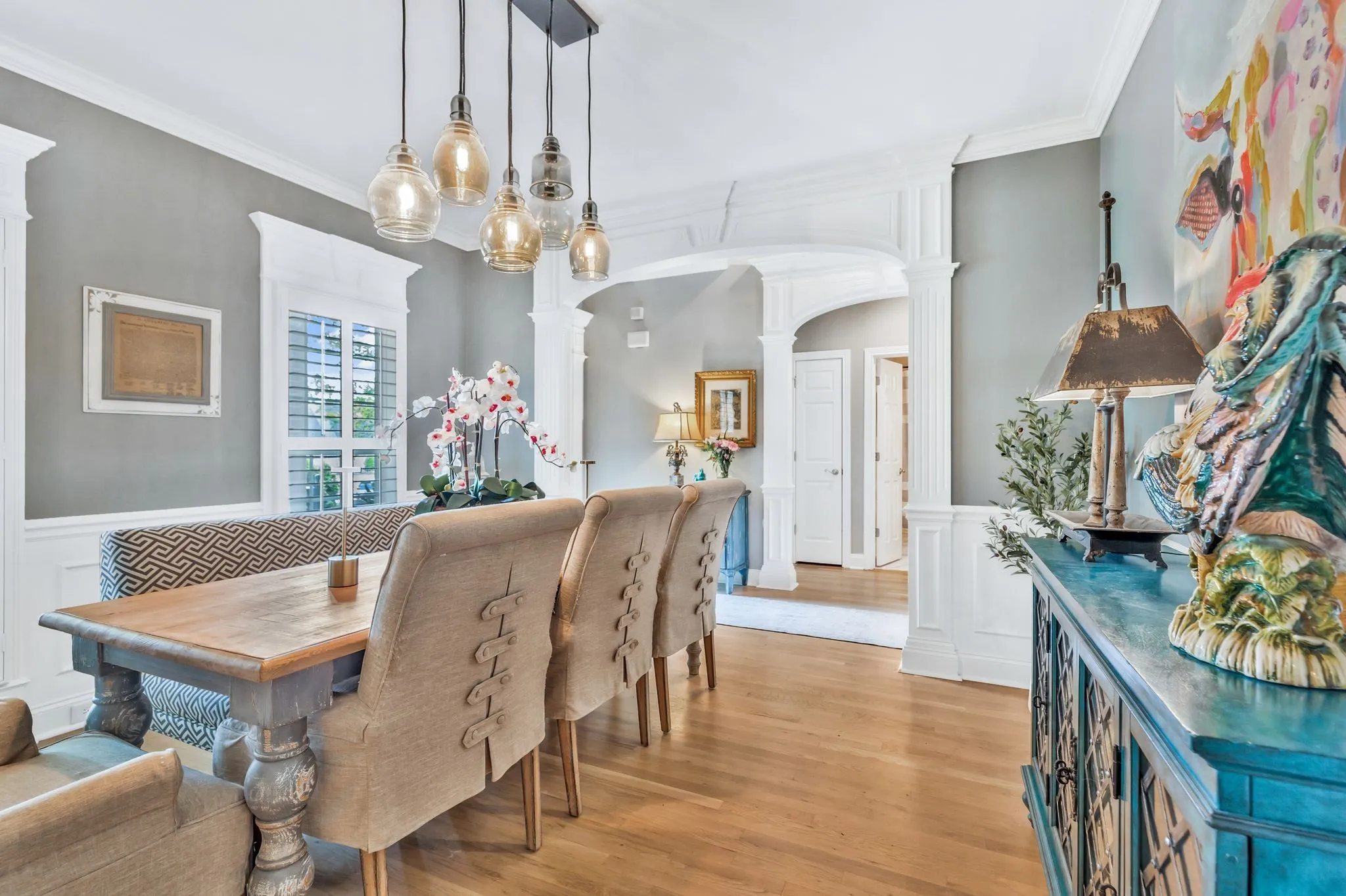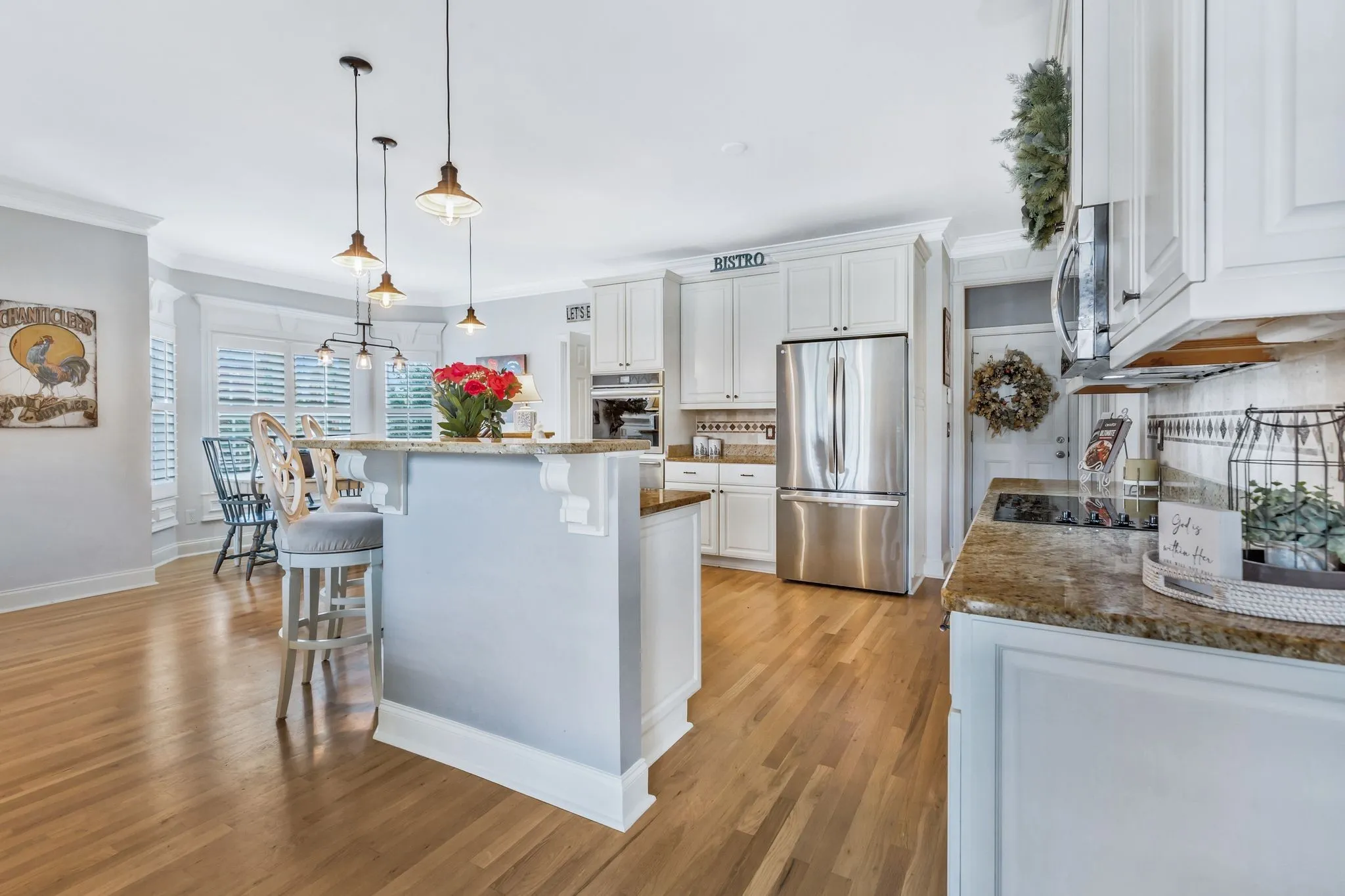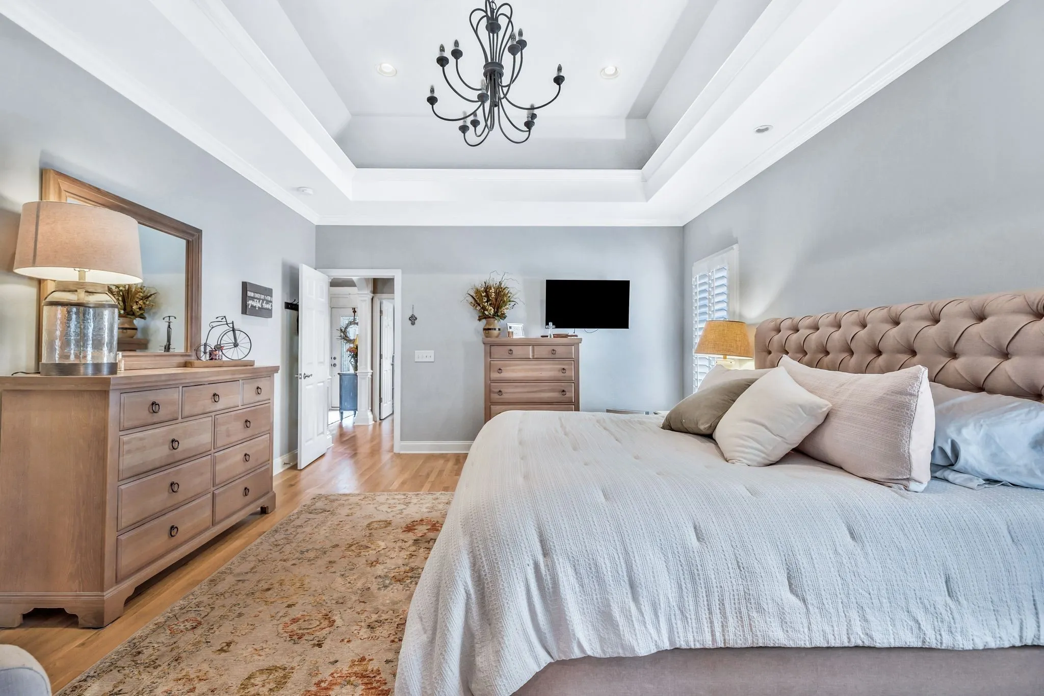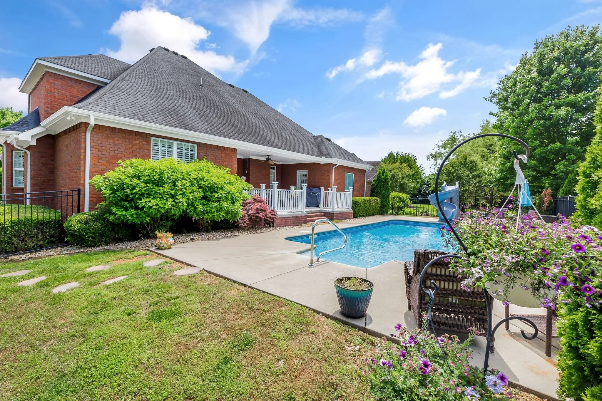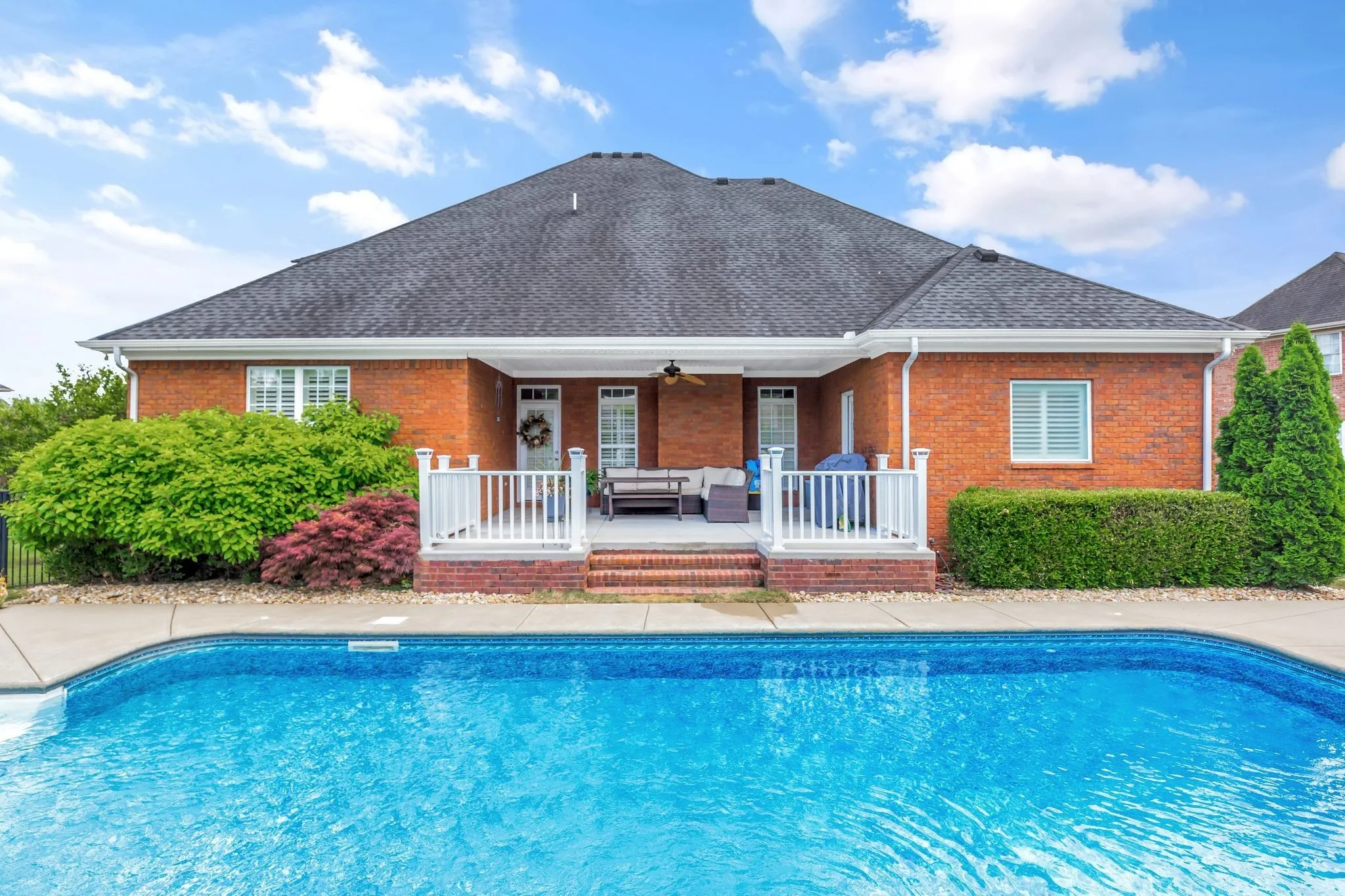 **This house is back on the market due to a home sale contingency falling through.** This home is the picture of tranquility. Perfect for hosting large parties or intimate get-togethers, it has beautiful spaces and cozy corners throughout. It also has detailed, custom trim work, as well as plantation shutters upstair and downstairs. The spacious primary bedroom features stacked tray ceilings and the most stunning tub you’ve ever seen! The upgraded kitchen with bar opens to the dining area and sitting room with built-in bookshelves. Covered back deck overlooks the pool. Upstairs bonus has more built-in bookshelves and so much space!