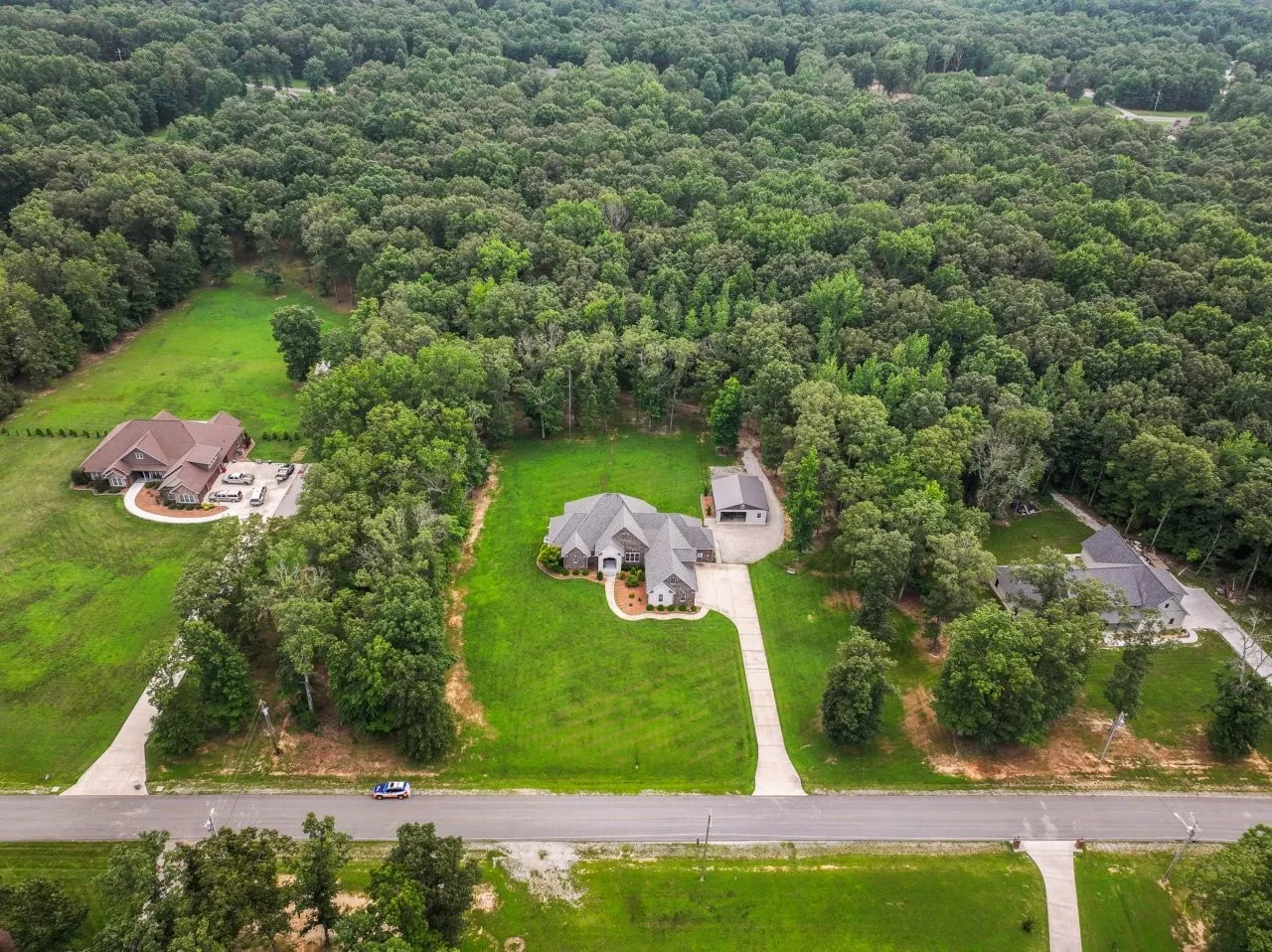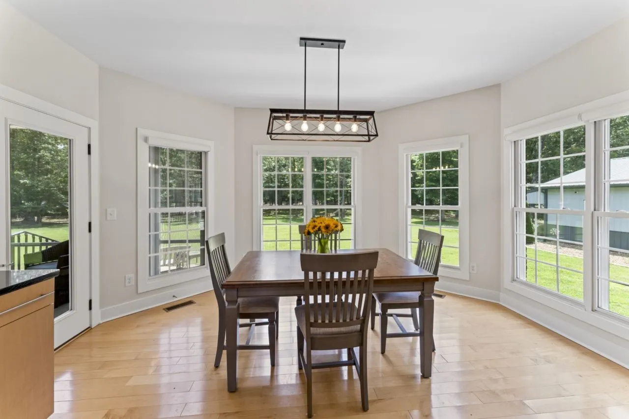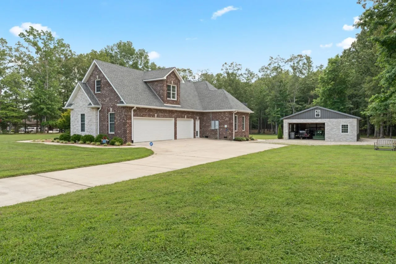 Top-Quality custom built home on 5.19 acres with lush privacy. This stunning home has the perfect floor plan with three bedrooms (including the spacious Primary Bedroom) on the main level. Beautiful maple hardwood floors. Chief kitchen is ideal with high-end Monogram appliances, granite counter tops, custom maple cabinetry and extra large walk-in pantry. Primary suite is complete with enormous 8×24 walk-in closet and primary bathroom spa feel. Current owners added screened-in porch and a heated two-car garage valued at $53,100. Room for all your needs, a 30×30 detached garage. Kitchen refrigerator, washer and dryer can remain. This home is top of the line throughout, with whole home surge protector, encapsulated crawl space with dehumidifier, security system with six cameras and spray foam insulation. Enjoy year round living within 9 miles to Tim Fords Lake.